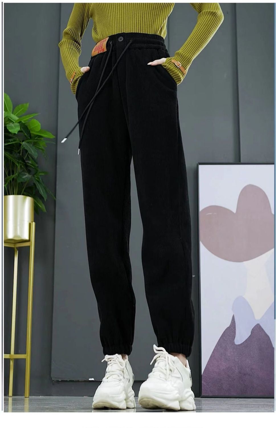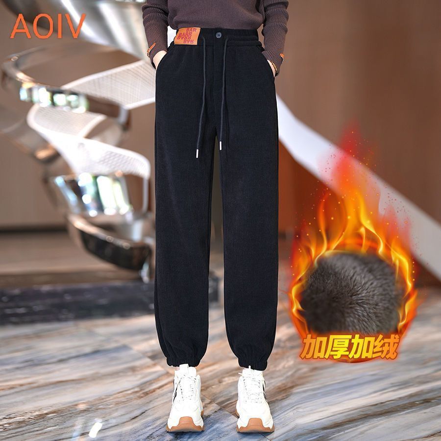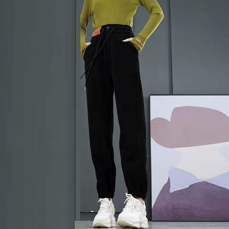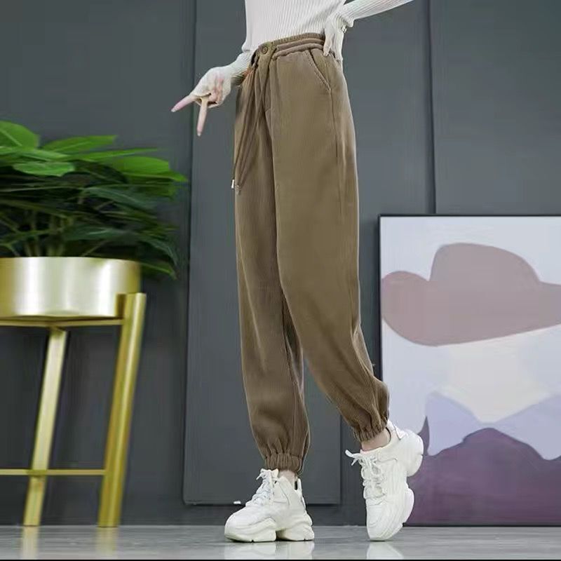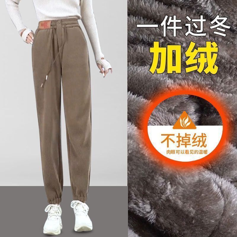 薇姿曼雪尼尔加绒加厚裤子女秋冬新款百搭网红爆款束脚休闲哈伦女