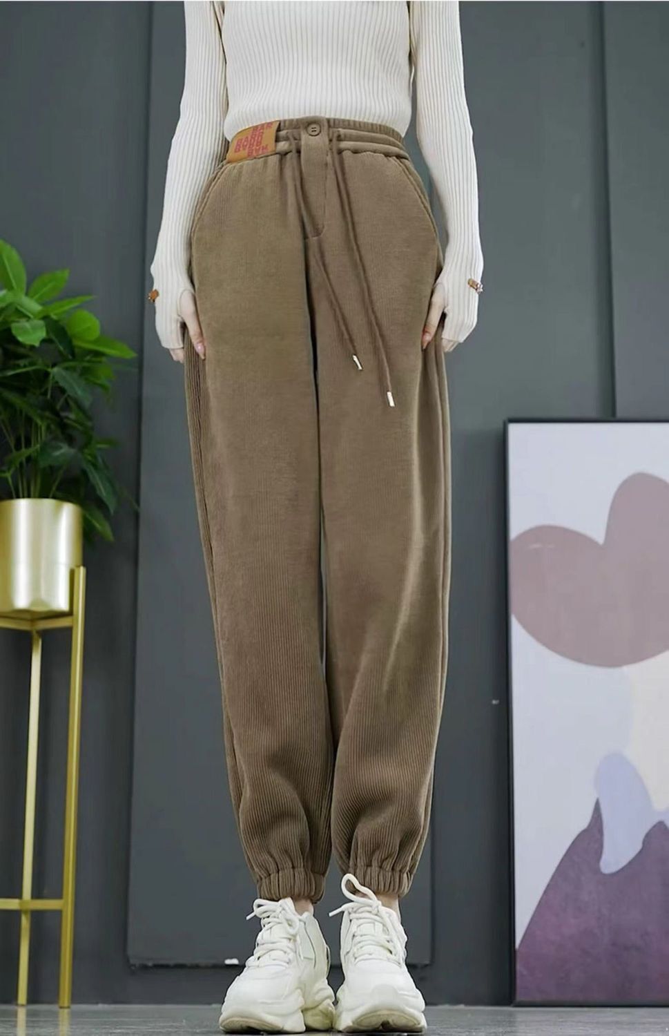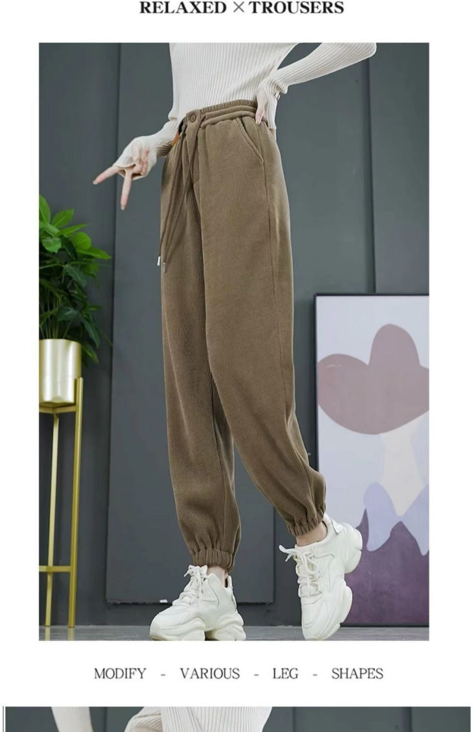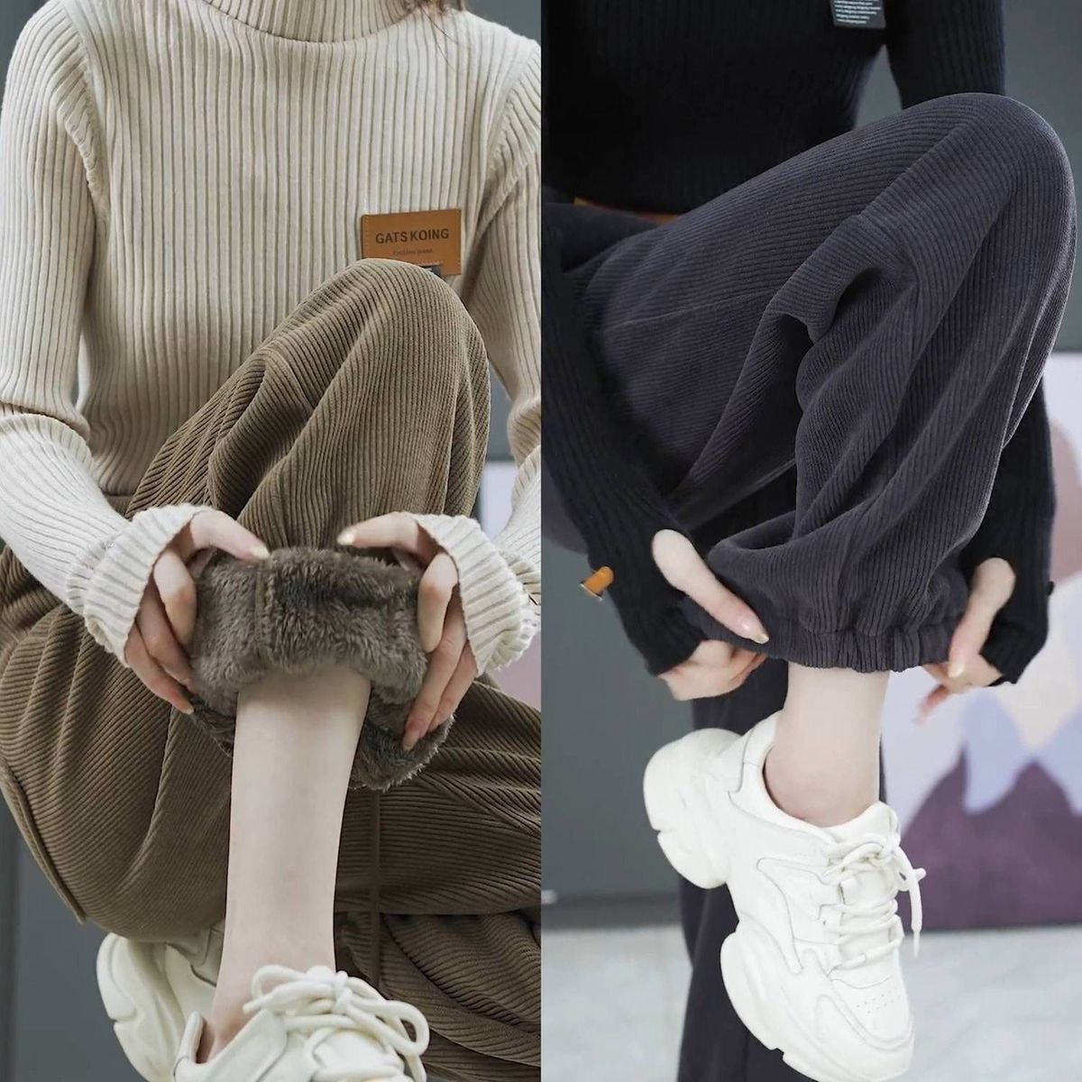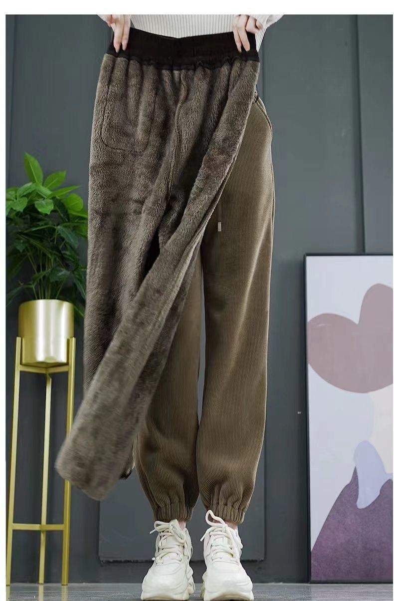 薇姿曼雪尼尔加绒加厚裤子女秋冬新款百搭网红爆款束脚休闲哈伦女
