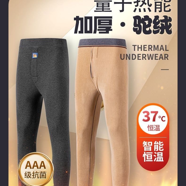 冬季驼绒裤抗寒保暖裤加绒加厚加大号秋裤自发热高腰弹力棉裤男款