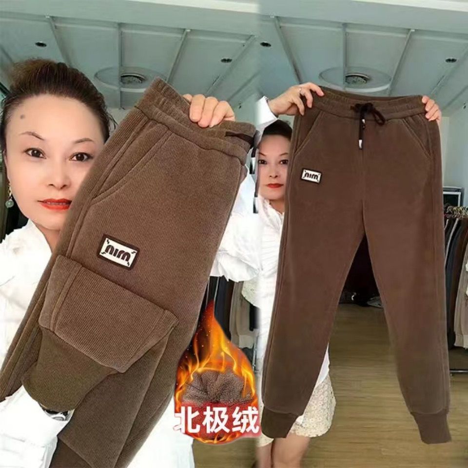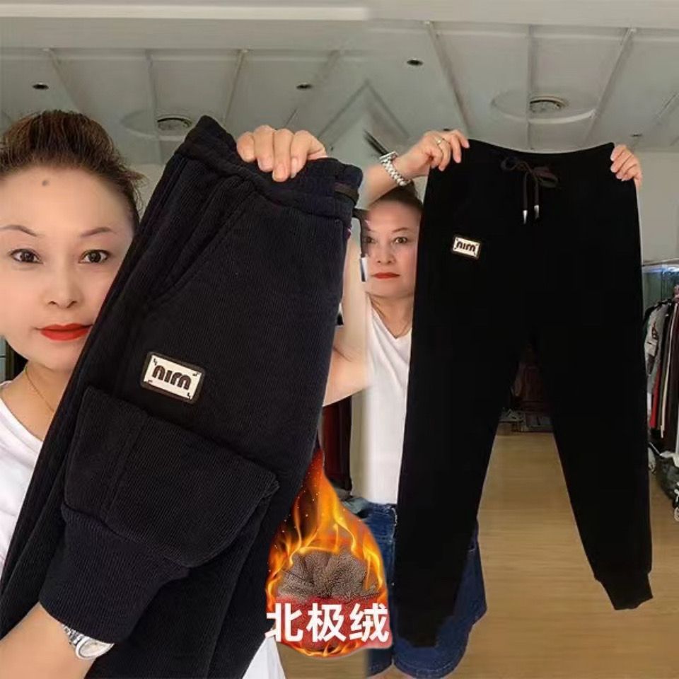 秋冬款加绒加厚羊羔绒保暖哈伦束脚裤高腰百搭卫裤显瘦休闲萝卜裤