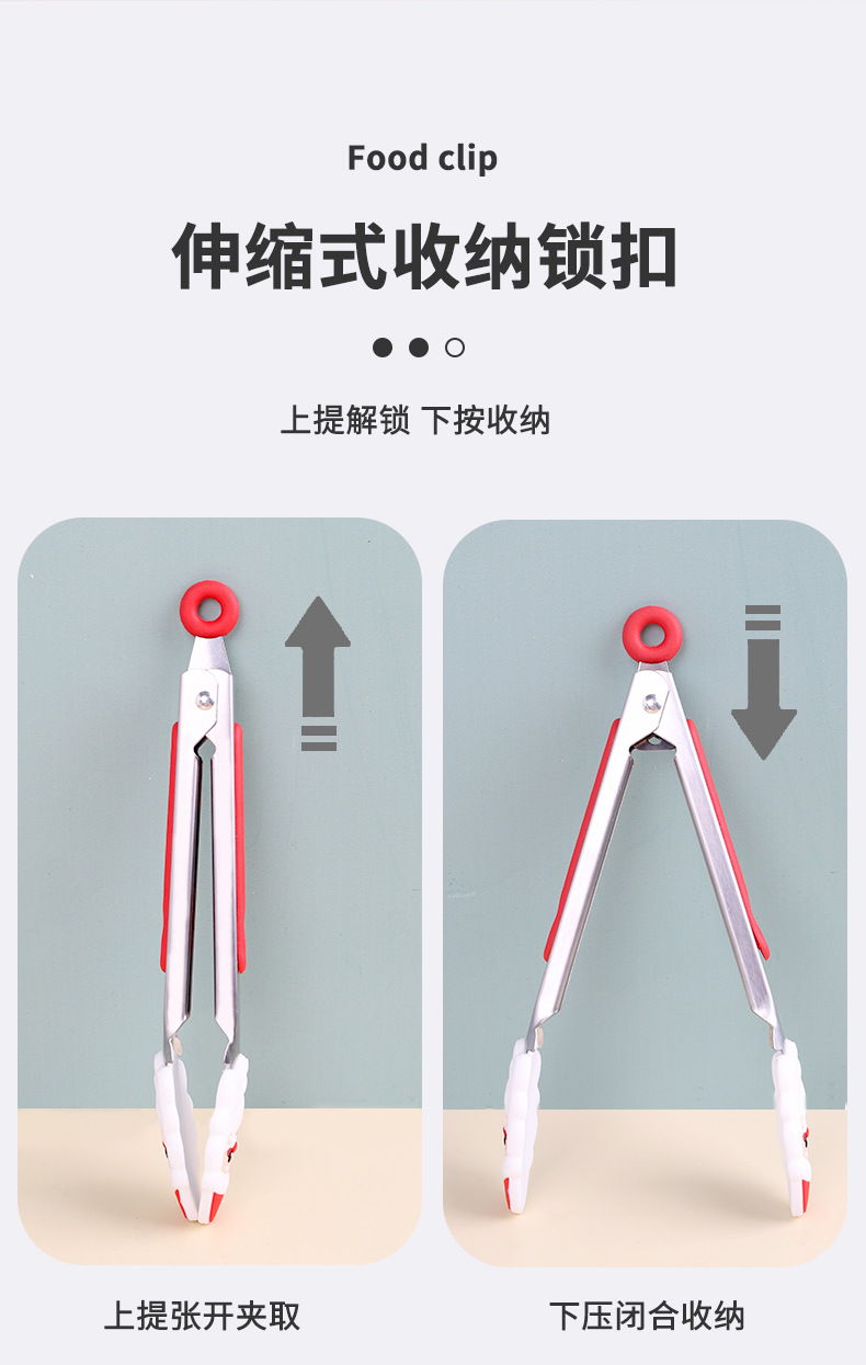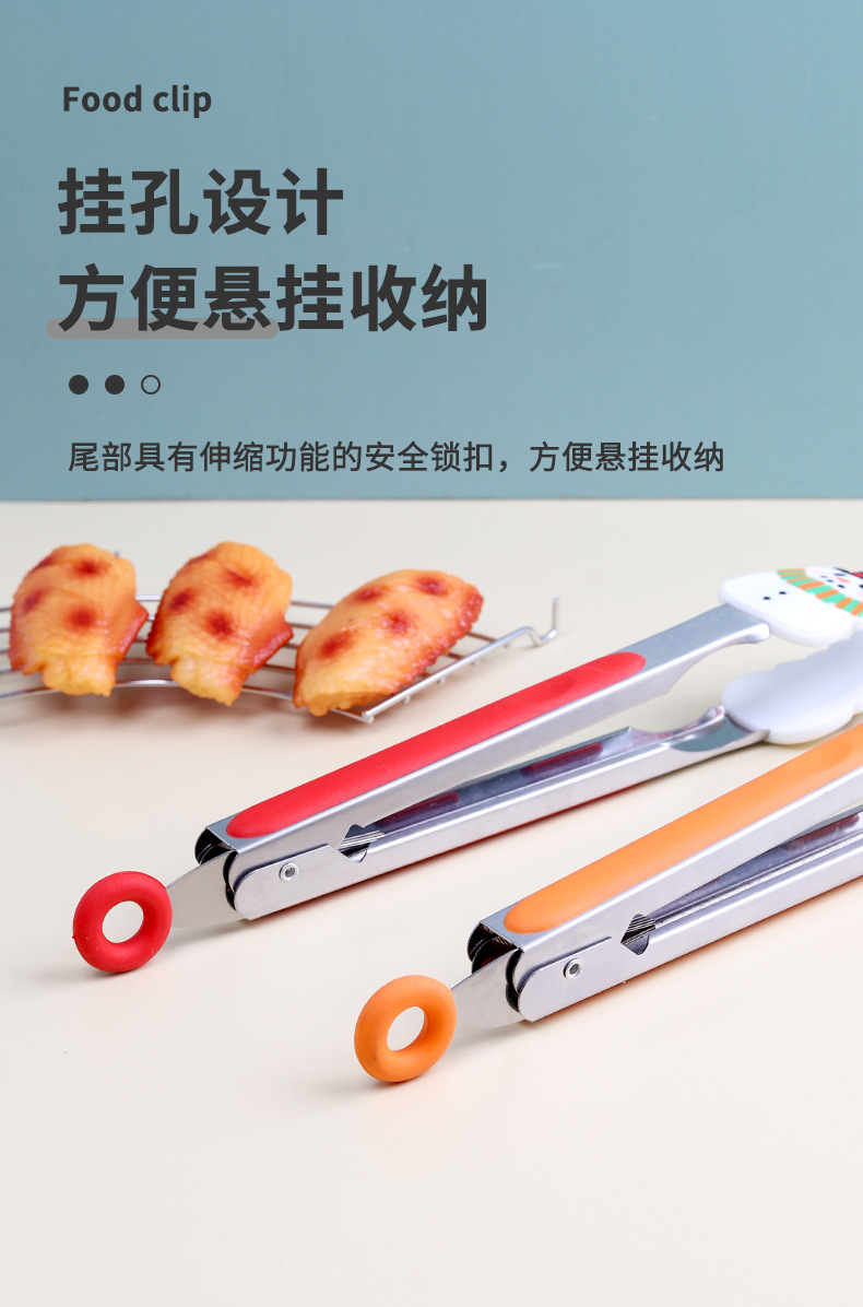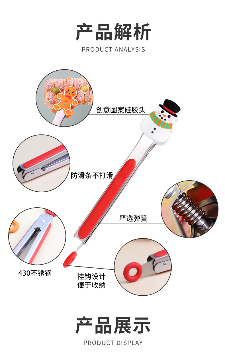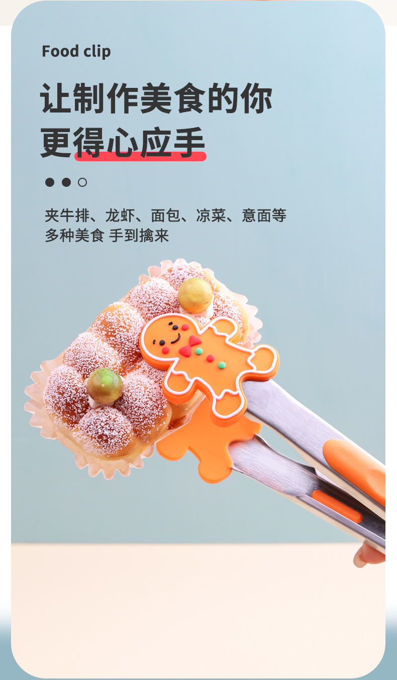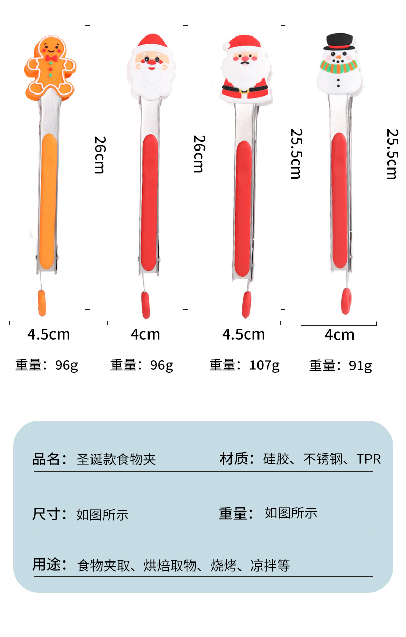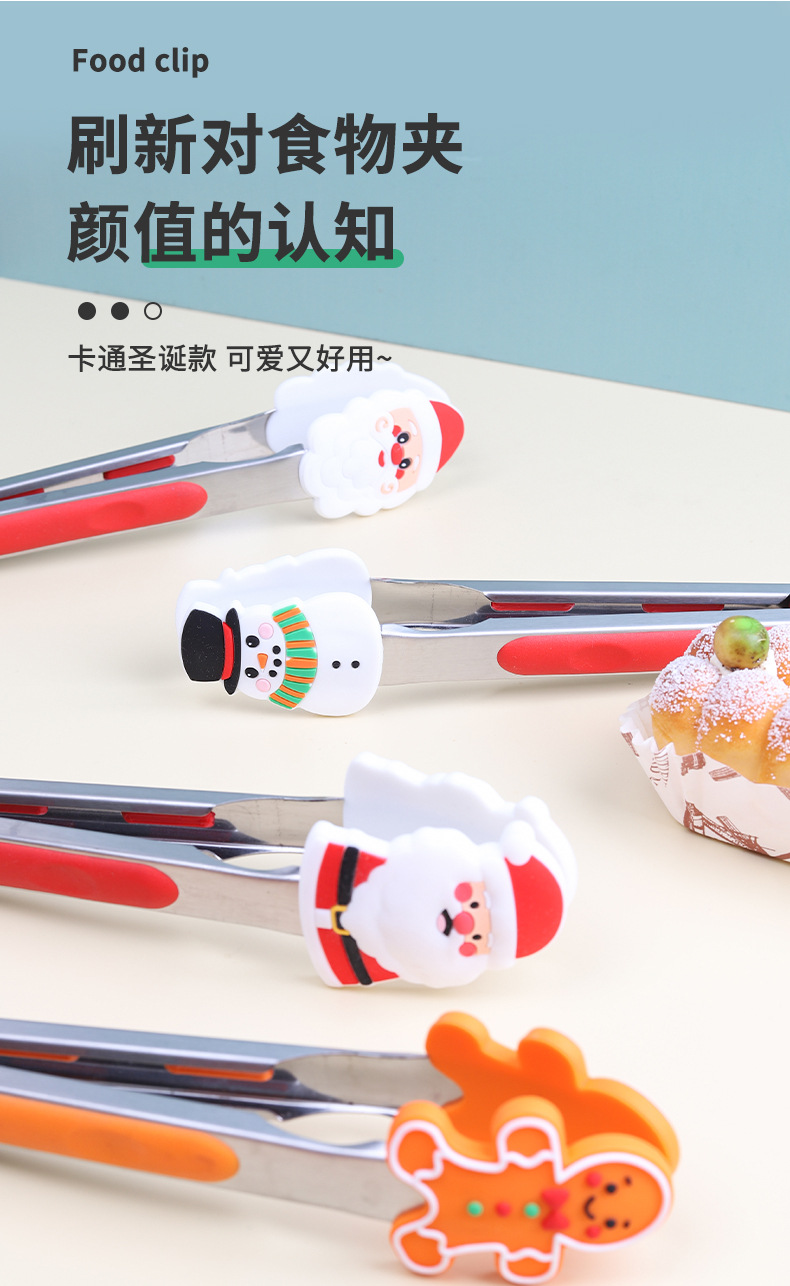 不锈钢9寸食物夹 圣诞款食物夹多功能防滑烧烤夹子牛排夹厨房工具