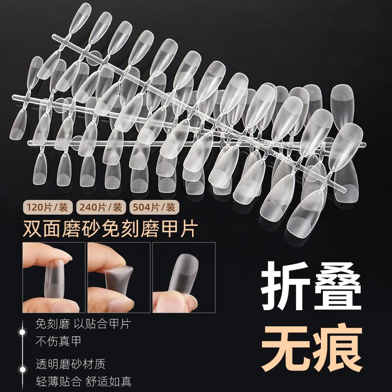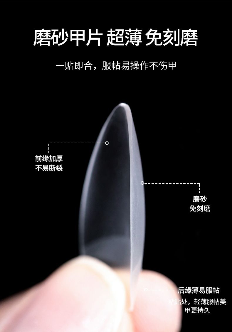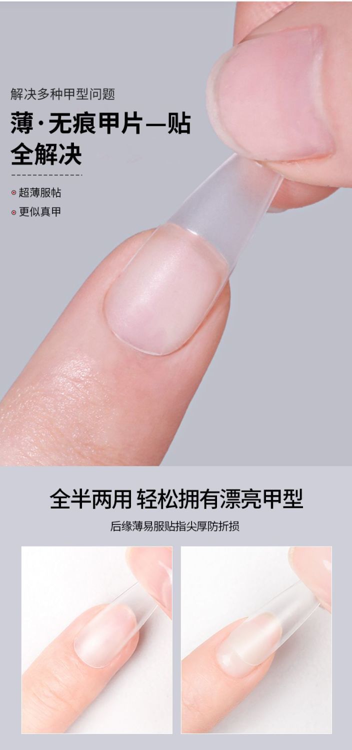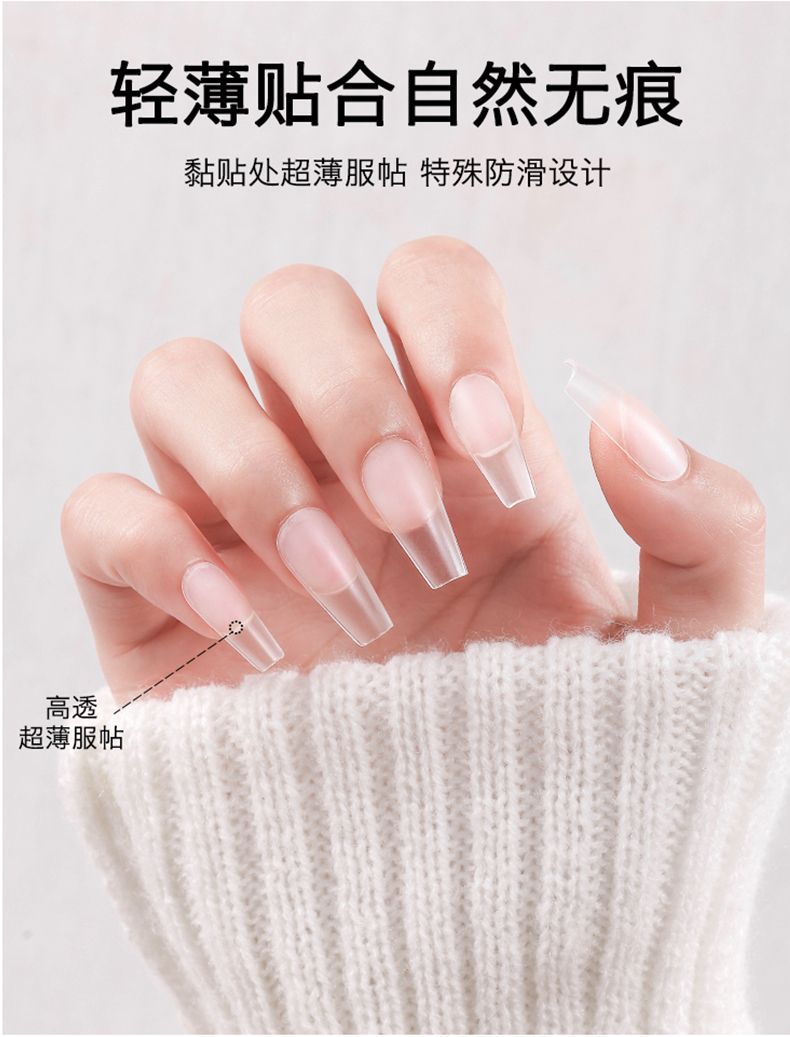美甲甲片延长甲假指甲超薄无痕透明磨砂免刻磨全贴半贴甲片长款