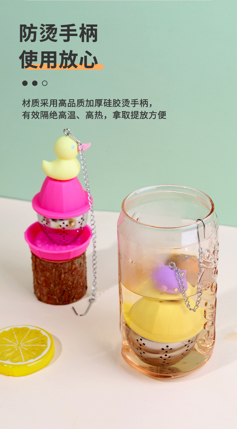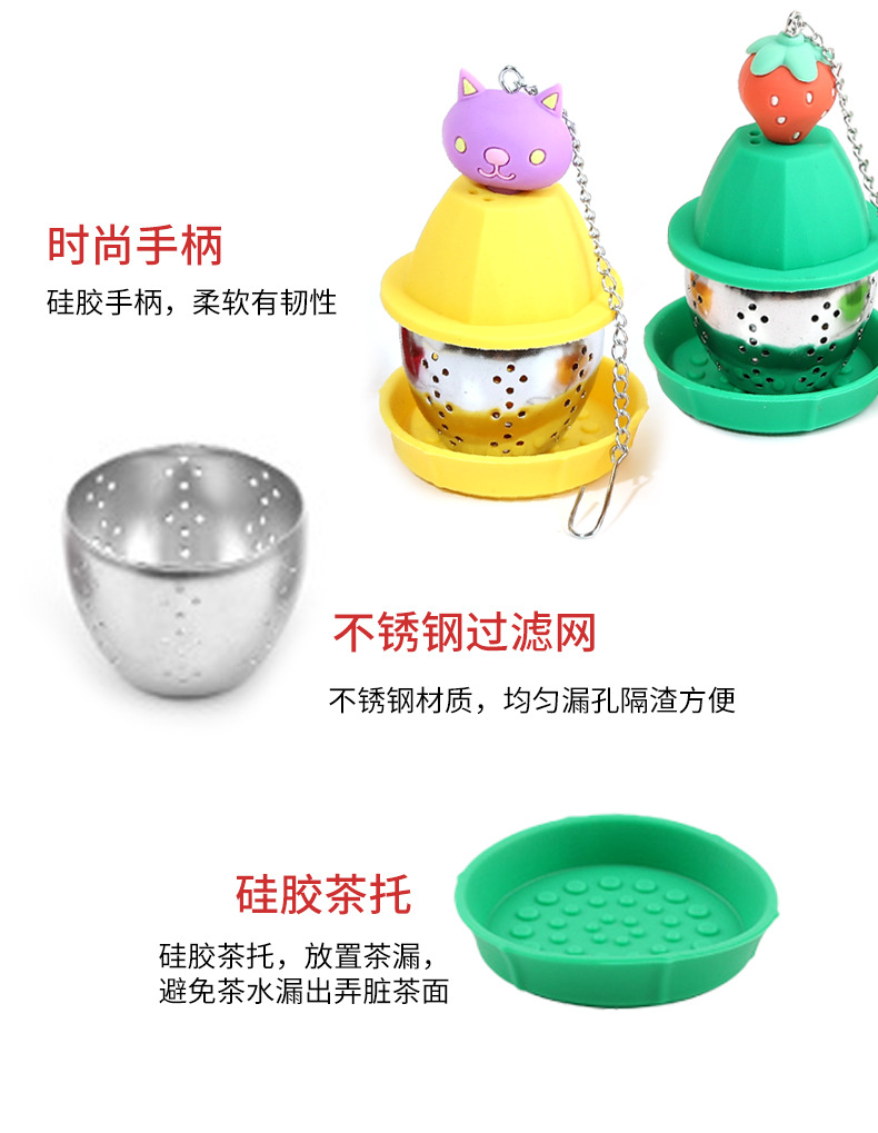 现货茶漏茶滤不锈钢茶水滤茶器创意硅胶手柄泡茶神器茶隔茶仓批发