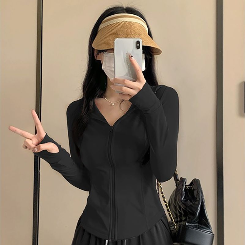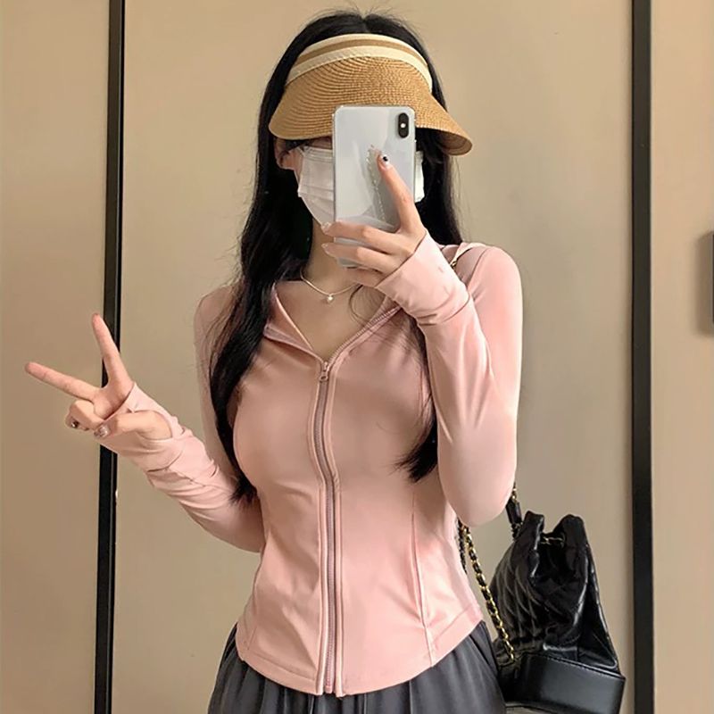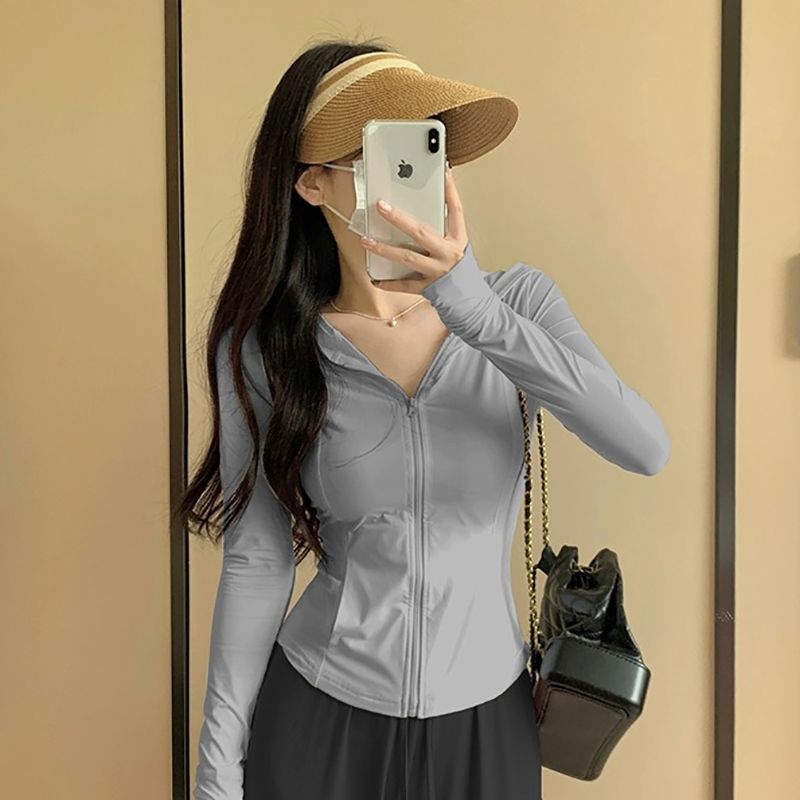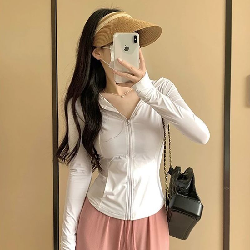 修身款冰感防晒夏季户外防晒衣连帽防紫外线紧身防晒服速干时尚