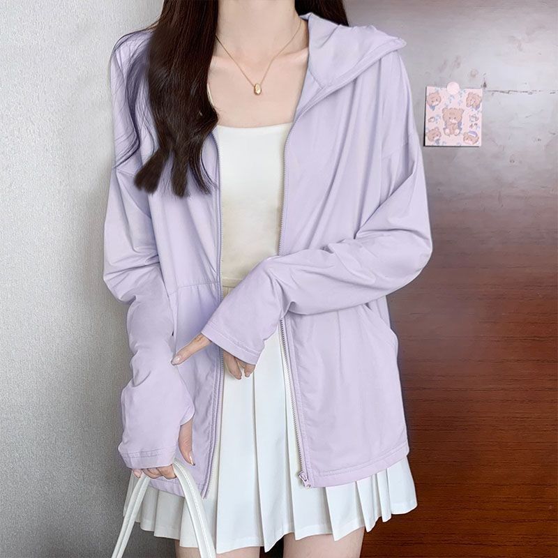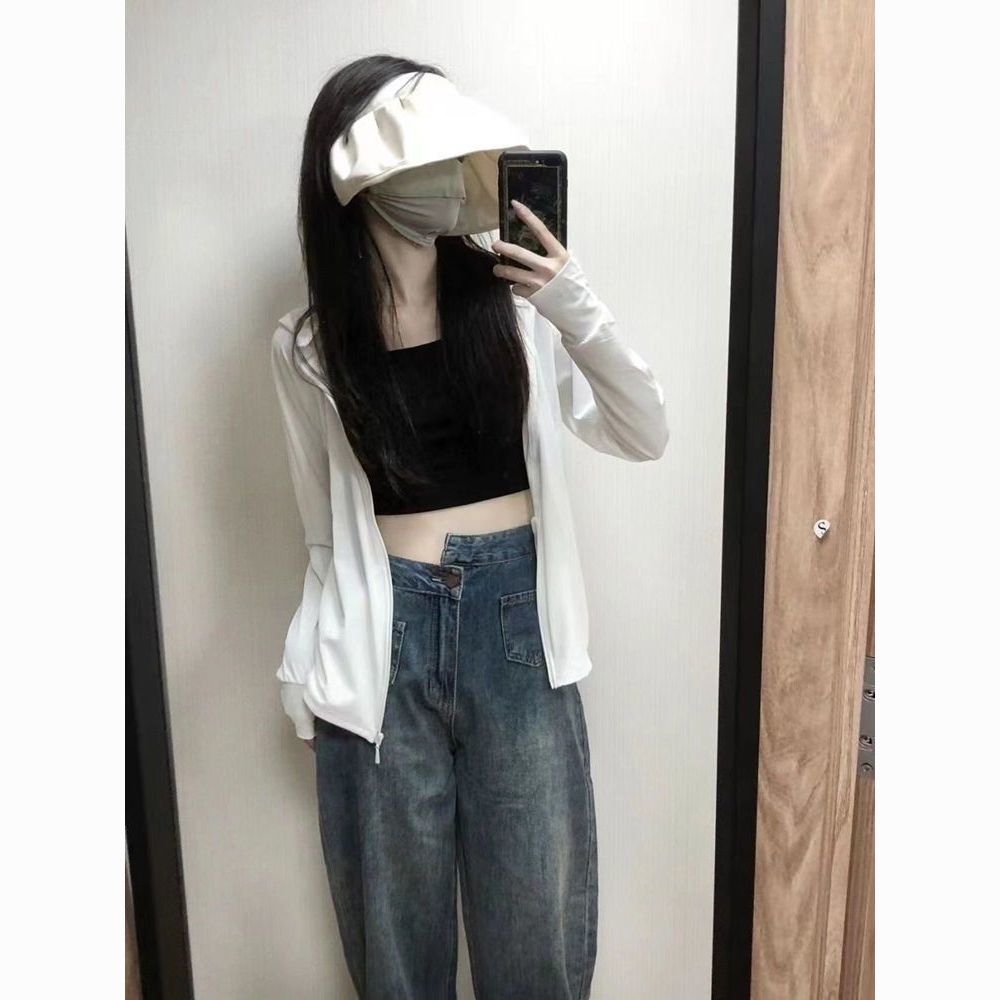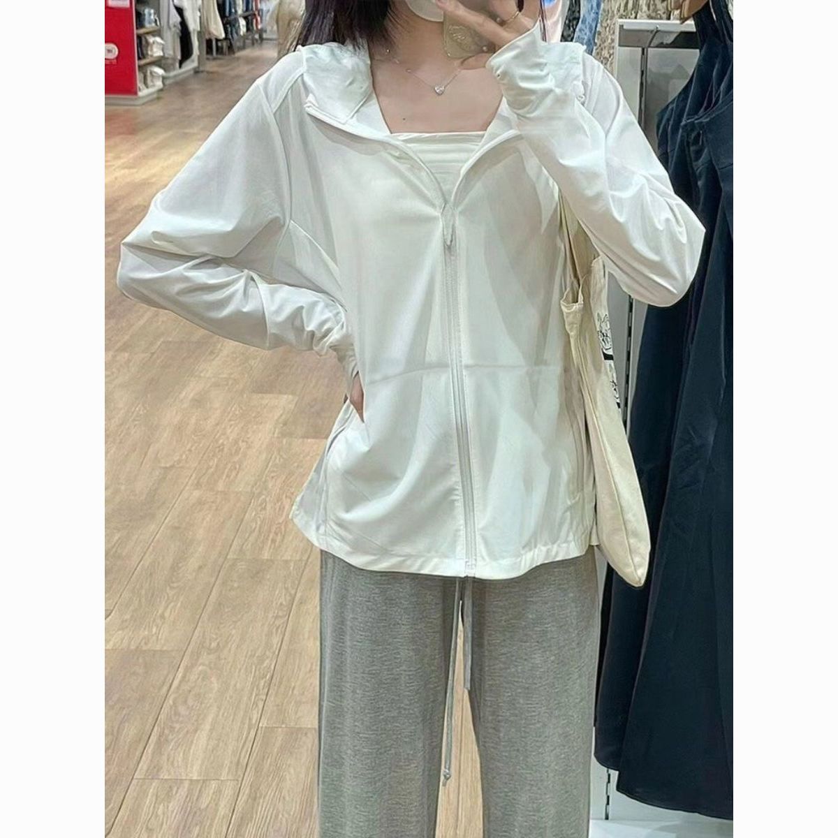 小清新正肩冰丝防晒衣女2024新款夏季白色防晒服透气薄款外套宽松