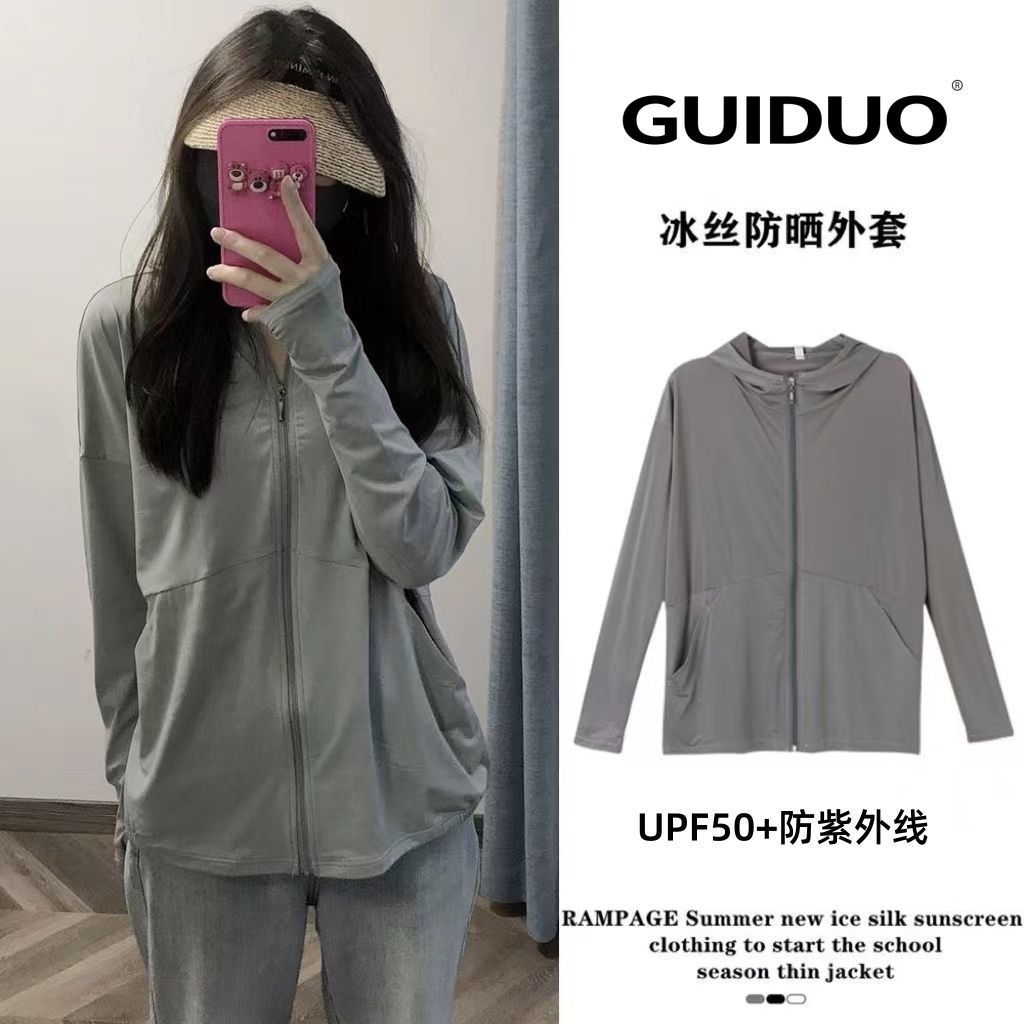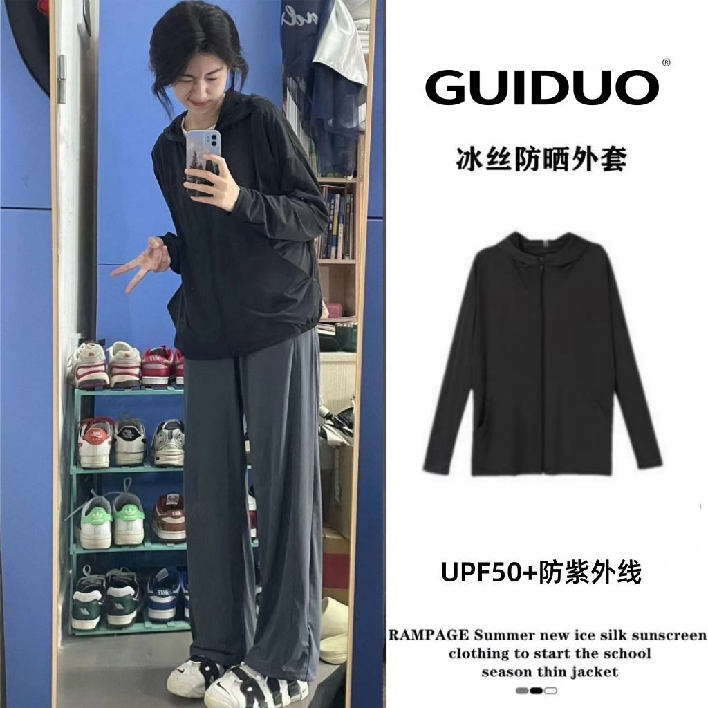 GUIDUO冰丝防晒衣女外穿轻薄款夏季2024新款防紫外线凉感开衫外套