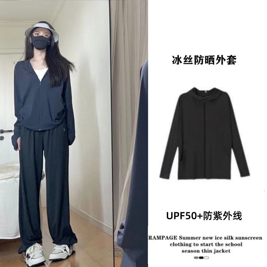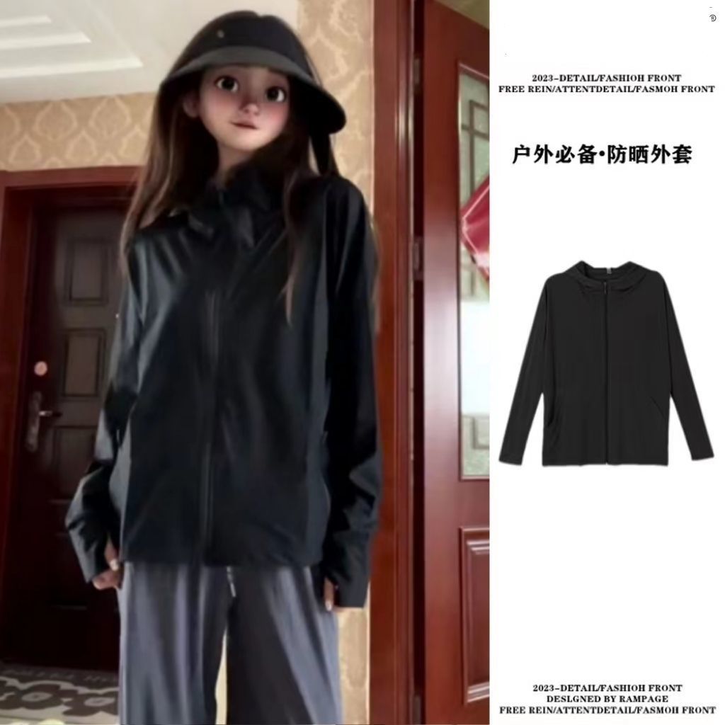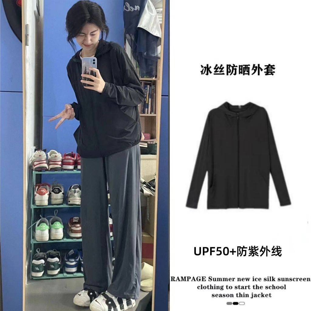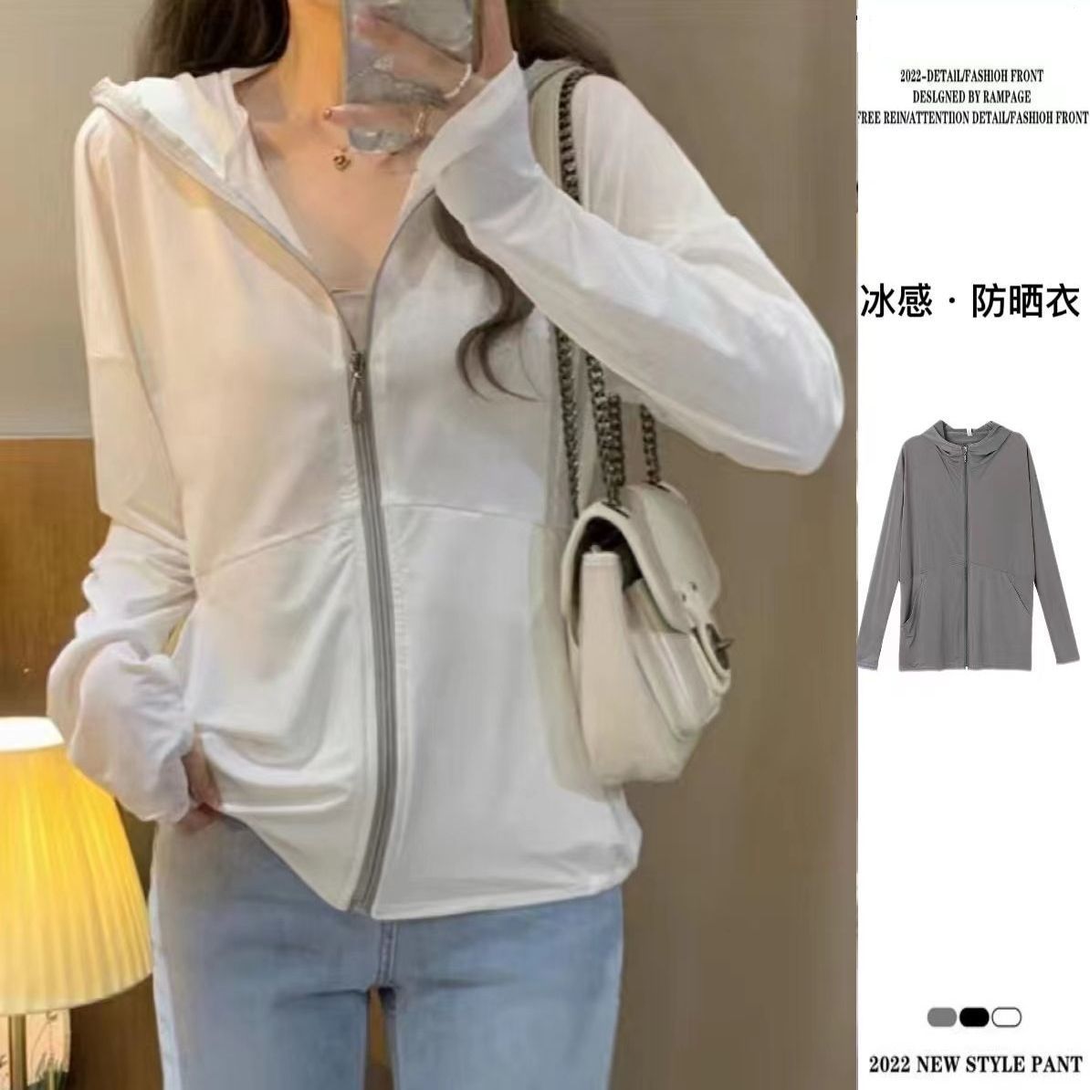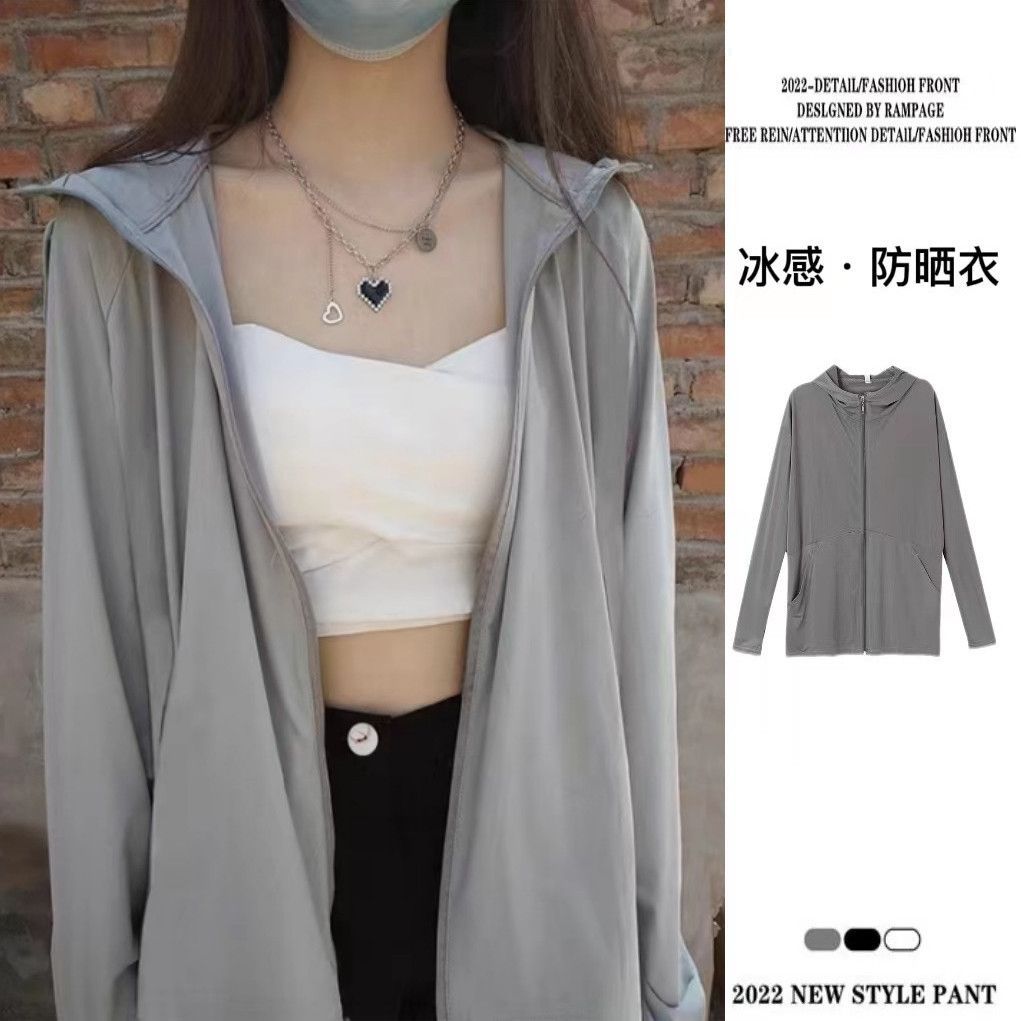 夏季冰丝防晒衣女外穿透气防紫外线连帽外套宽松长袖百搭薄防晒服