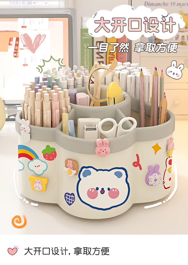 旋转笔筒收纳筒学生办公室桌面创意笔桶高颜值大容量简约塑胶个性
