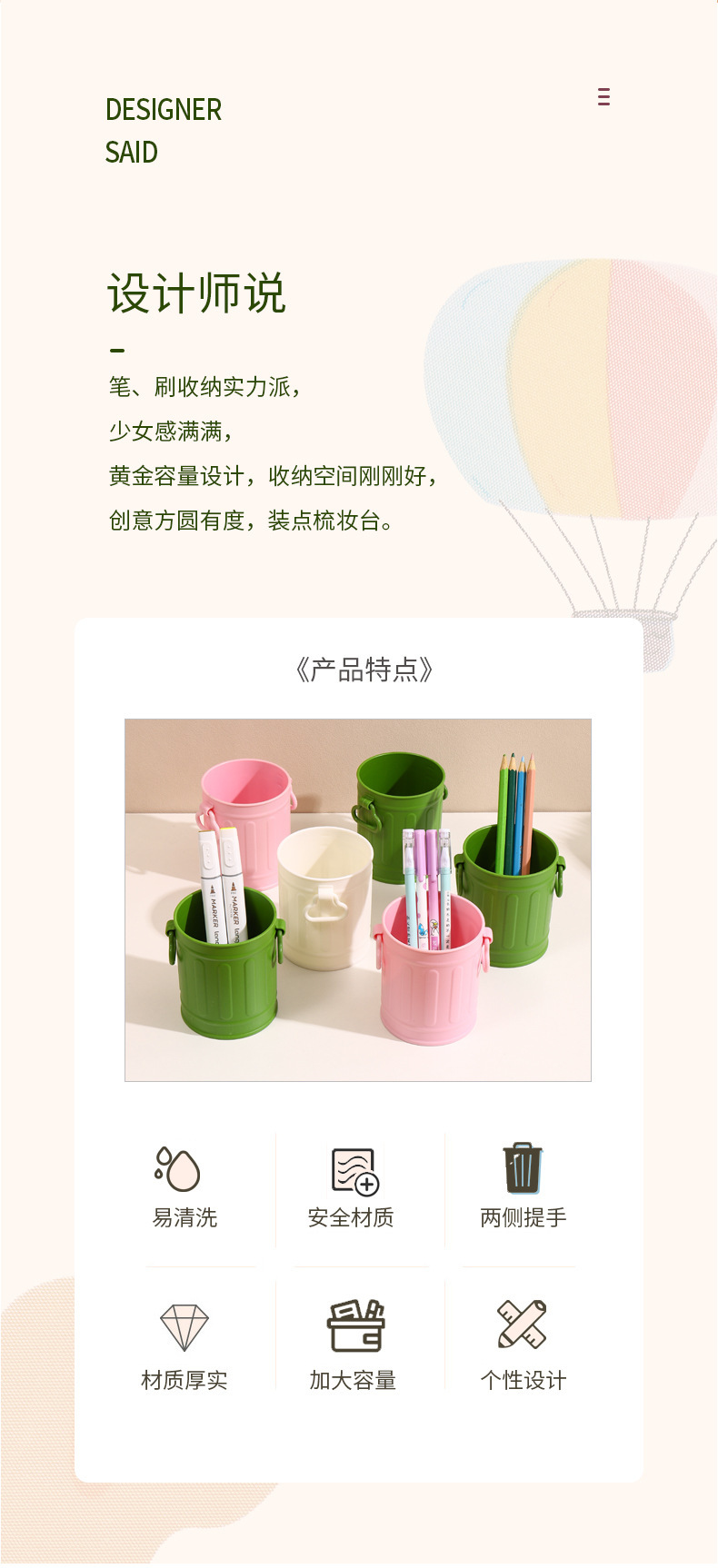 ins可爱彷铁艺塑料笔筒化妆筒学生女孩收纳笔筒大容量杂物收纳筒