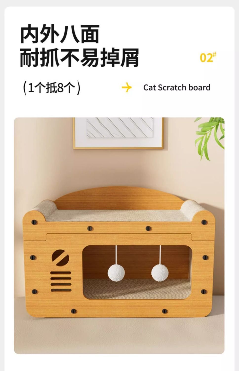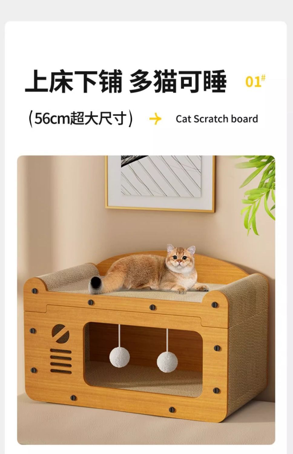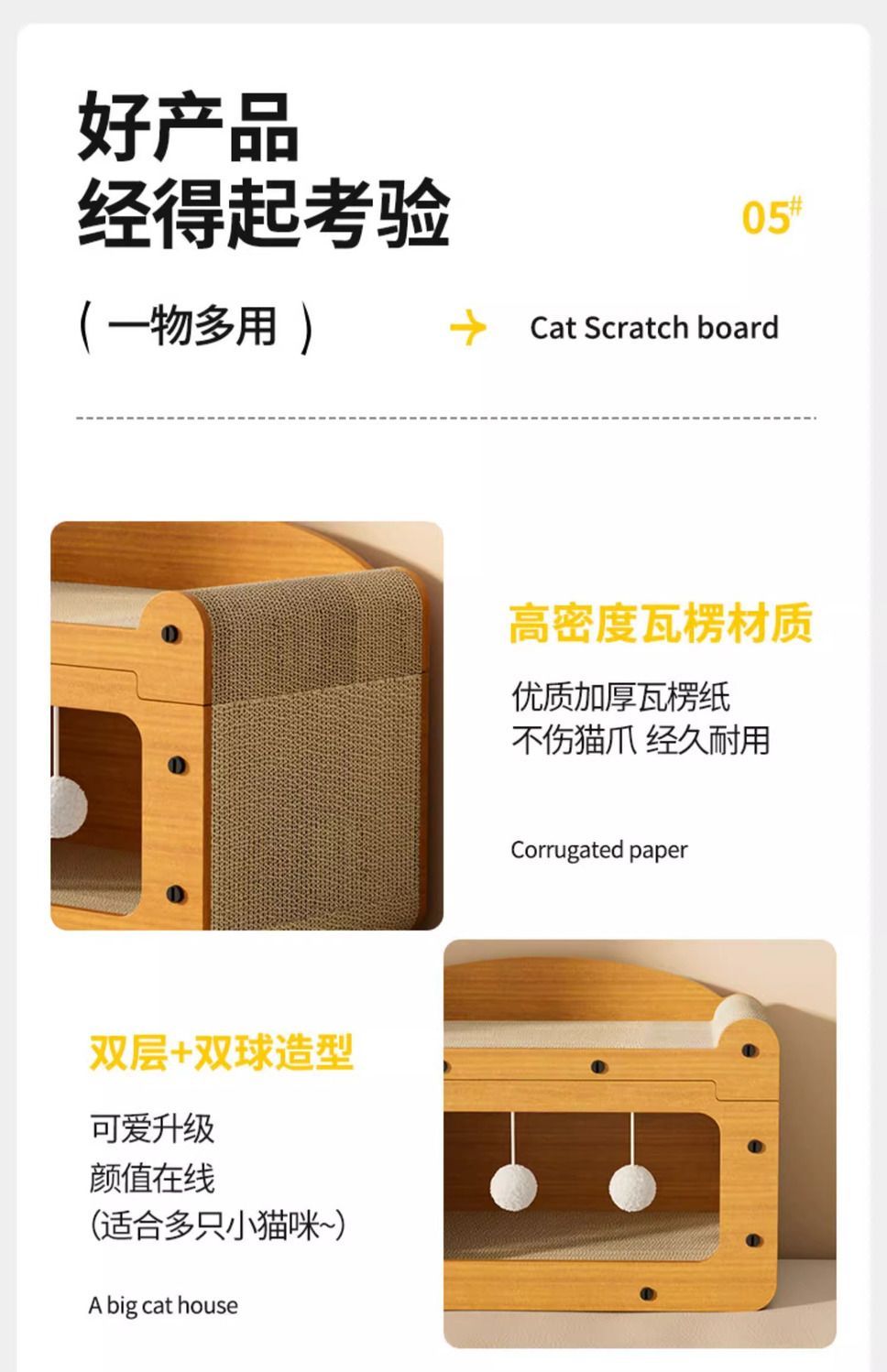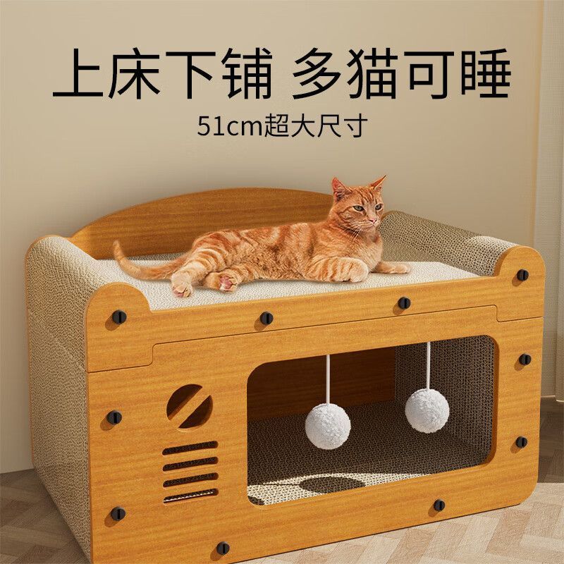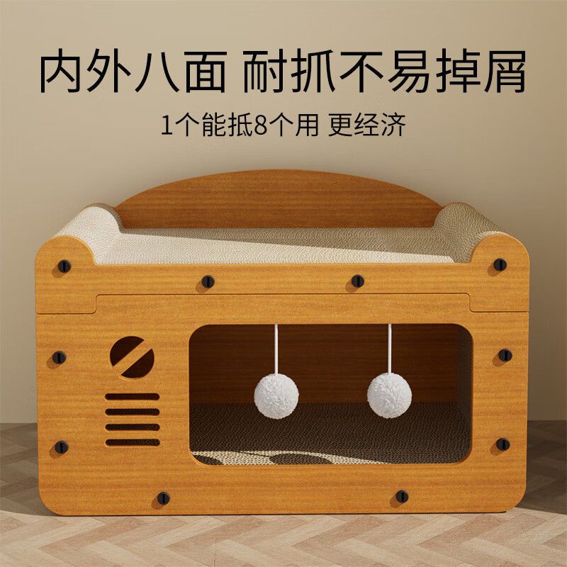 猫抓板猫窝一体耐磨不掉屑四季通用耐抓猫屋立式猫爪板多功能玩具