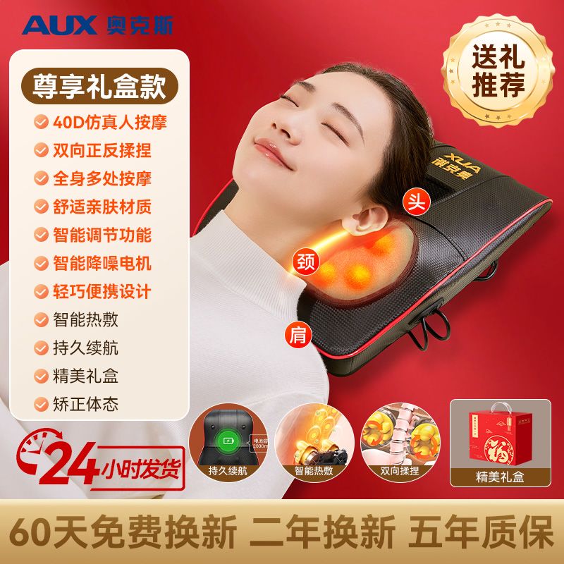 奥克斯多功能按摩枕颈椎腰部背部脖子按摩靠垫揉捏按摩仪家用送礼