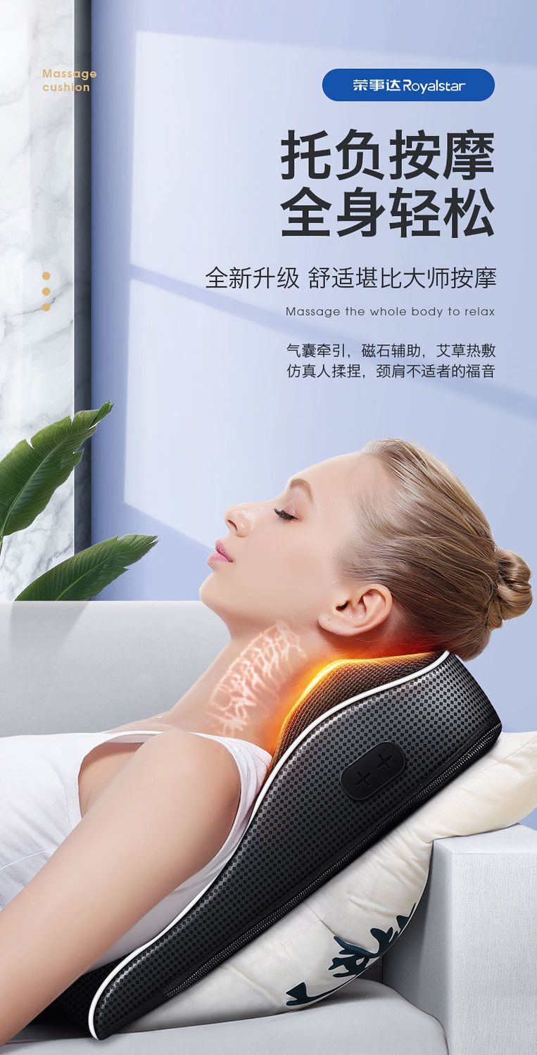 荣事达颈椎按摩器多功能全身脖子腰疼背部家用按摩靠垫智能按摩枕
