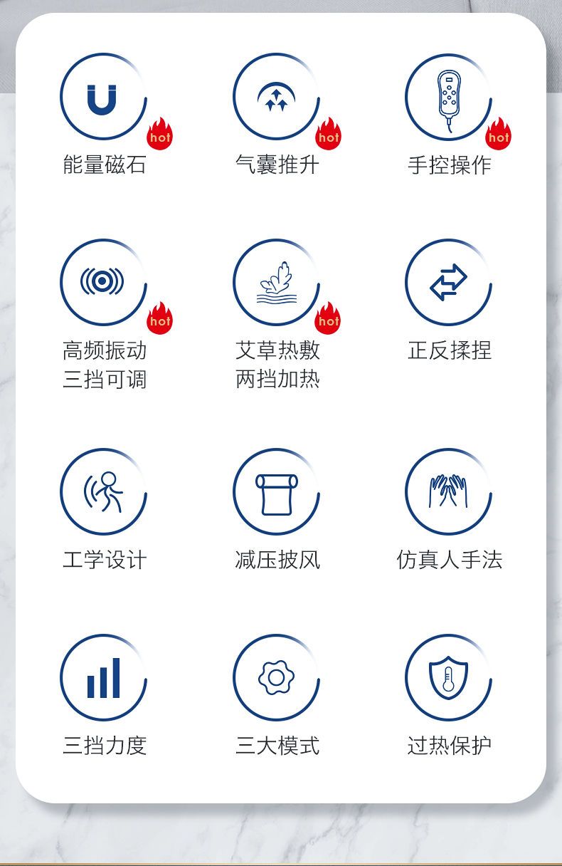 | [luxury energy-saving version] six keys + hot compress + argy wormwood + strength(【奢华节能版】六键+热敷+艾草+力度) | USD $18.12 | 999999 piece available |