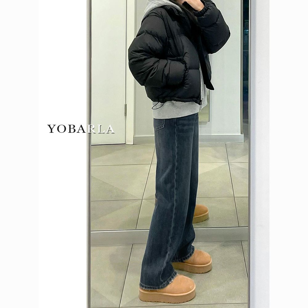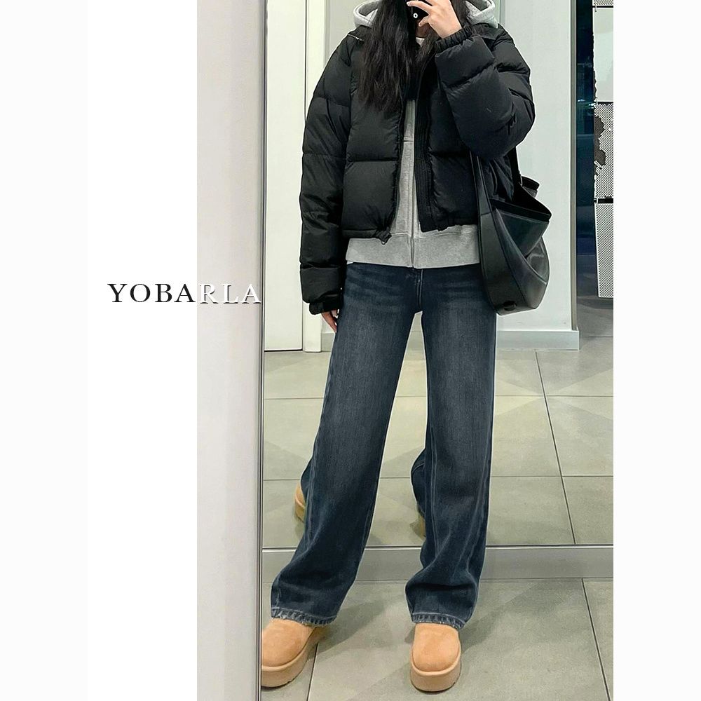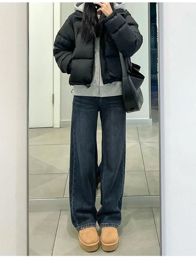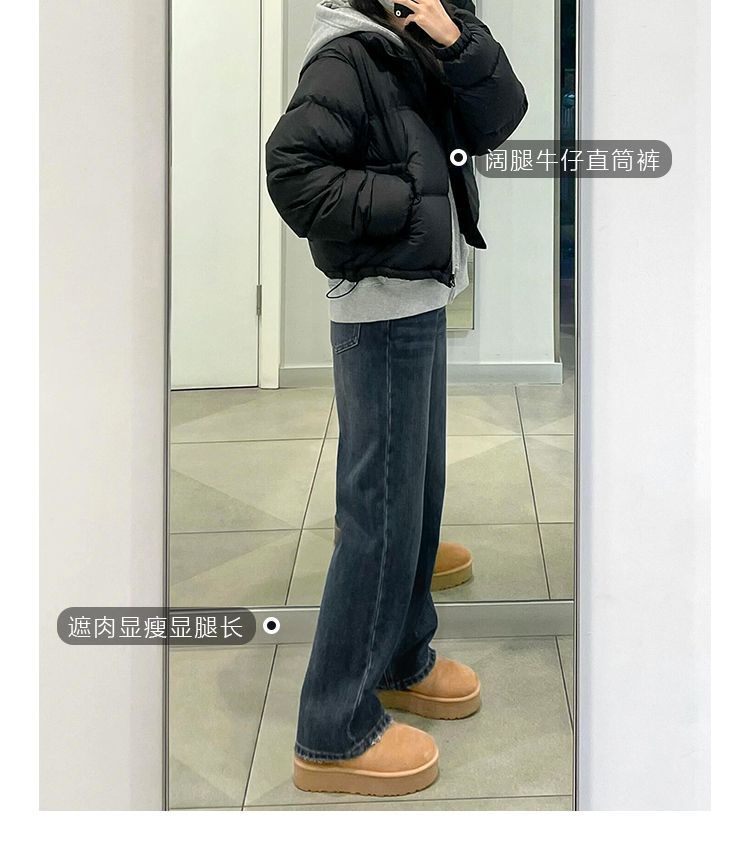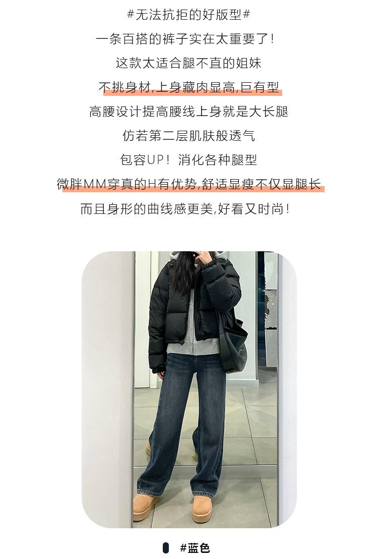 蓝灰色直筒牛仔裤女春秋新款大码梨形身材胖mm宽松显瘦窄版阔腿裤