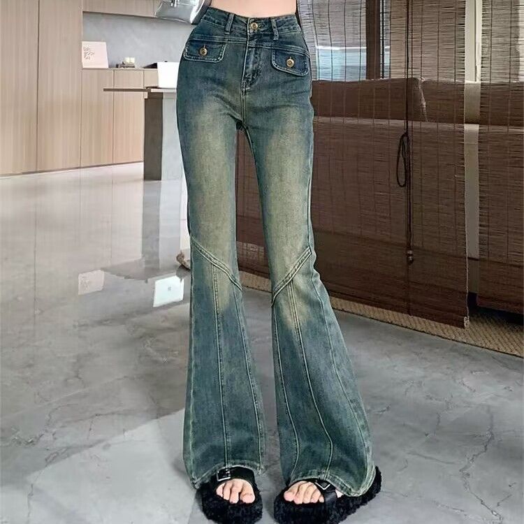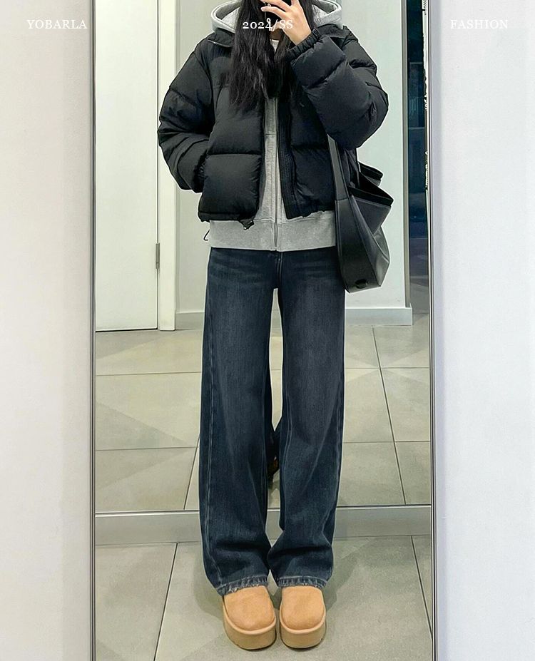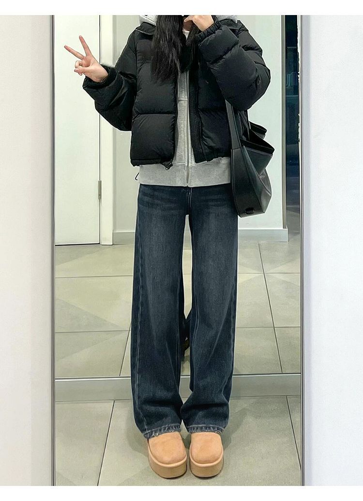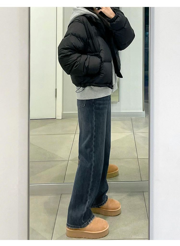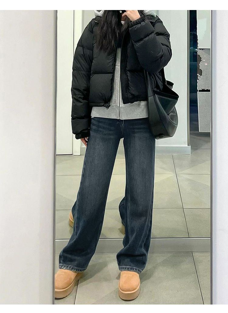 蓝灰色直筒牛仔裤女春秋新款大码梨形身材胖mm宽松显瘦窄版阔腿裤