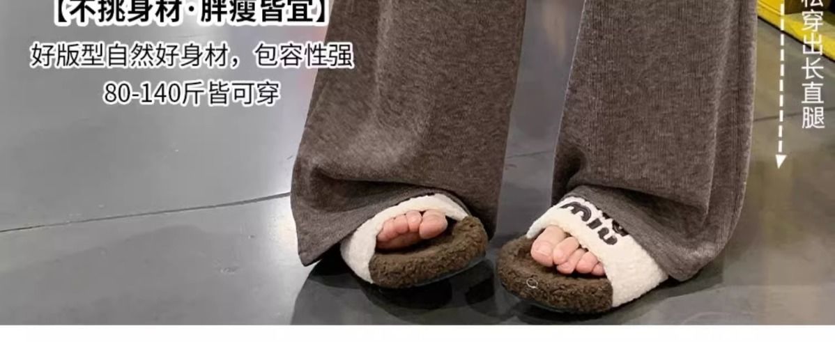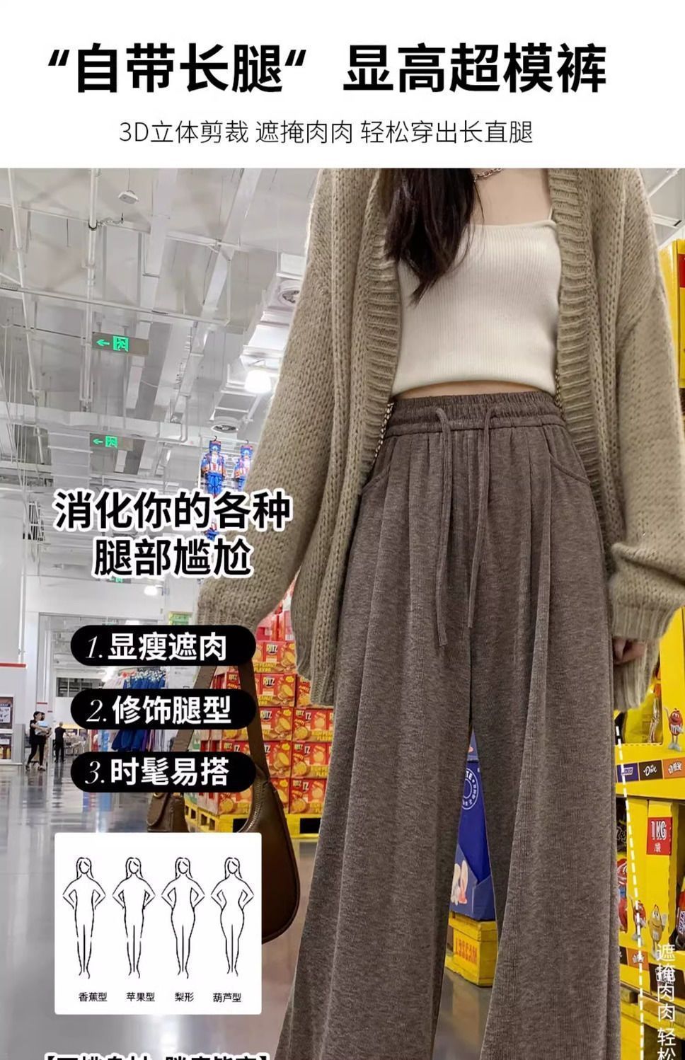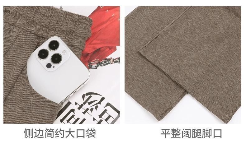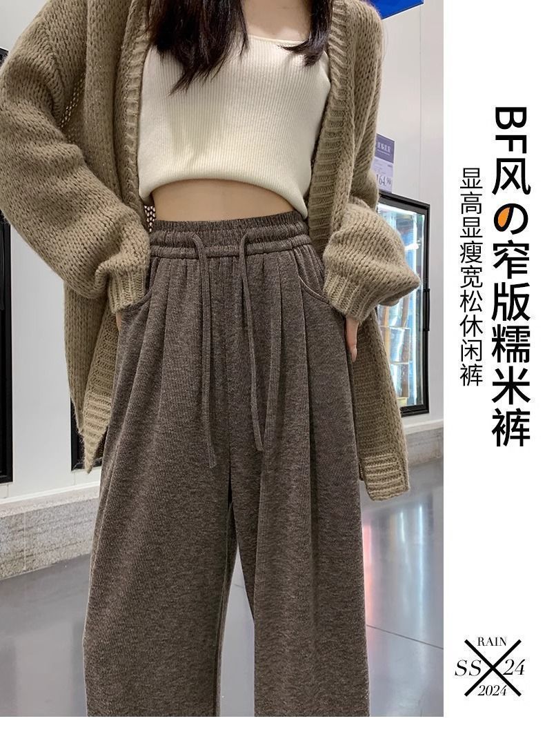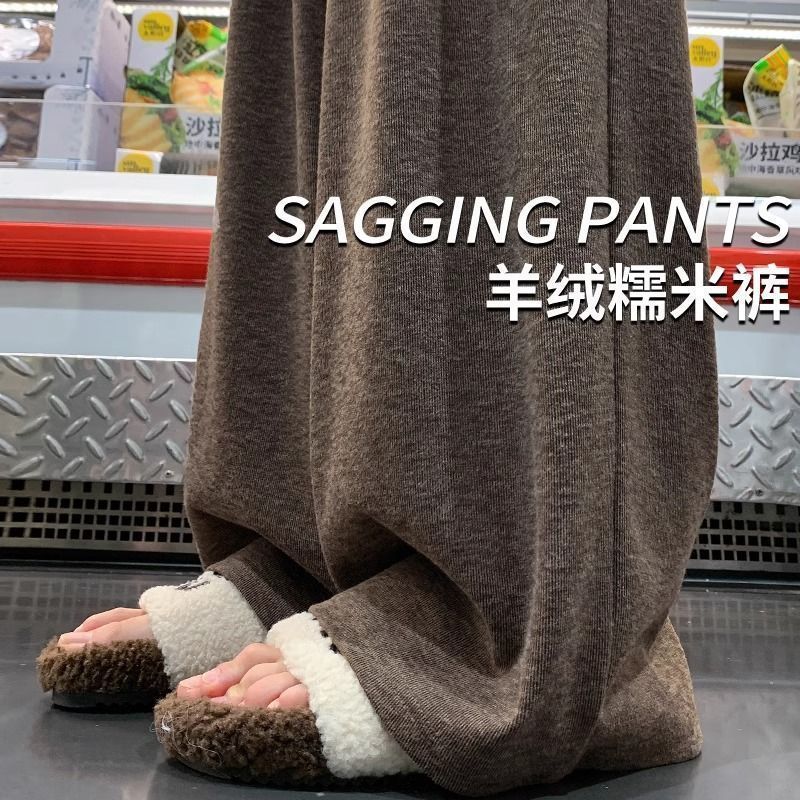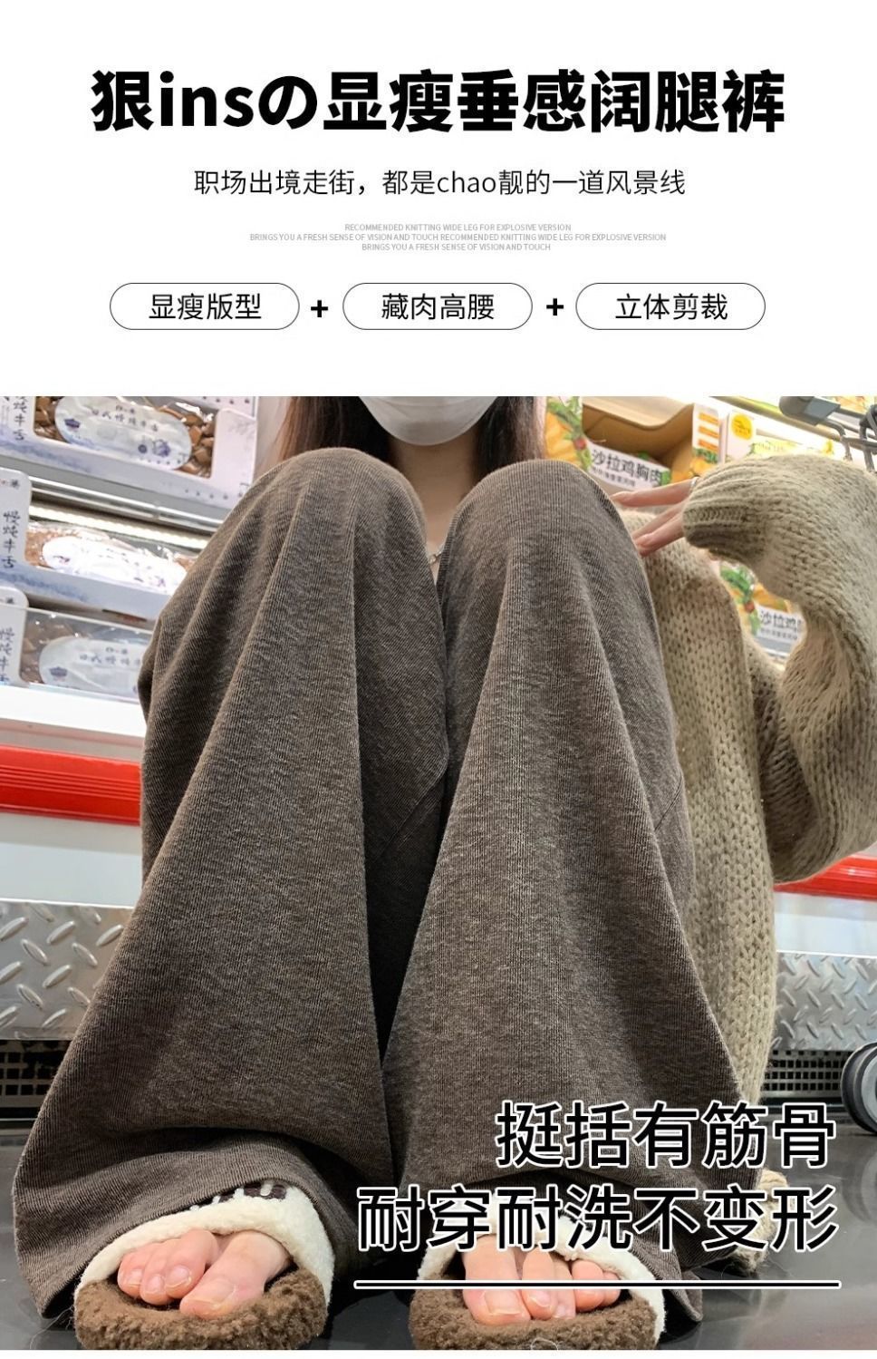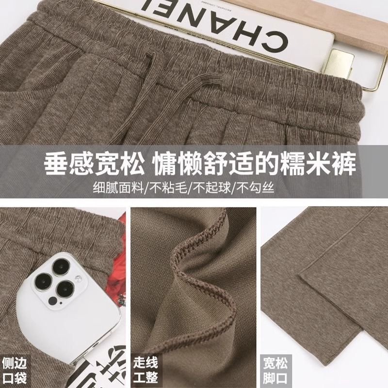 胖MM大码咖色糯米裤女秋冬加绒高腰宽松休闲裤垂感阔腿裤