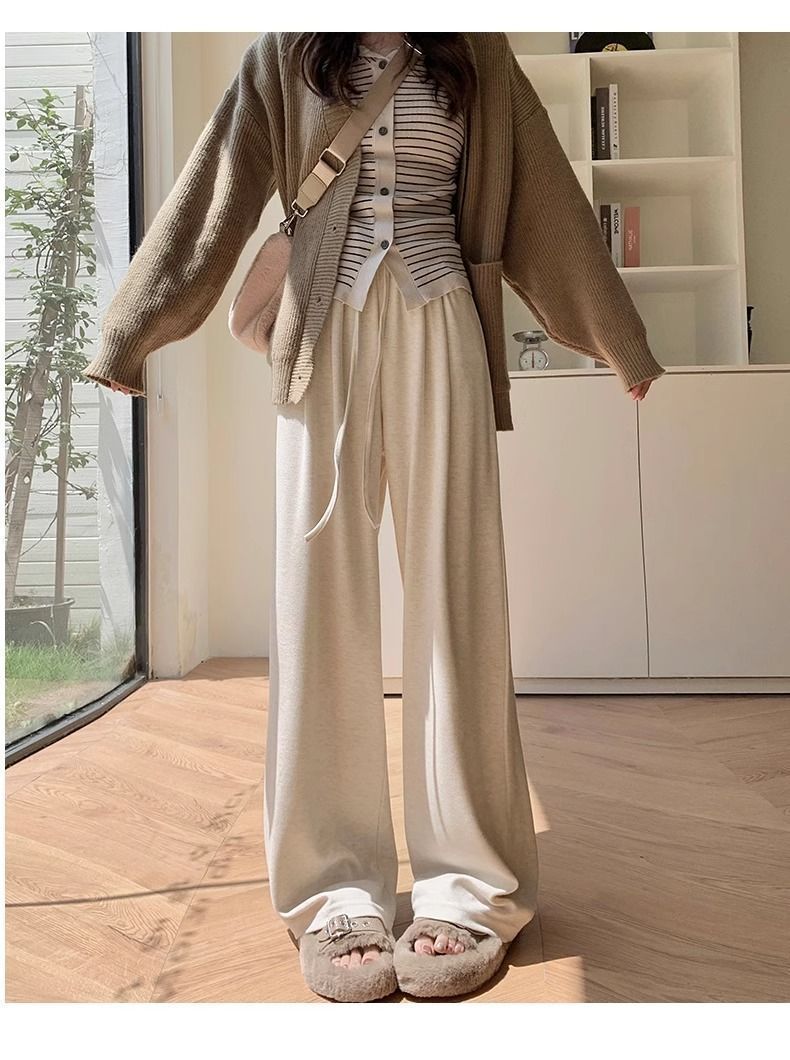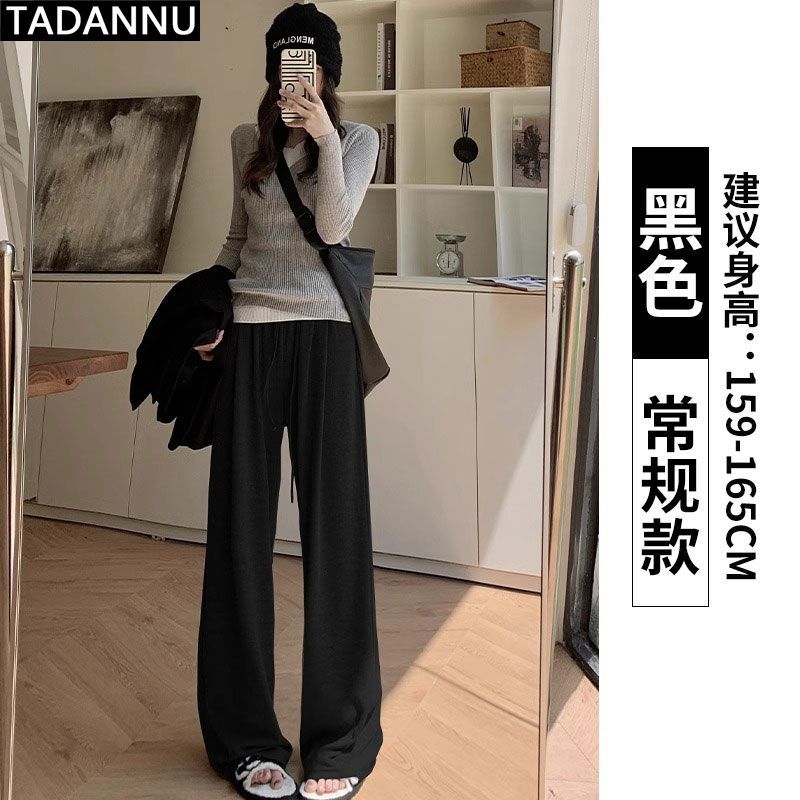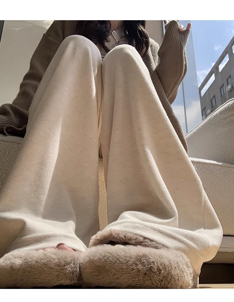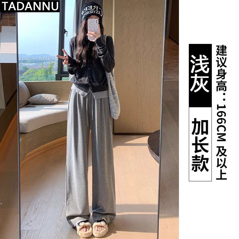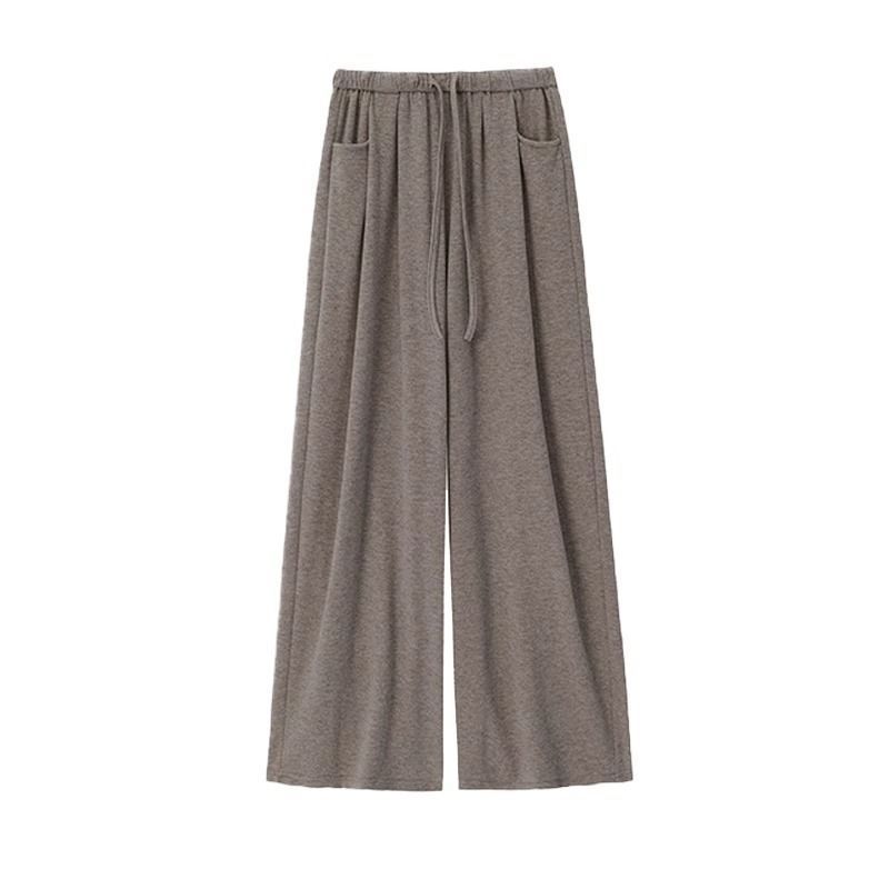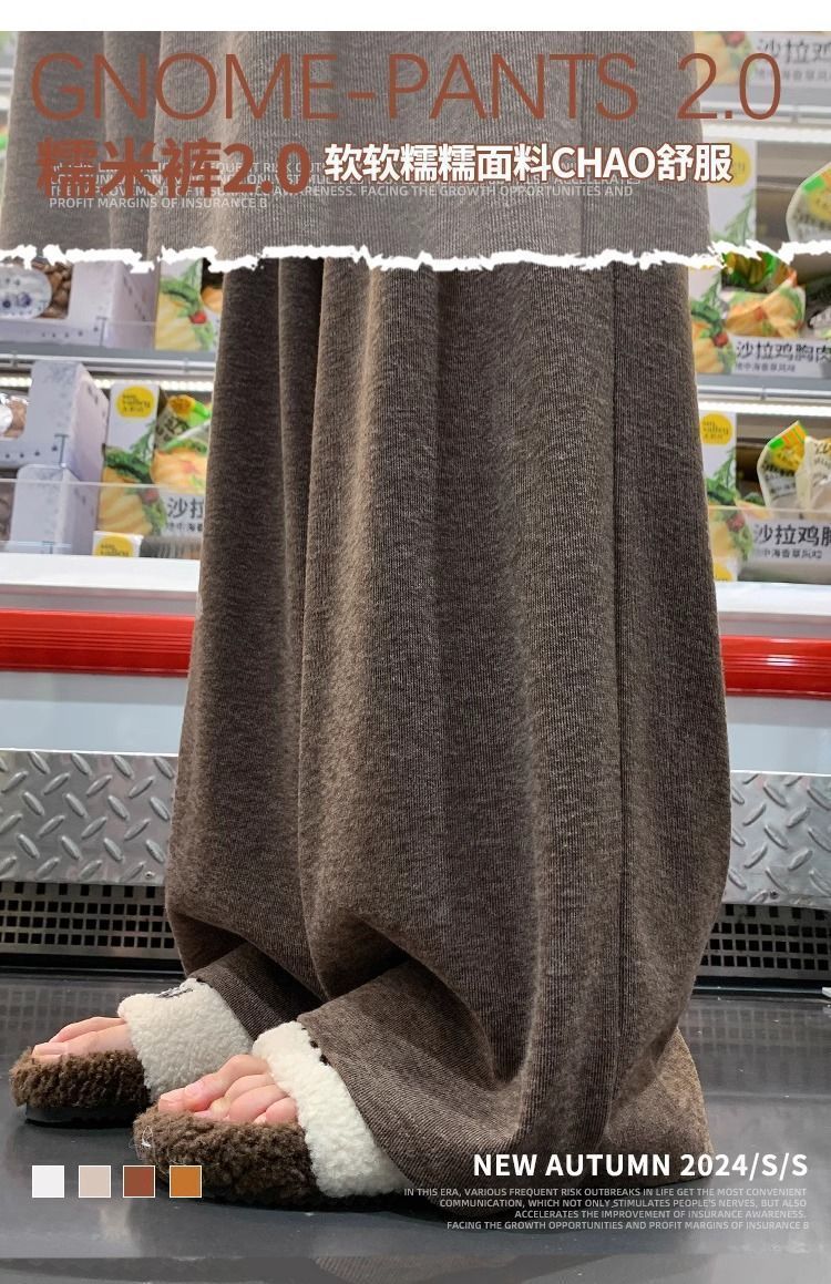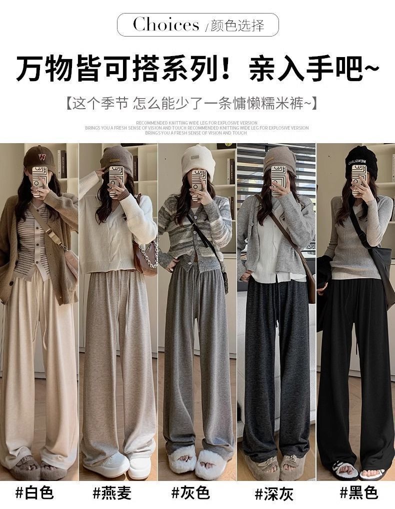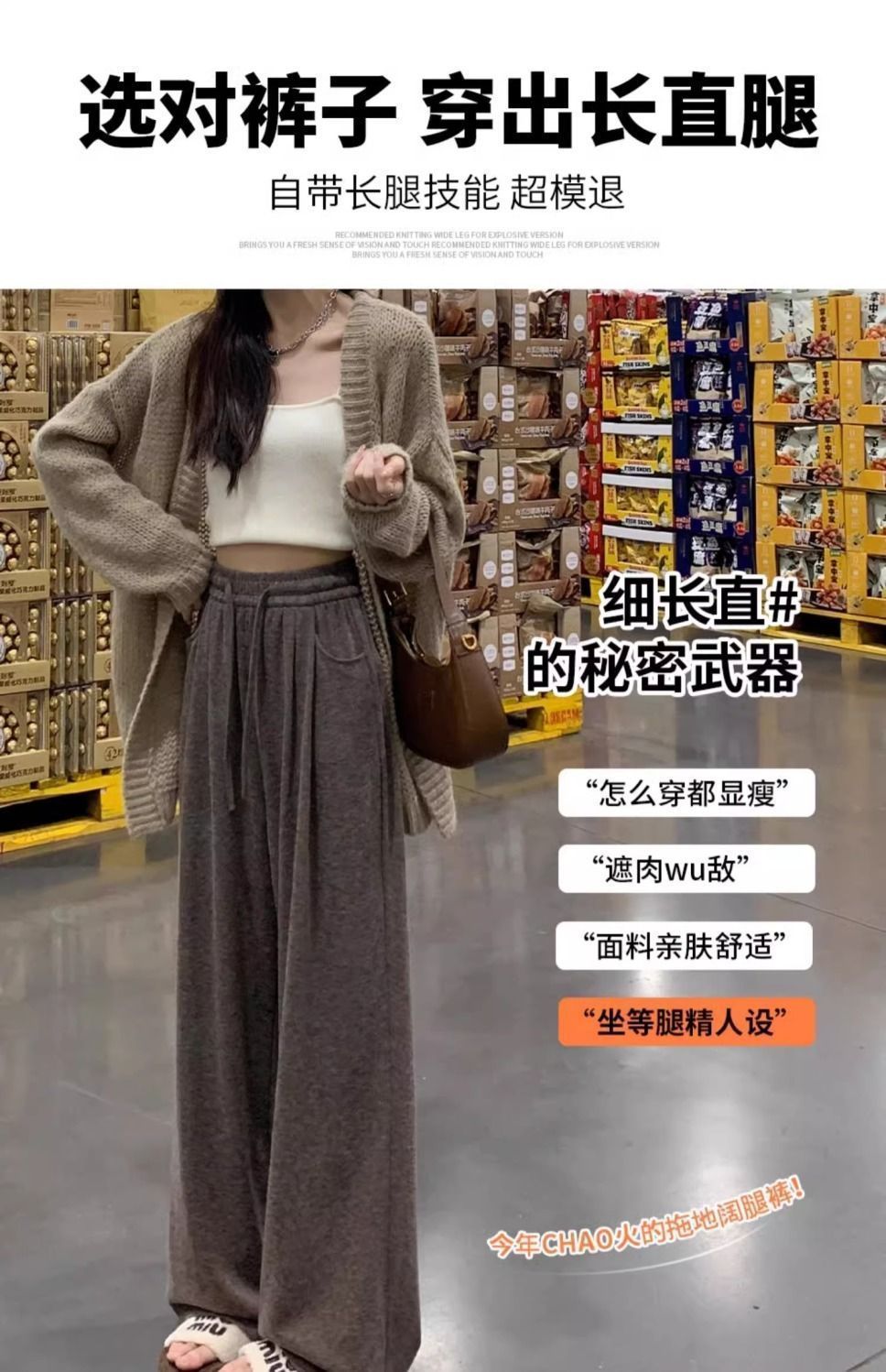 胖MM大码咖色糯米裤女秋冬加绒高腰宽松休闲裤垂感阔腿裤