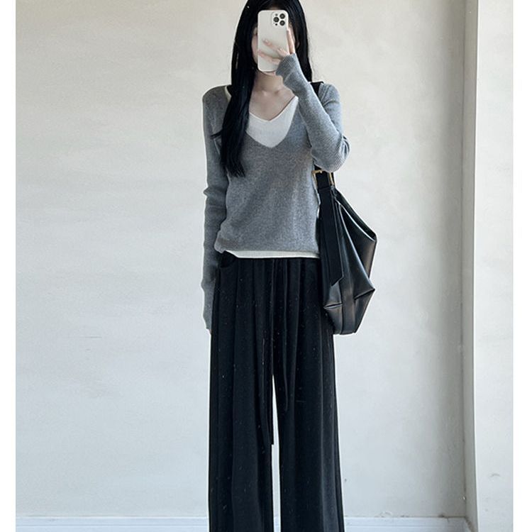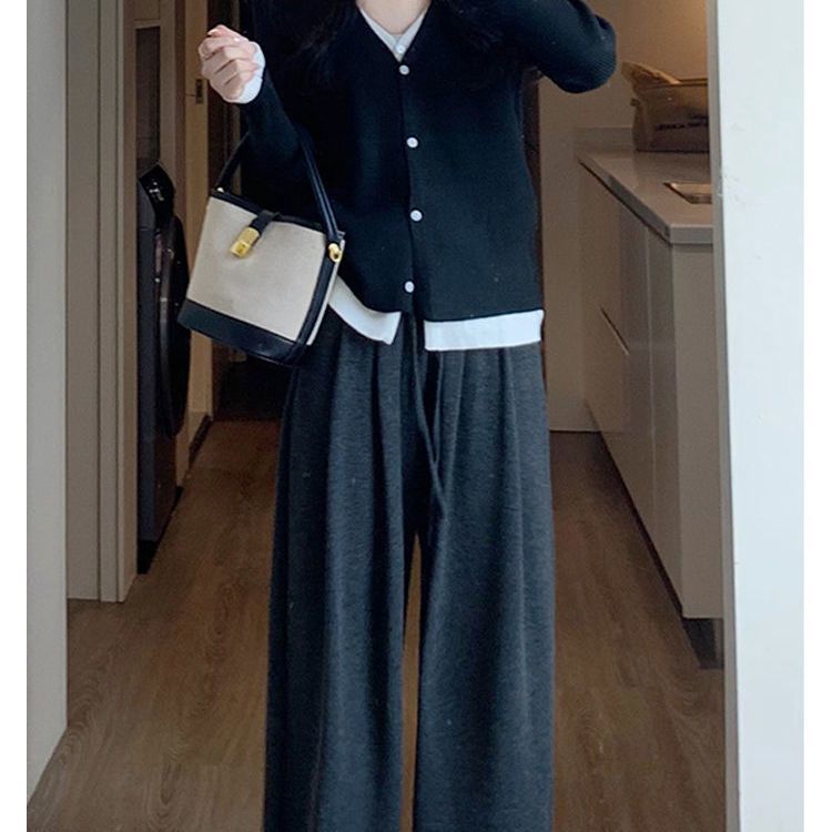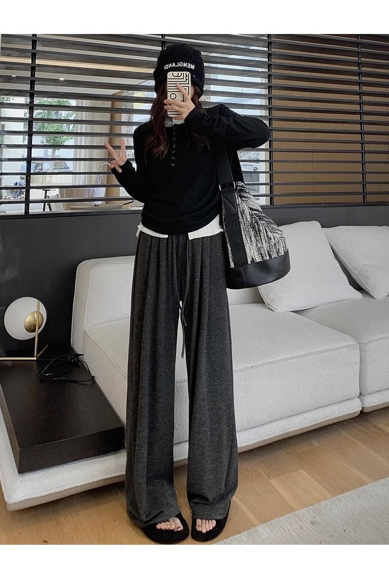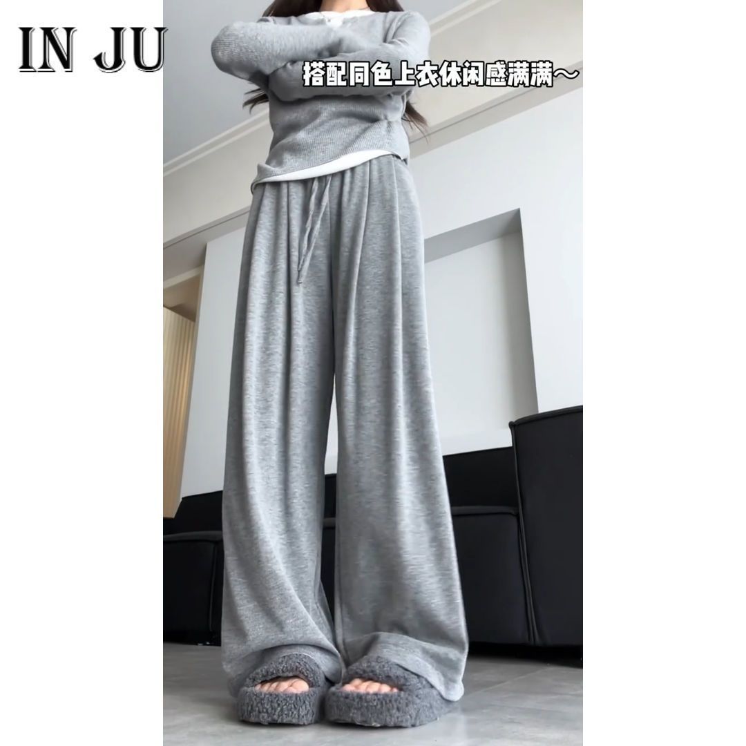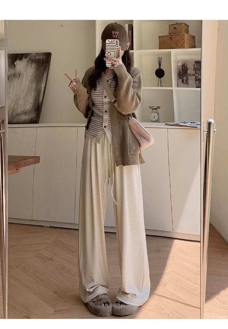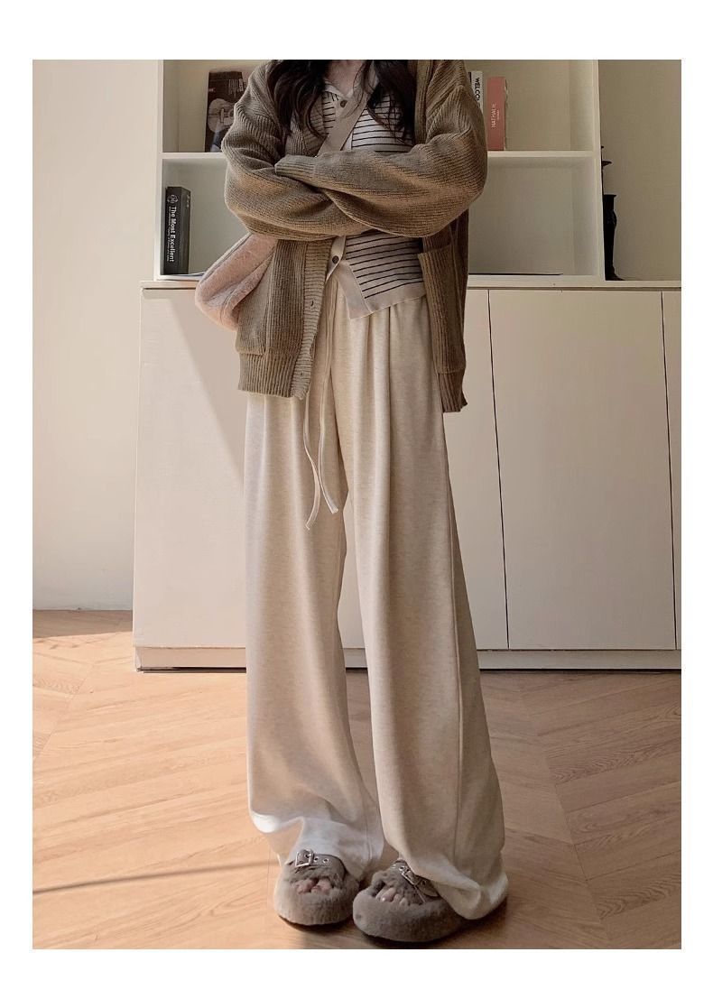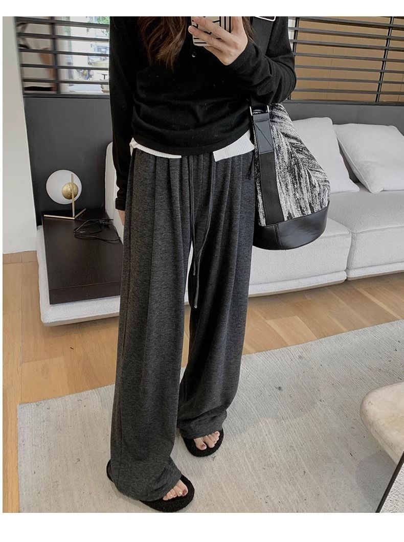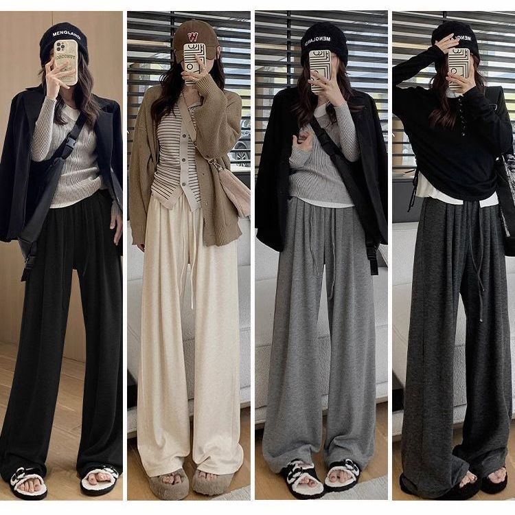 胖MM大码咖色糯米裤女秋冬加绒高腰宽松休闲裤垂感阔腿裤