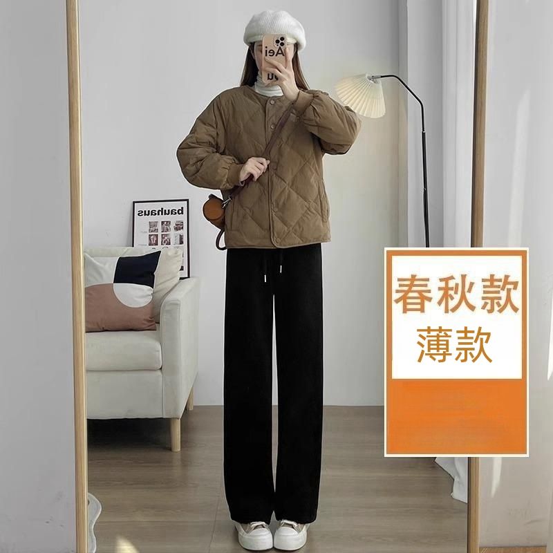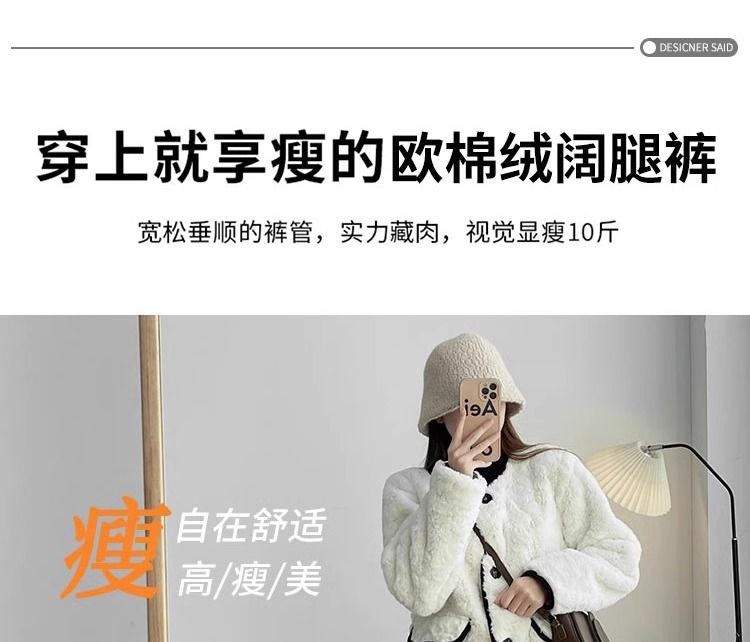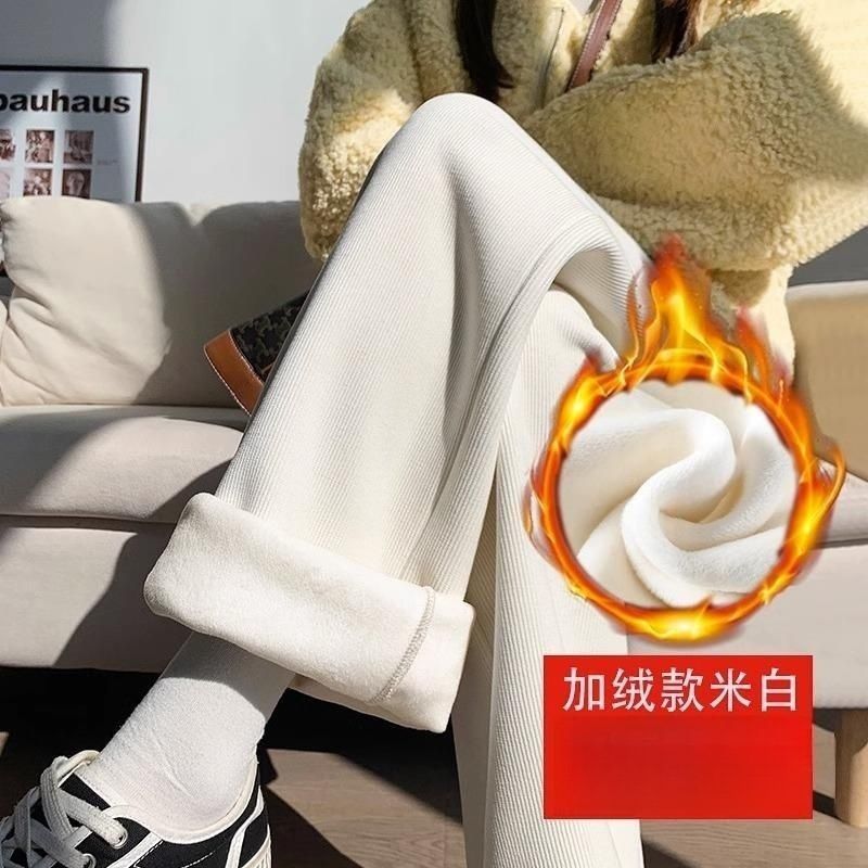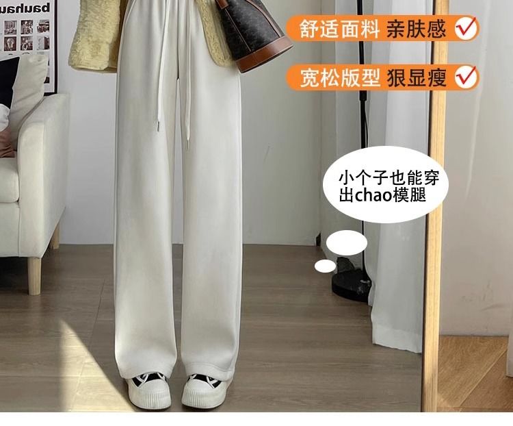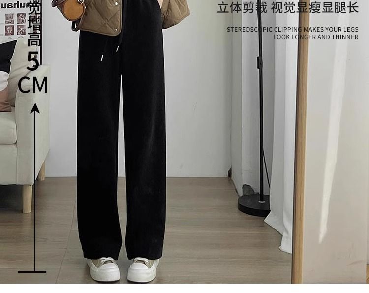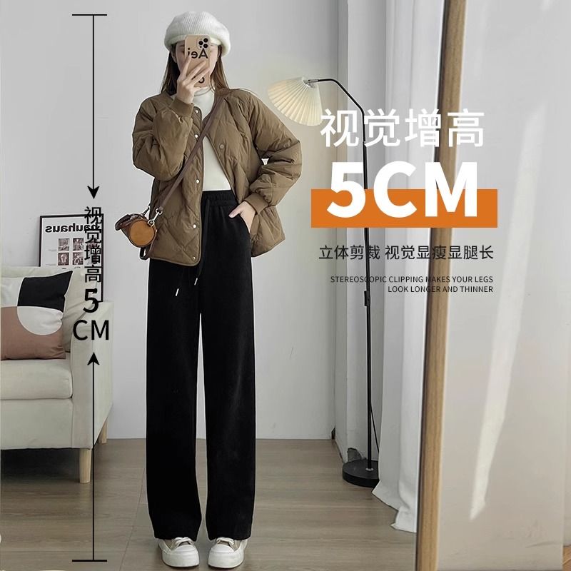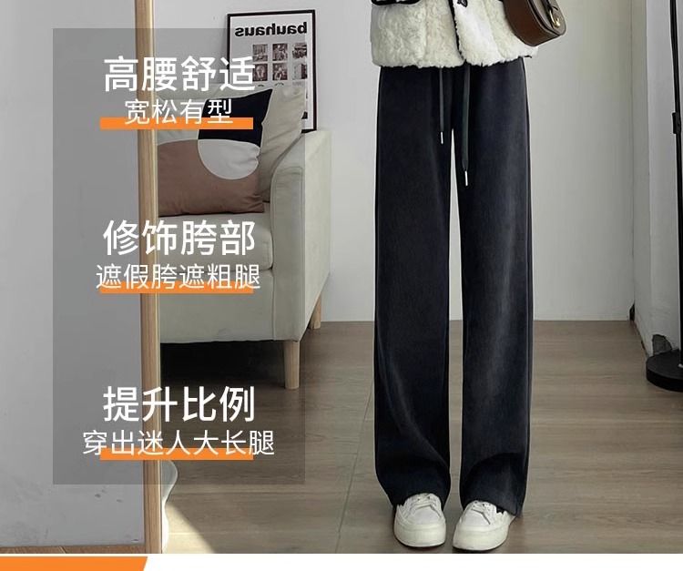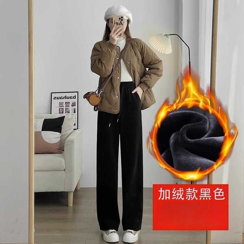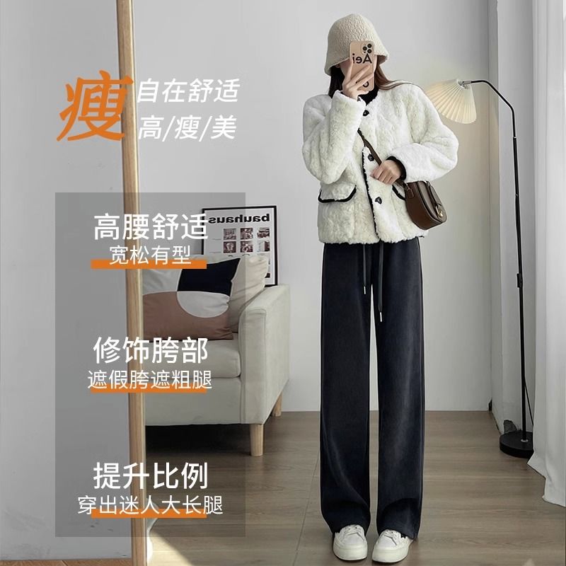 雪尼尔大码阔腿裤女春秋加绒加厚裤子女胖mm宽松显瘦垂感直筒休闲