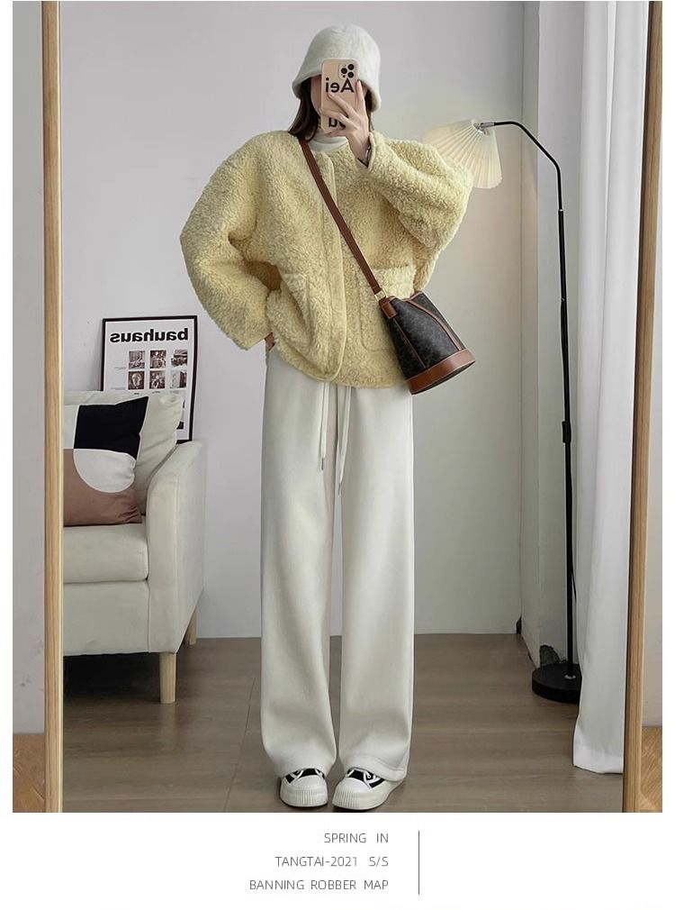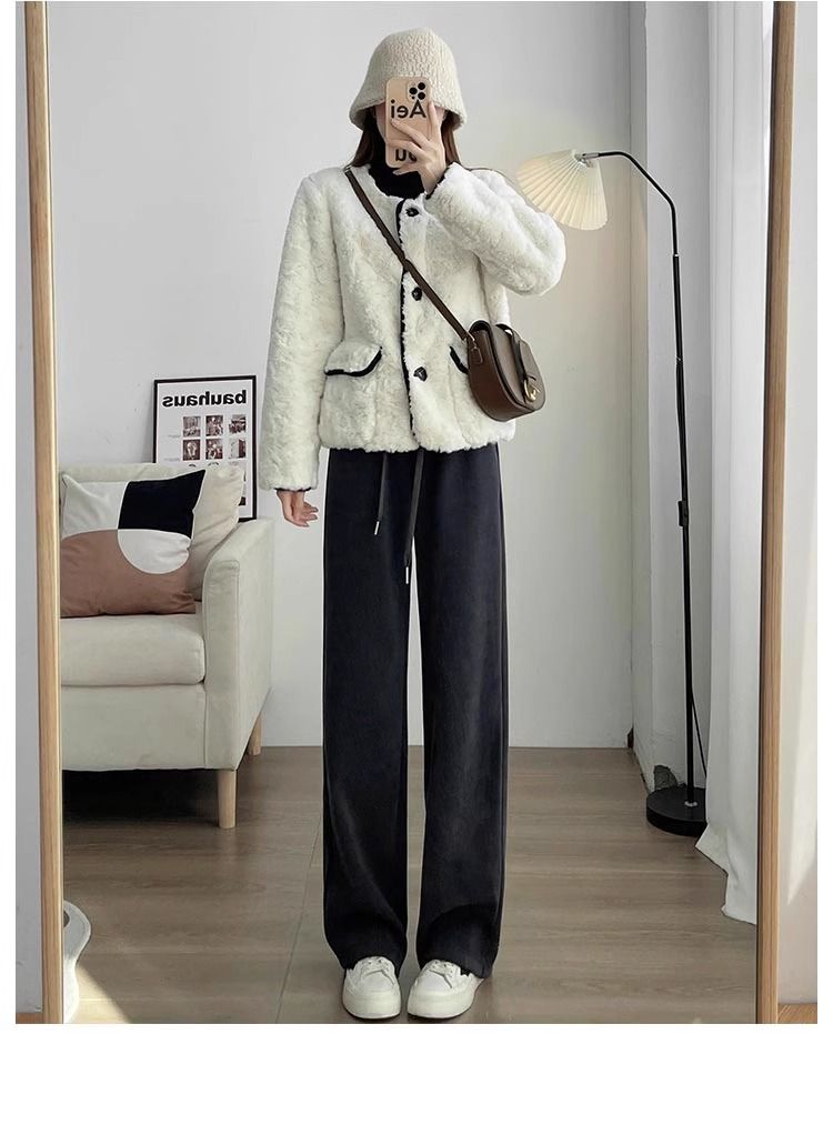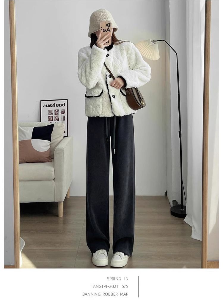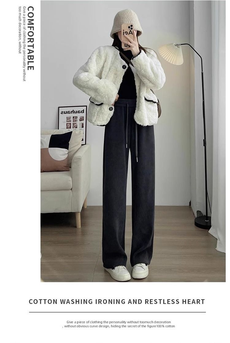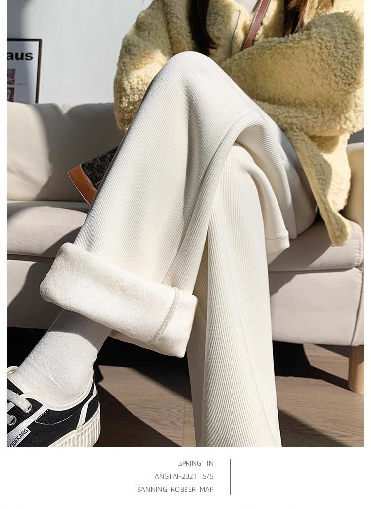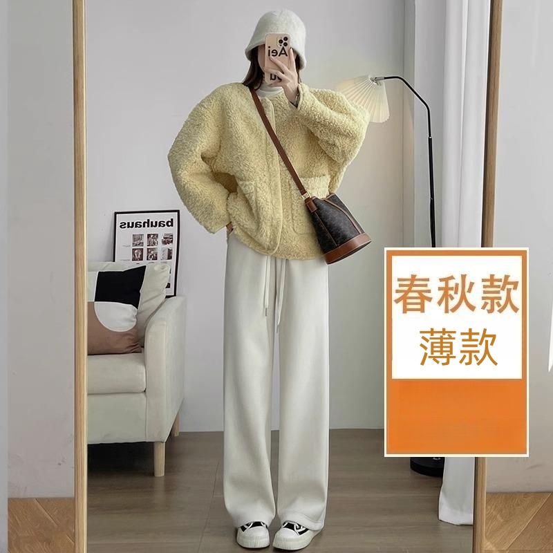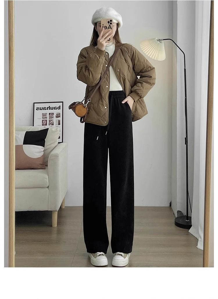 雪尼尔大码阔腿裤女春秋加绒加厚裤子女胖mm宽松显瘦垂感直筒休闲