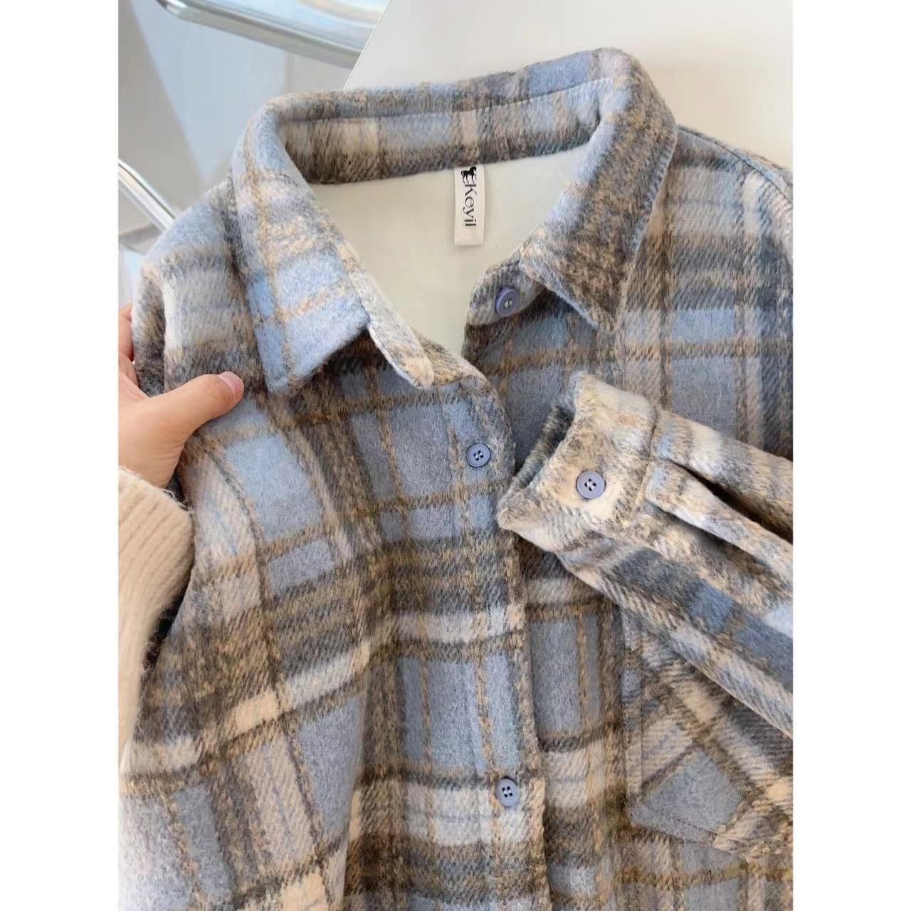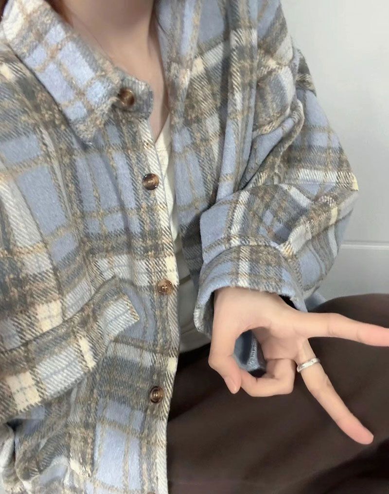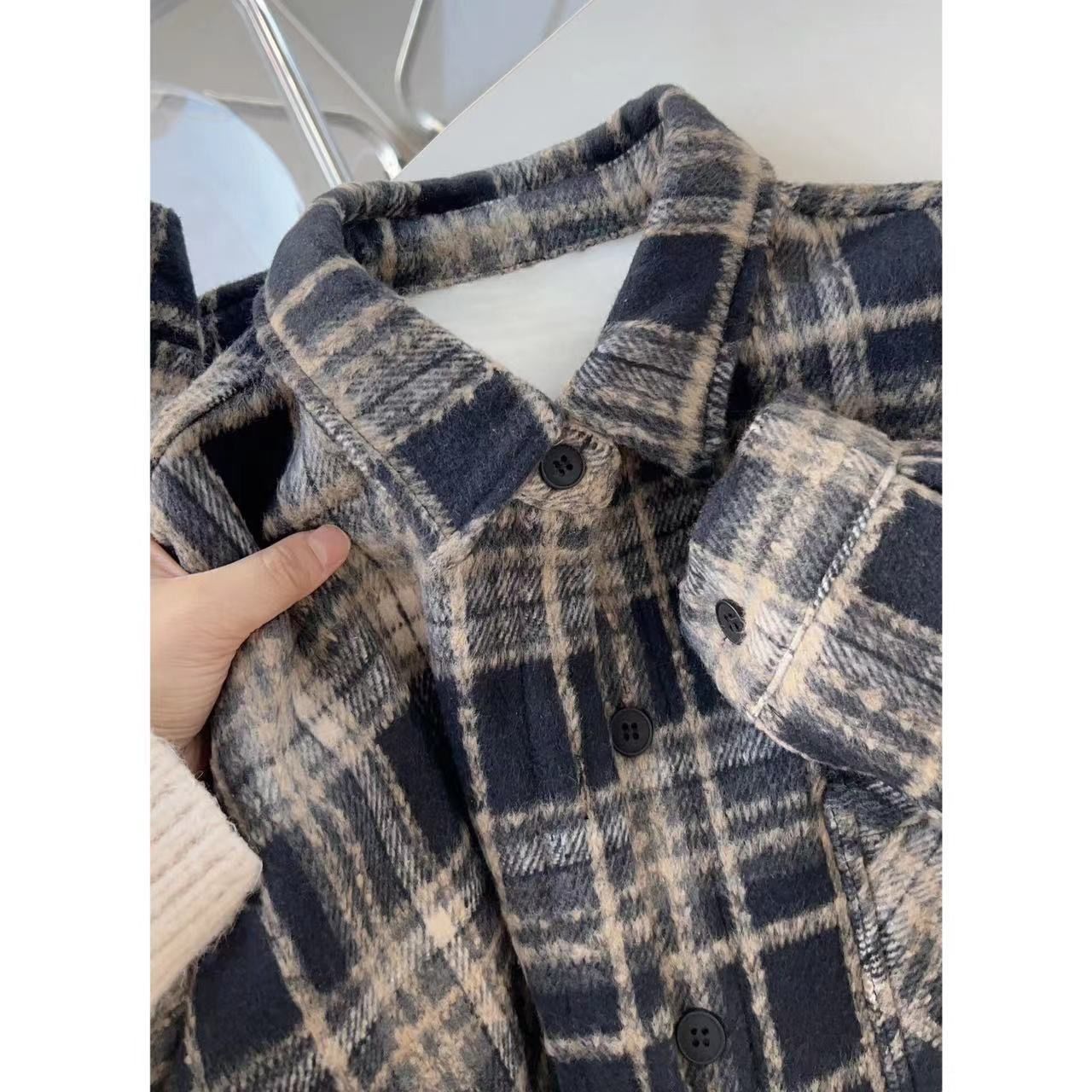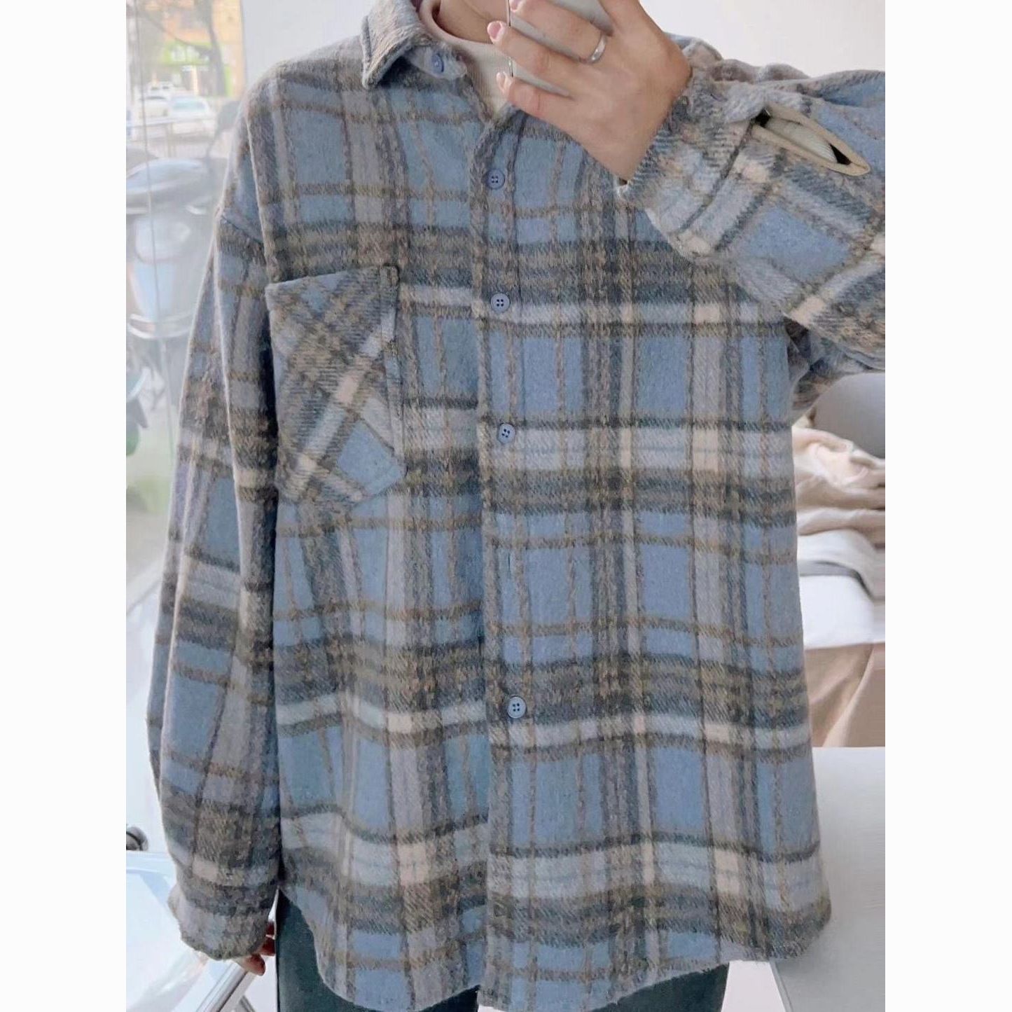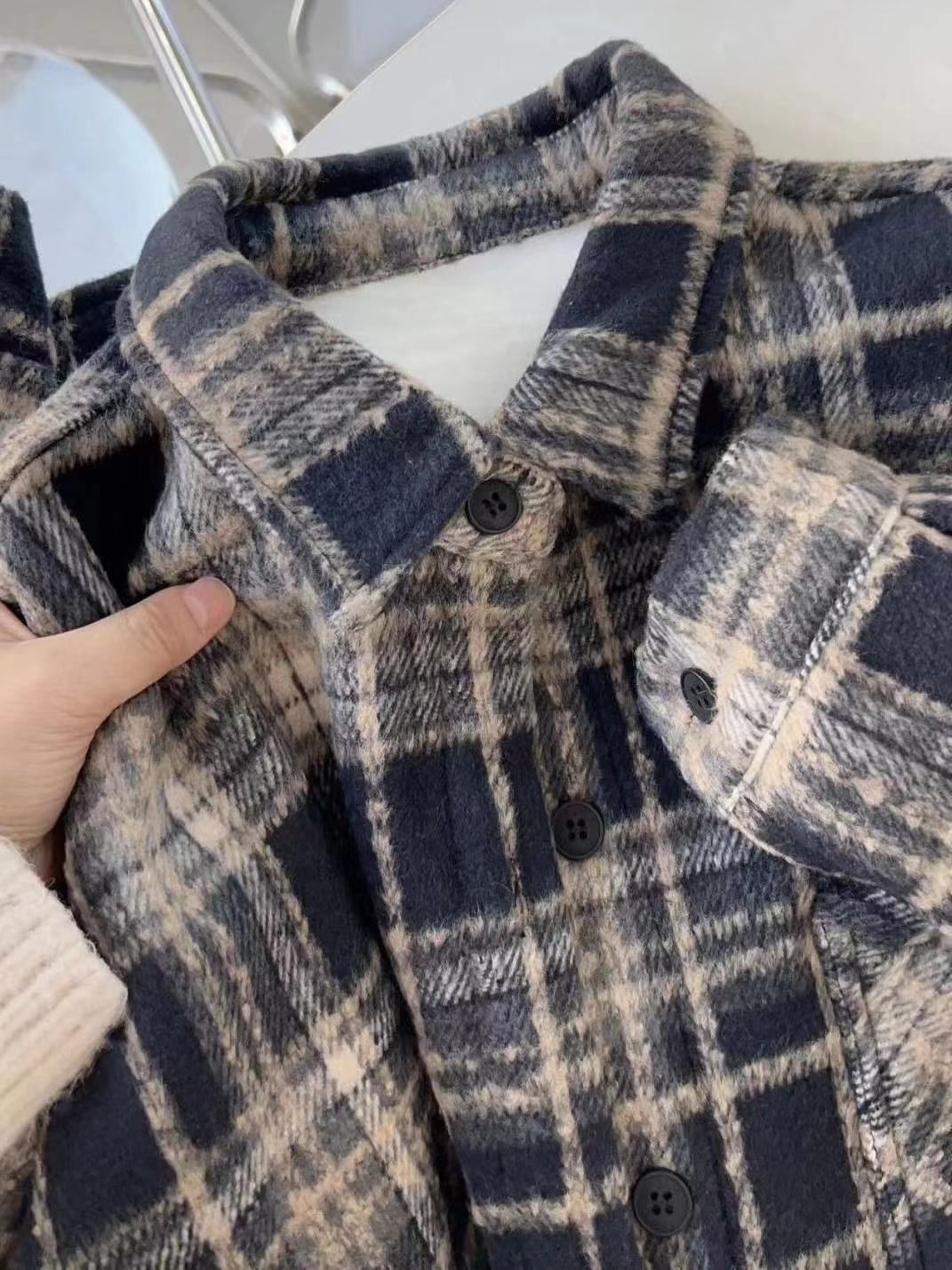 特大码300斤复古慵懒磨毛格子衬衫女春秋宽松休闲情侣款衬衣外穿