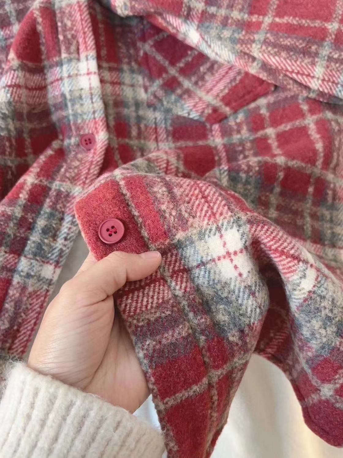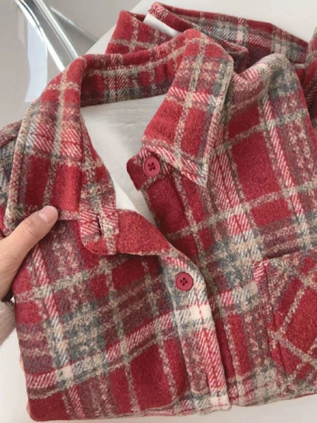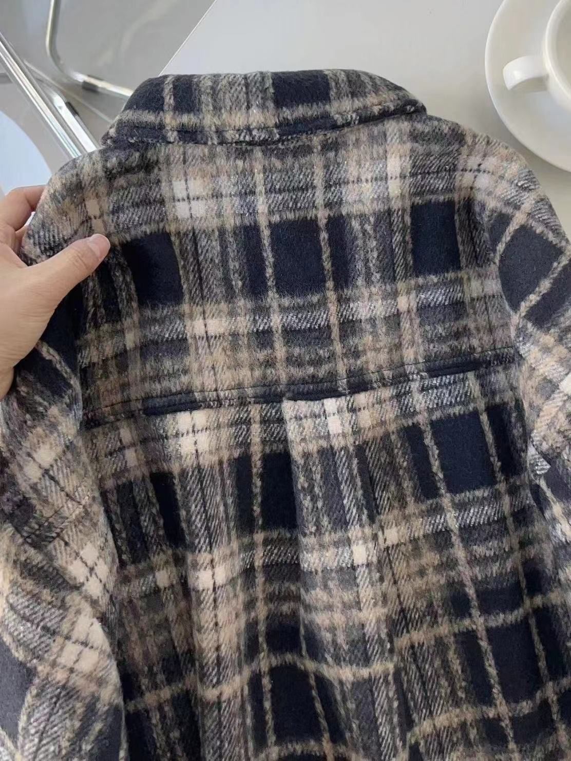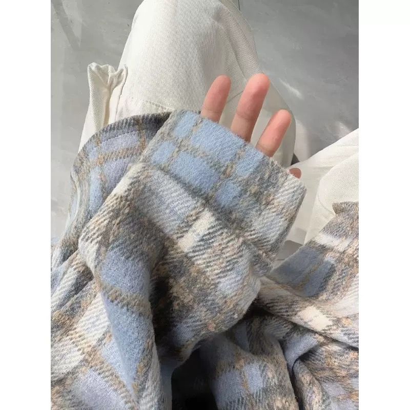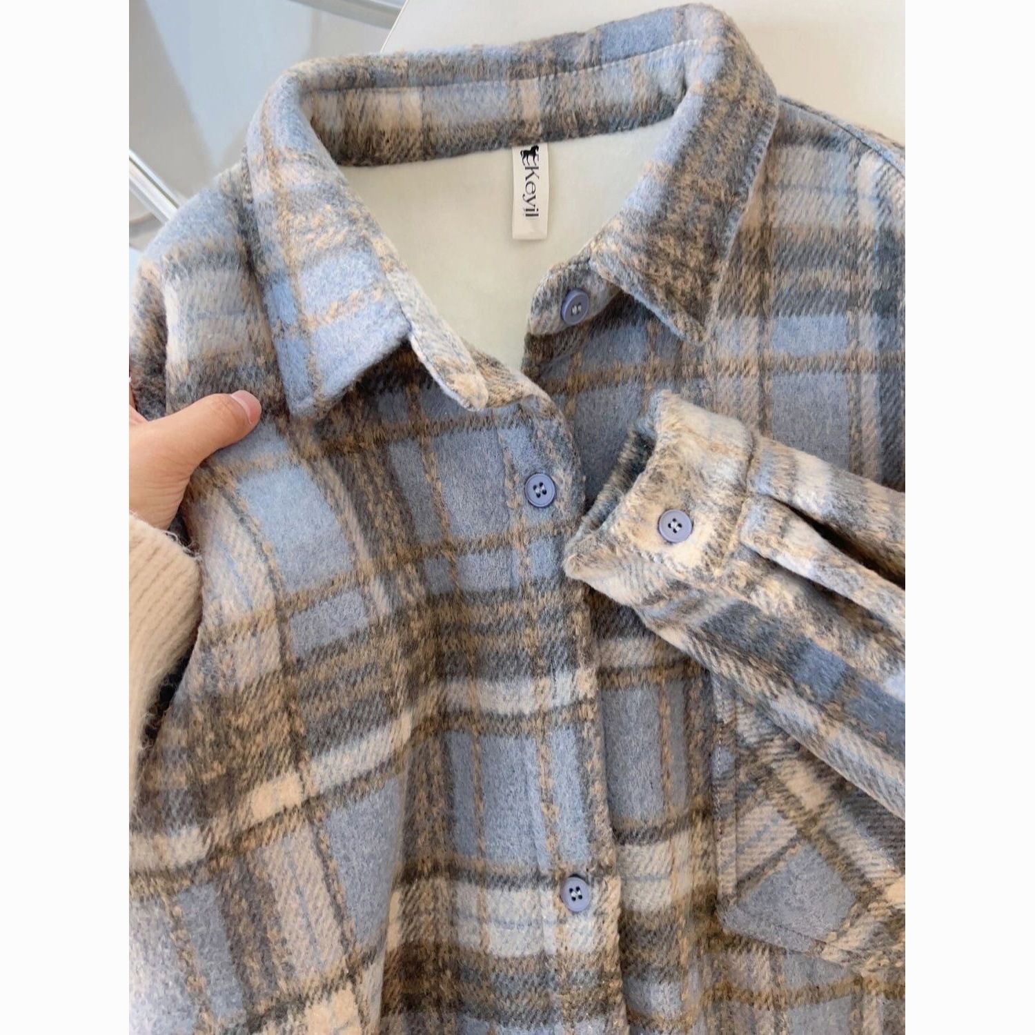 特大码300斤复古慵懒磨毛格子衬衫女春秋宽松休闲情侣款衬衣外穿