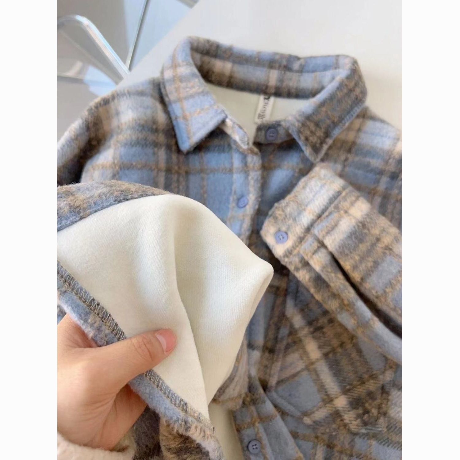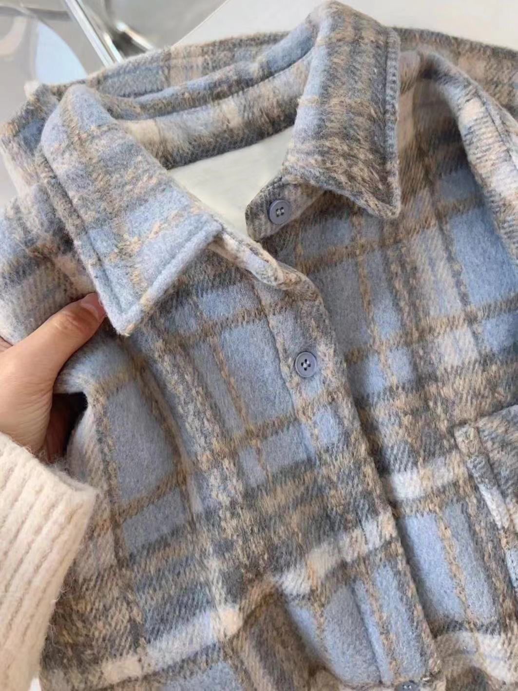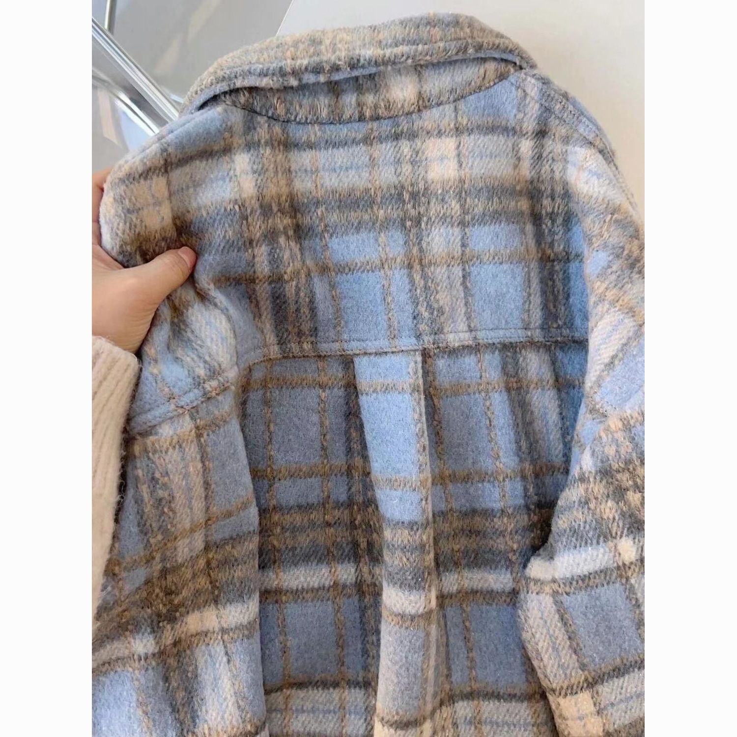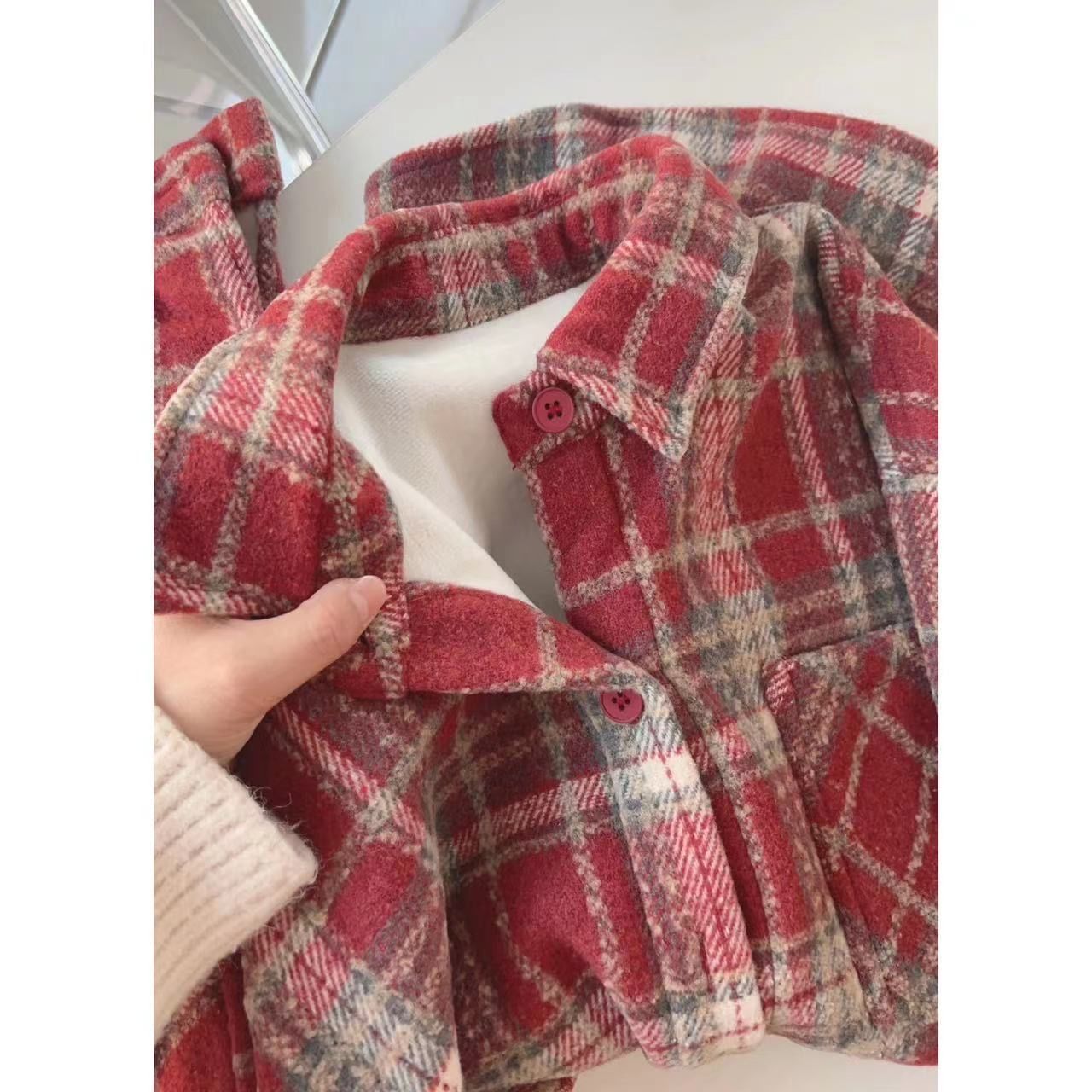 特大码300斤复古慵懒磨毛格子衬衫女春秋宽松休闲情侣款衬衣外穿