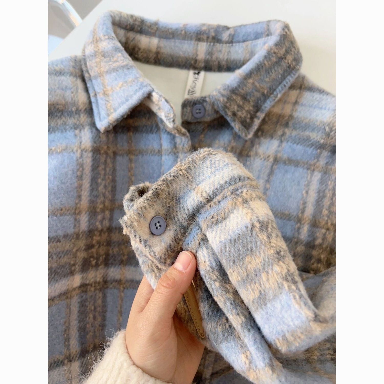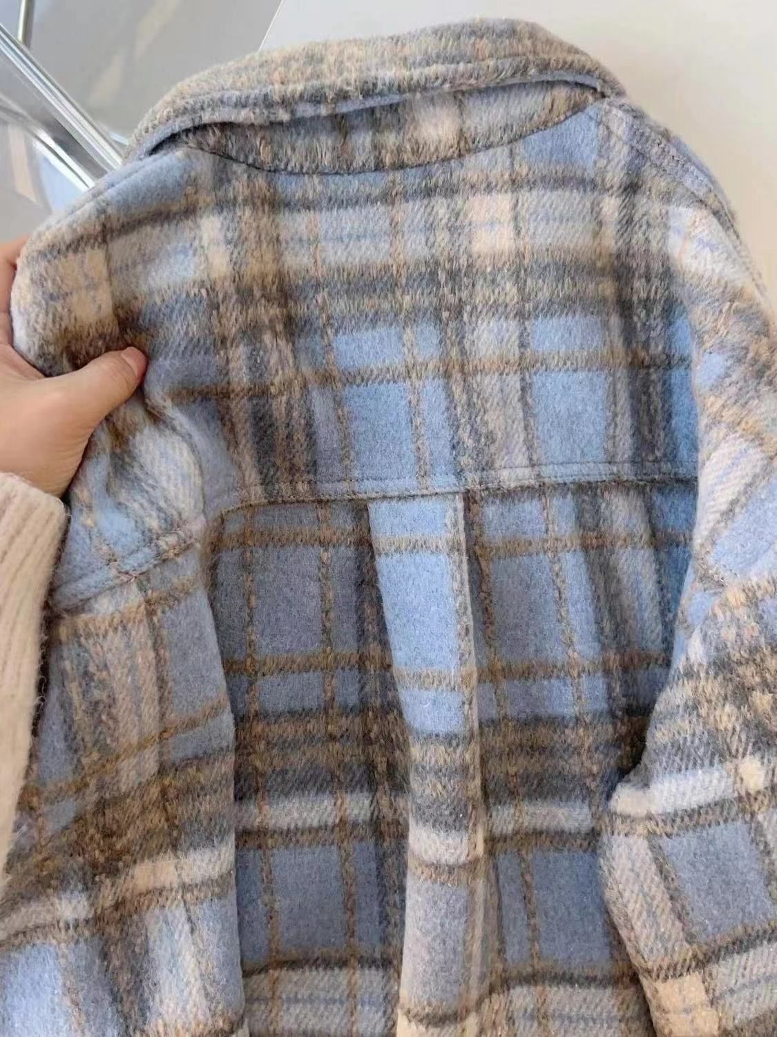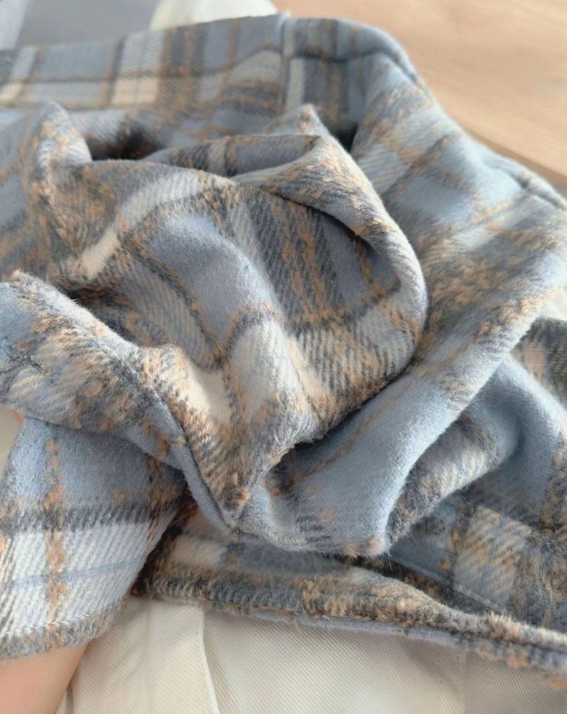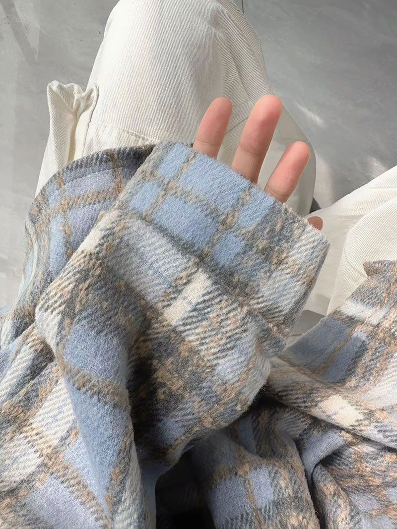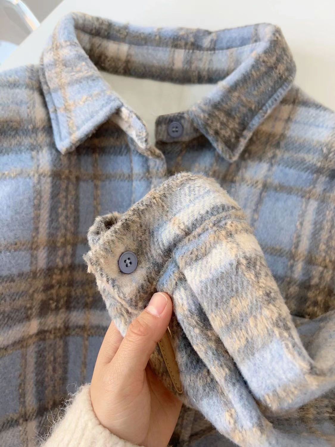 特大码300斤复古慵懒磨毛格子衬衫女春秋宽松休闲情侣款衬衣外穿
