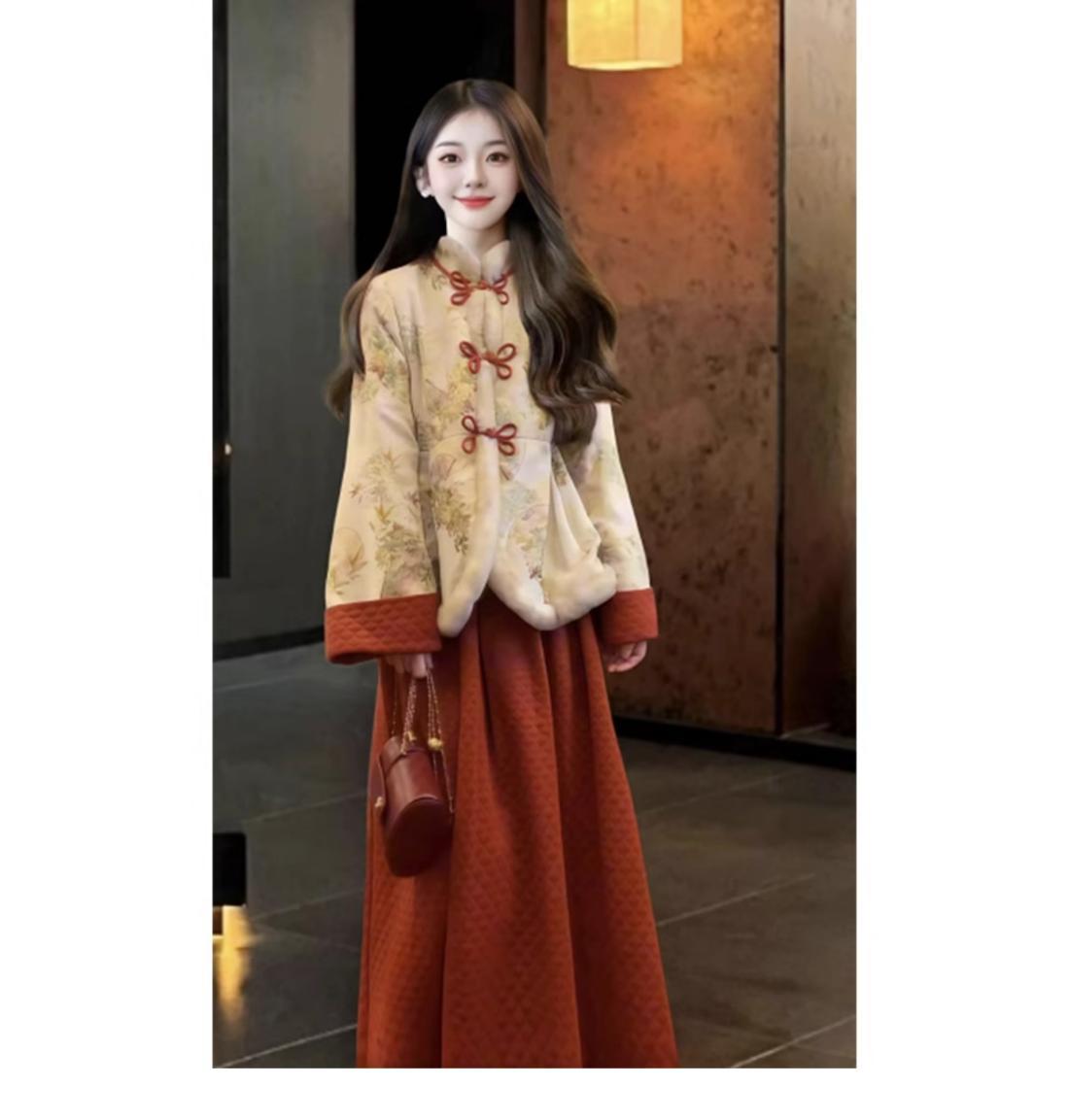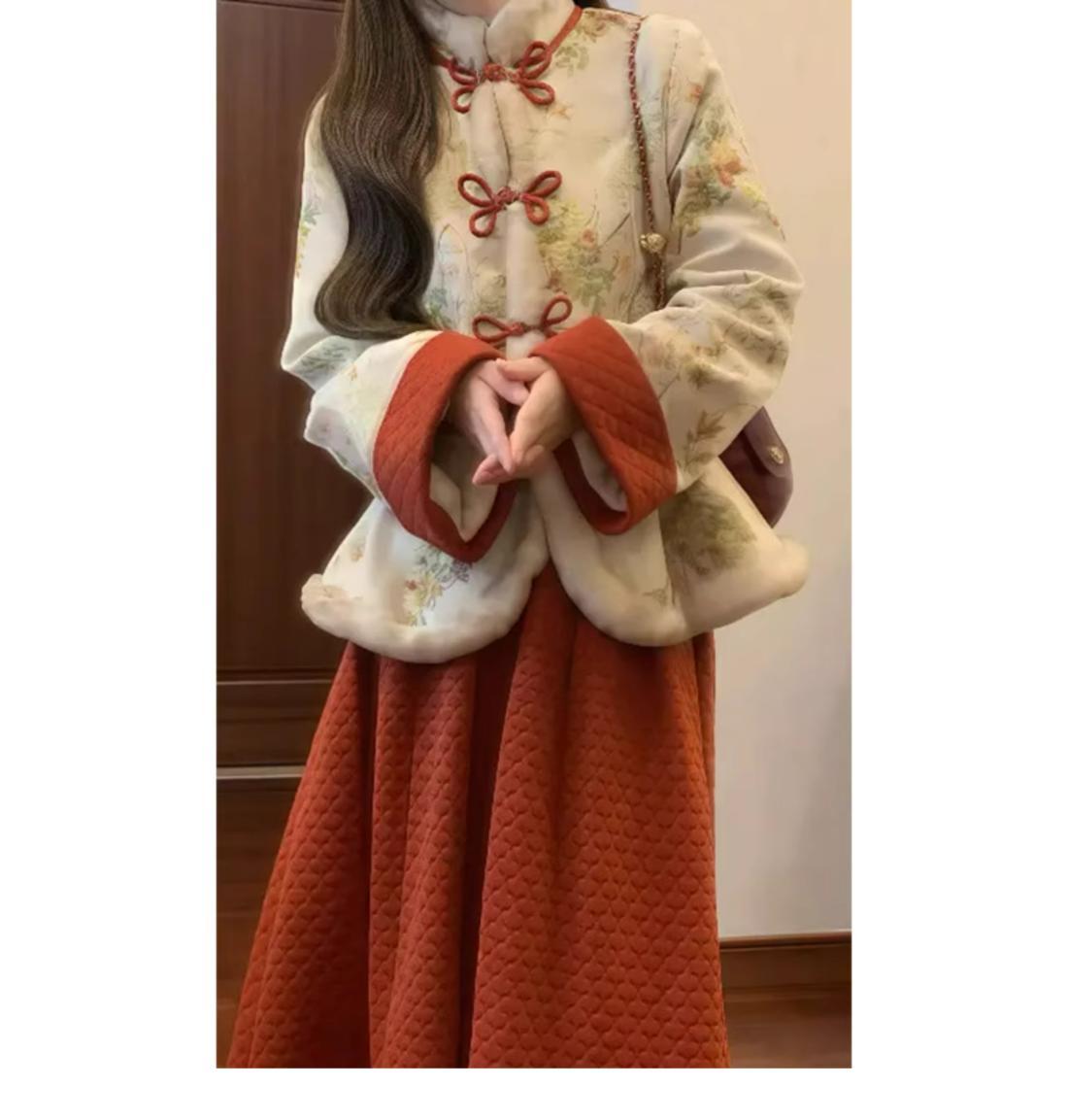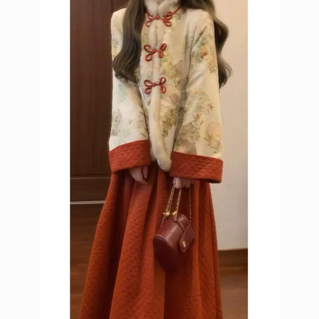 大码胖mm新中式国风套装女2025冬季新款盘扣外套半身裙两件套女装