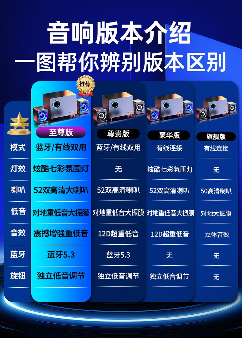 | top configuration: lossless bass enhancement + bluetooth wired + seven colors colorful light effect(顶配:无损重低音增强+蓝牙有线+七色炫彩灯效) | USD $14.9 | 999999 piece available |