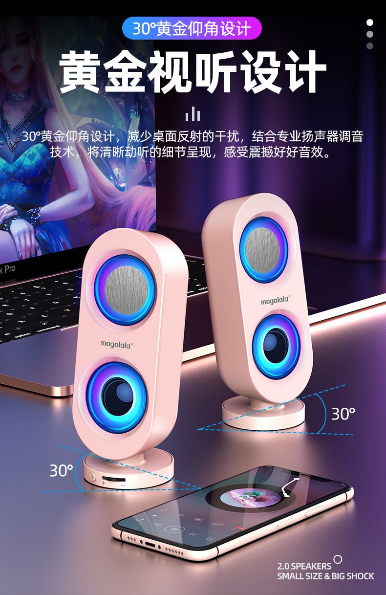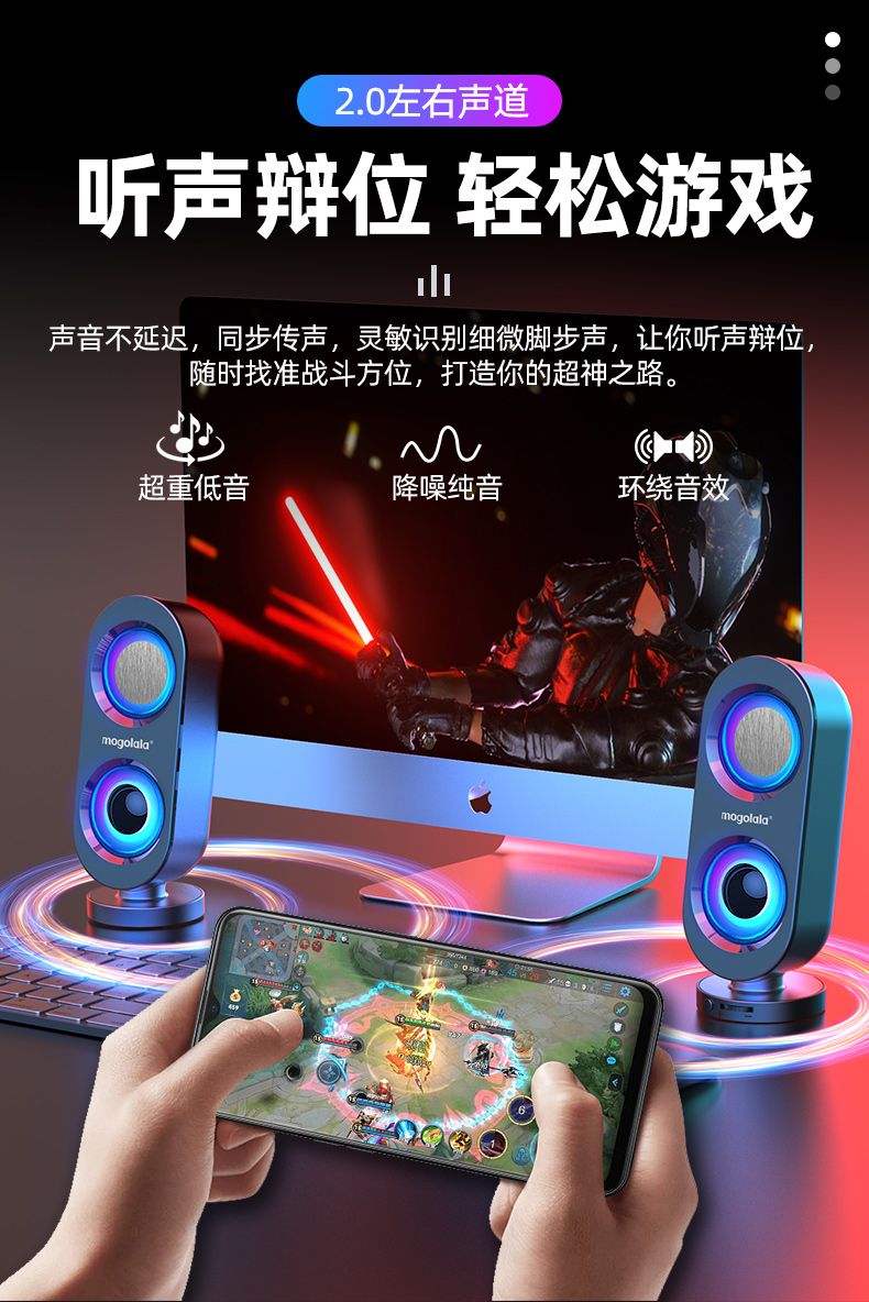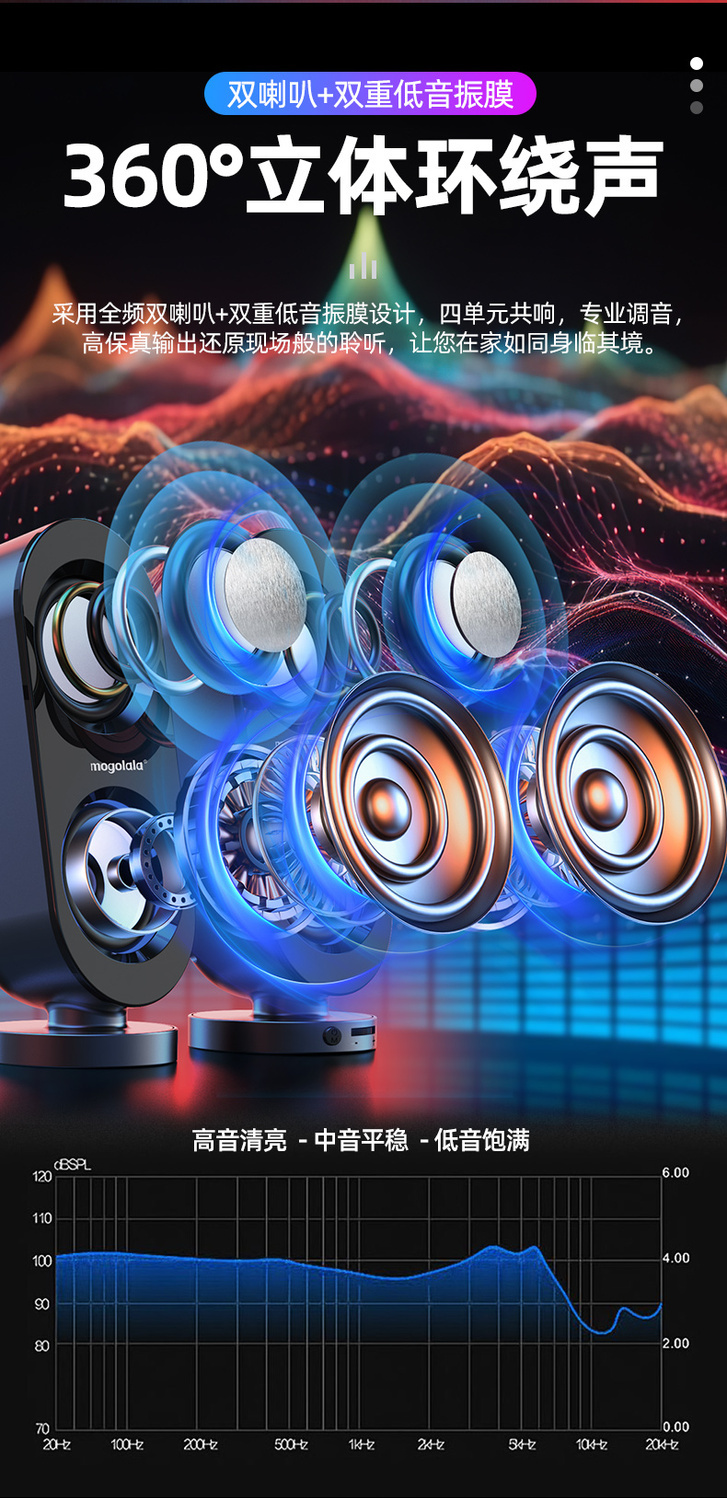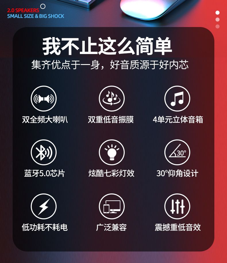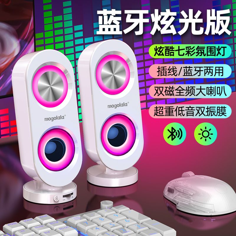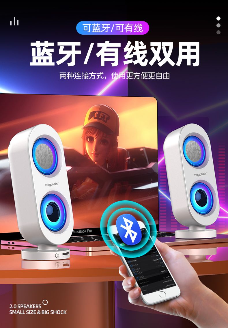 电脑音响台式家用插线蓝牙桌面两用播放器重低音双振膜游戏低音炮
