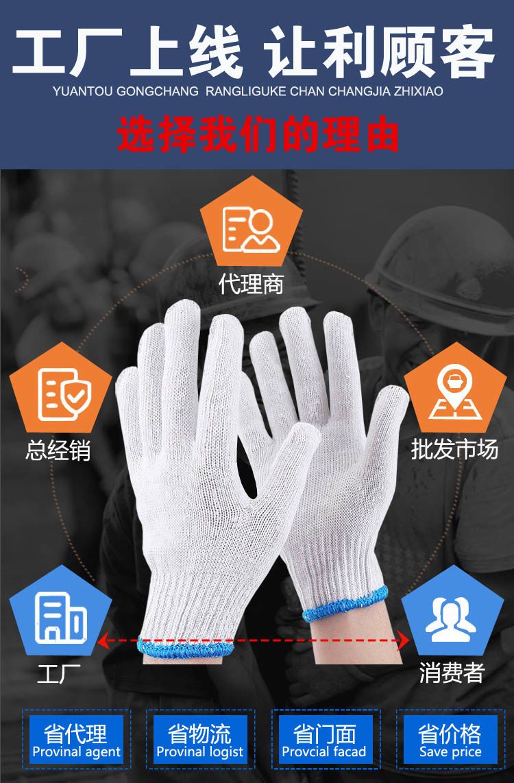 120双劳保手套批发加厚蓝边线手套工地耐用透气棉纱白线手套720双