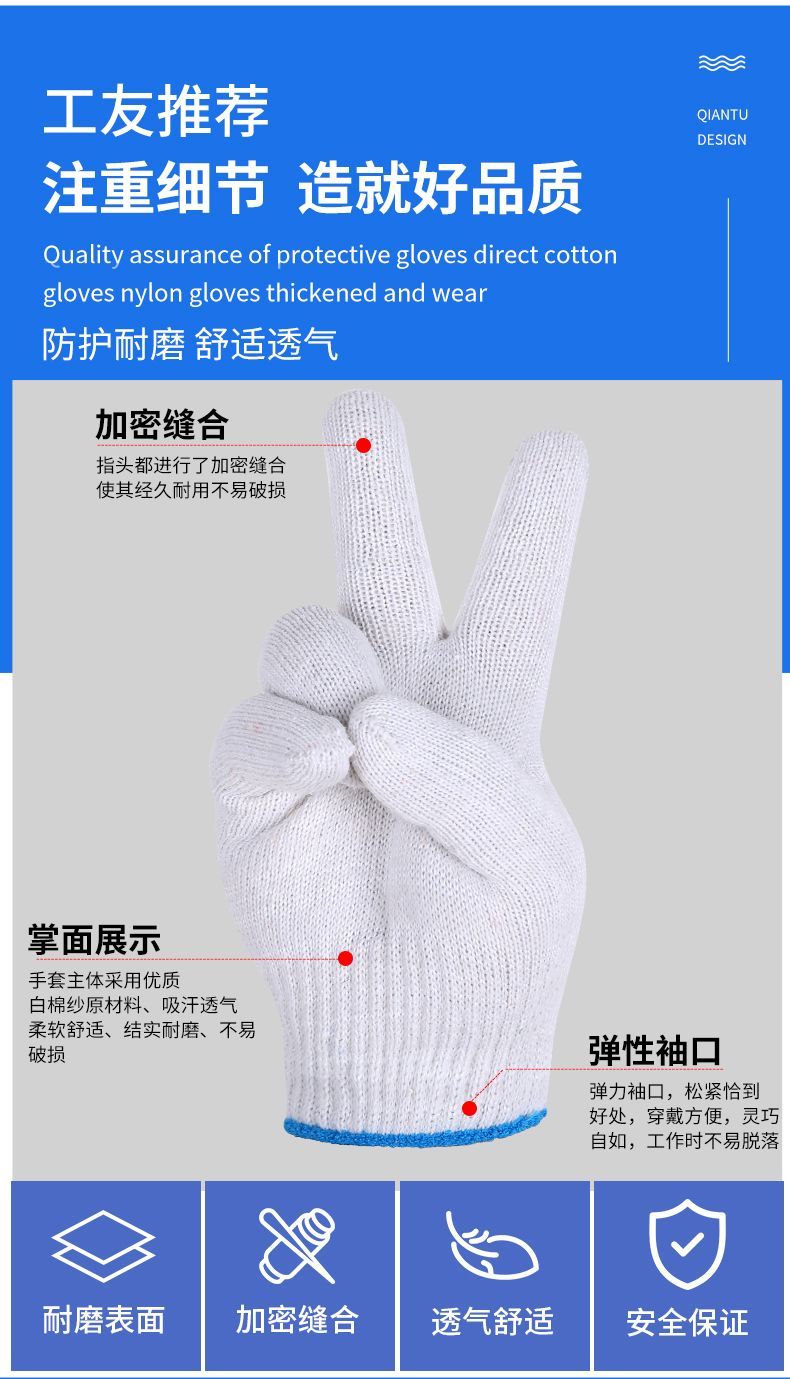 手套批发加厚线手套劳保耐磨工地防滑干活尼龙耐用工作男女棉纱