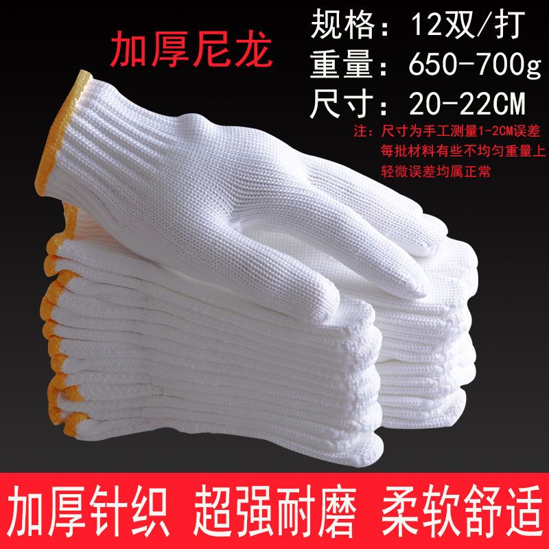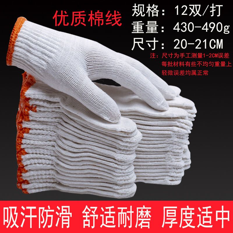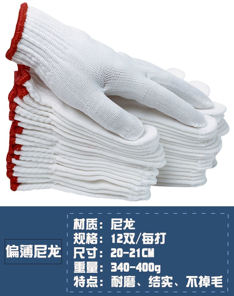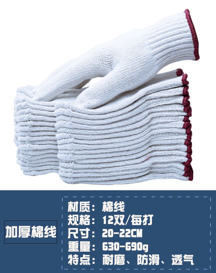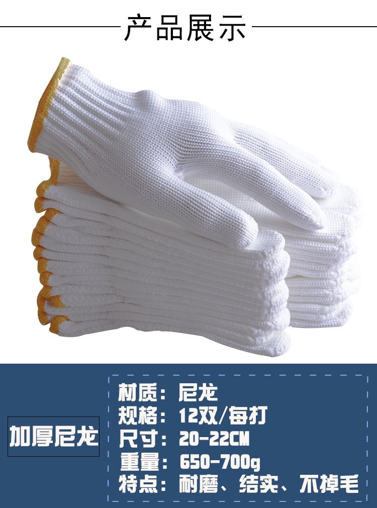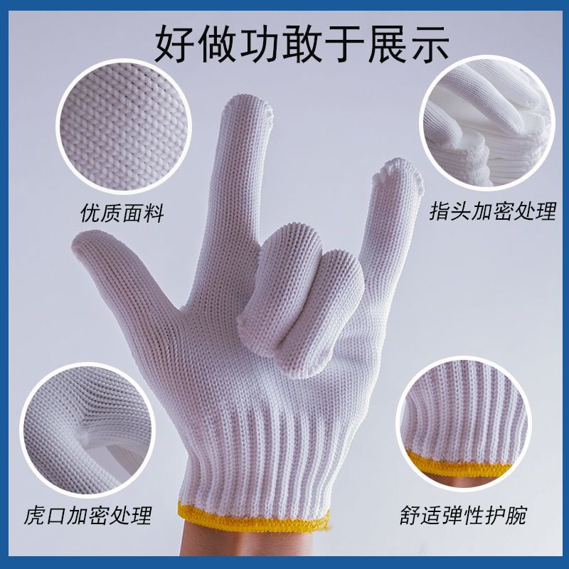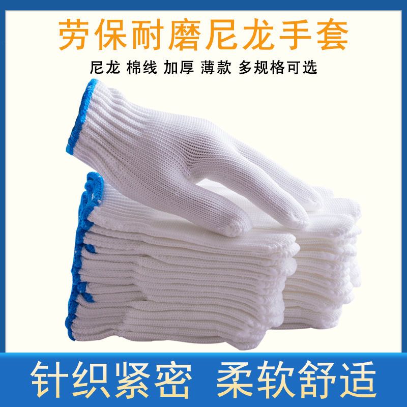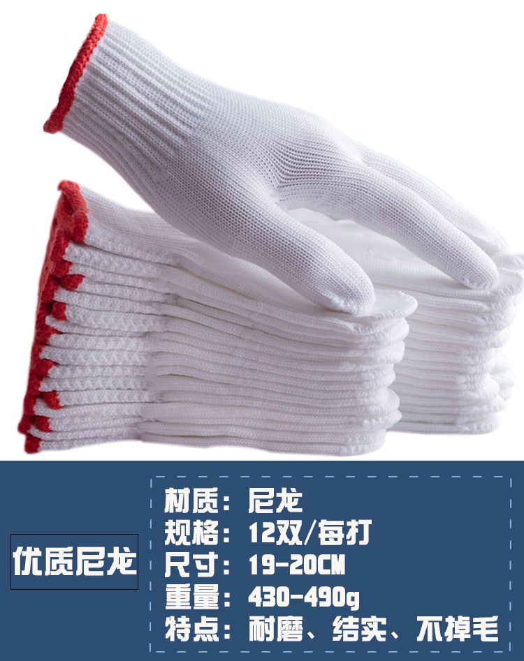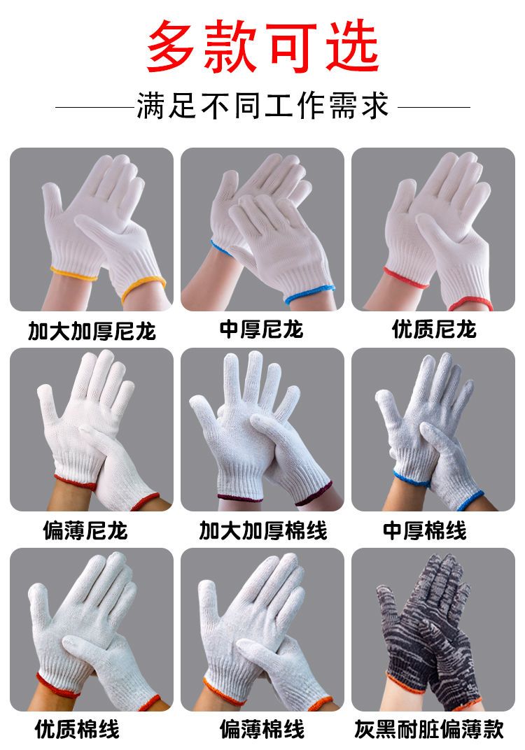 棉线手套劳保耐磨纱手套批发防滑加厚工地白尼龙男女干活工作耐用