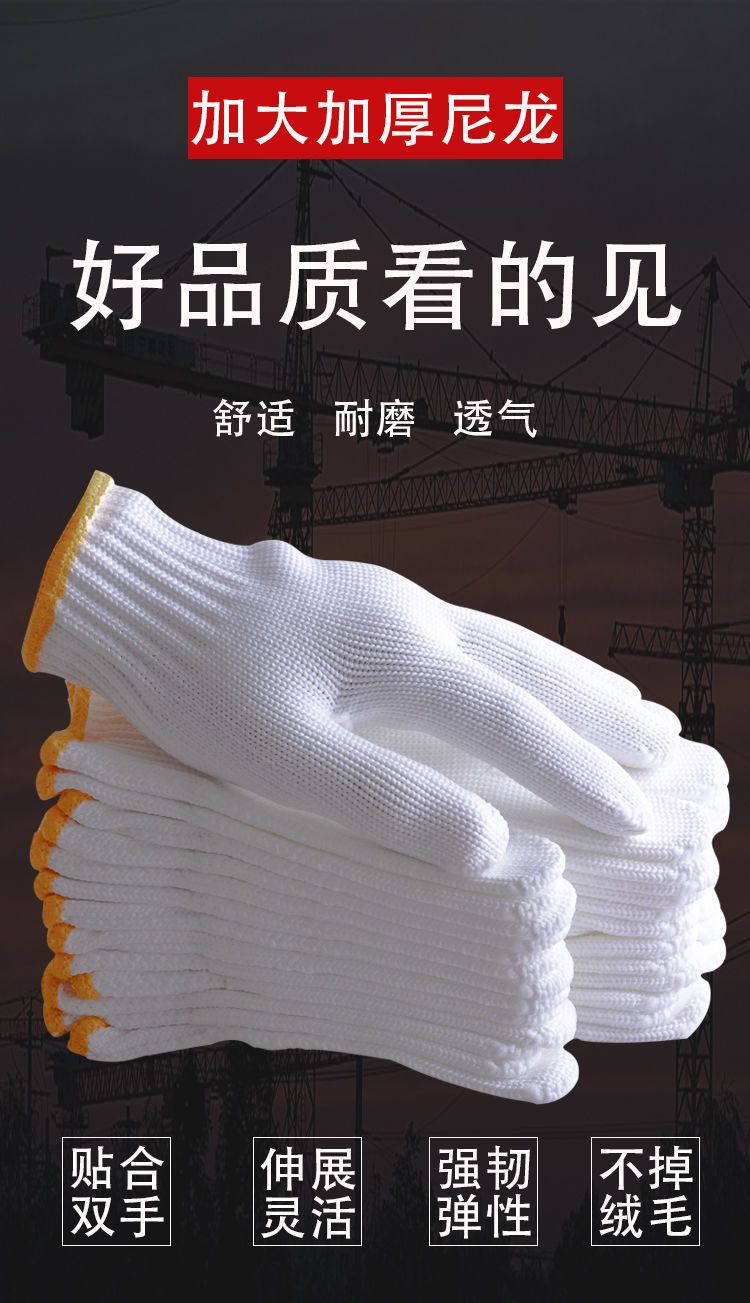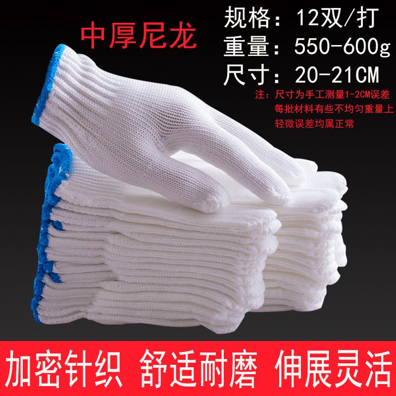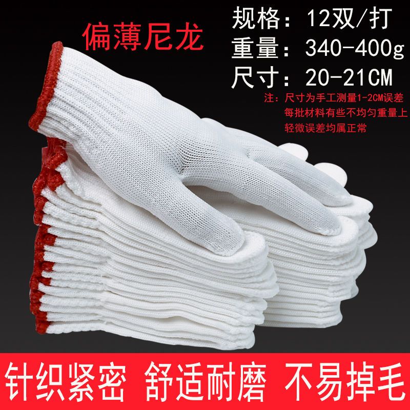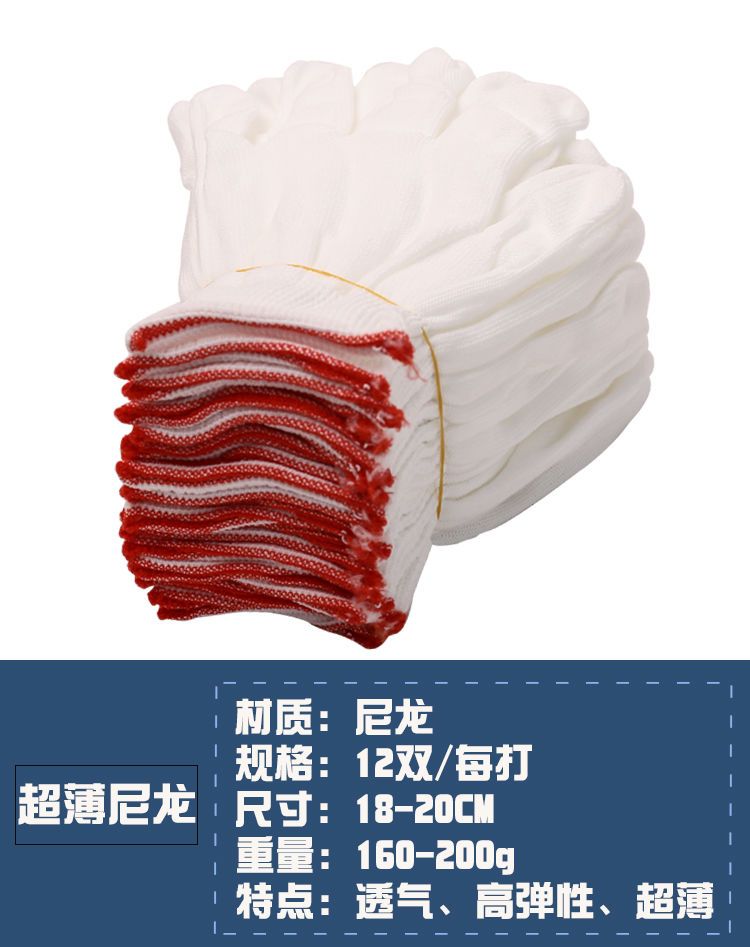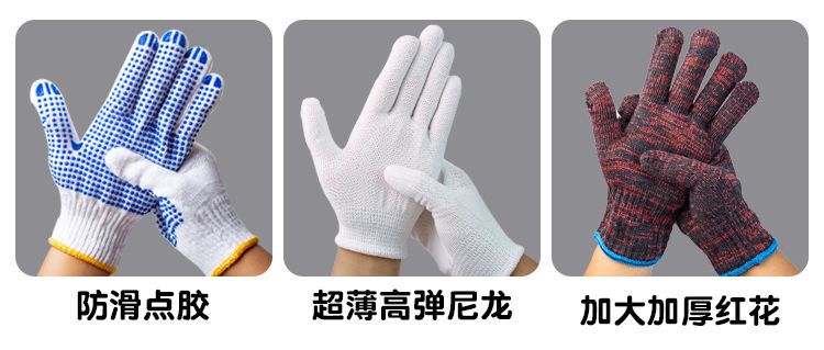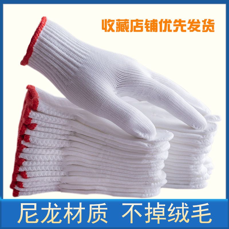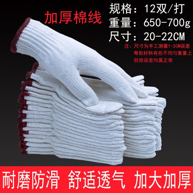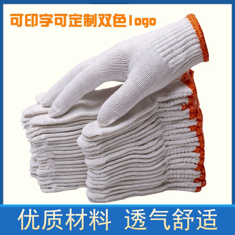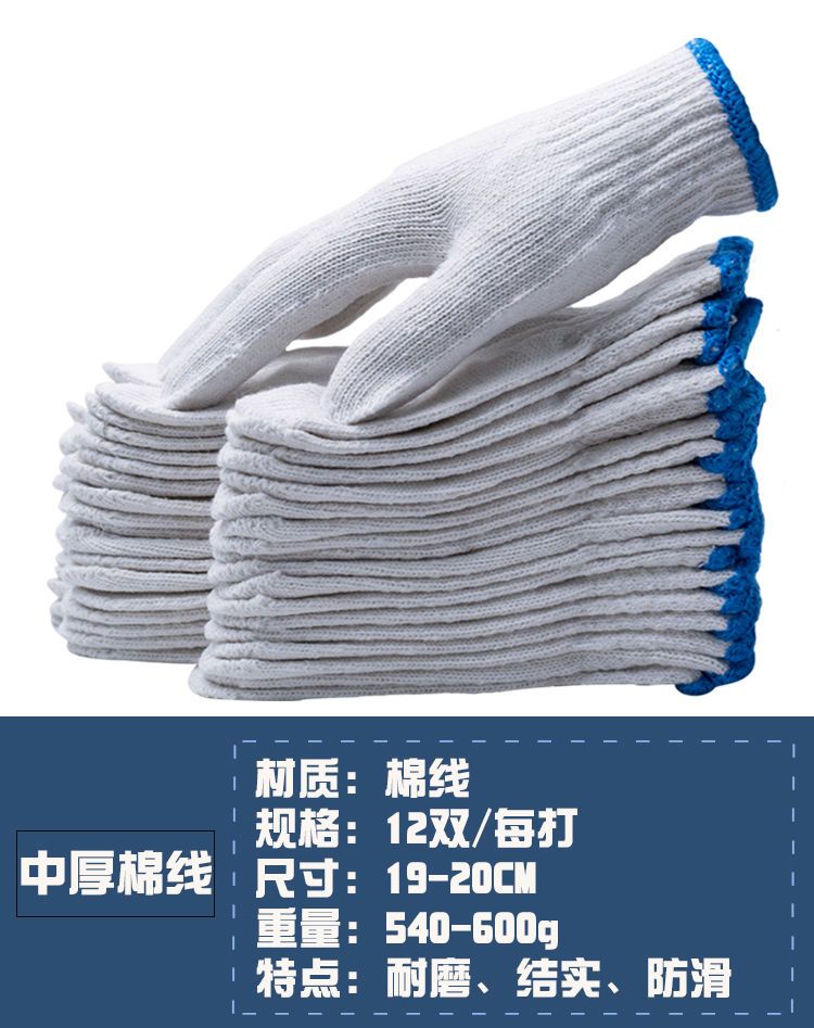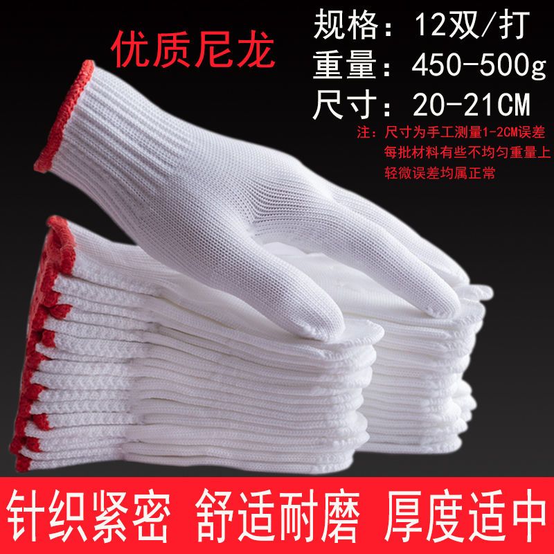 棉线手套劳保耐磨纱手套批发防滑加厚工地白尼龙男女干活工作耐用