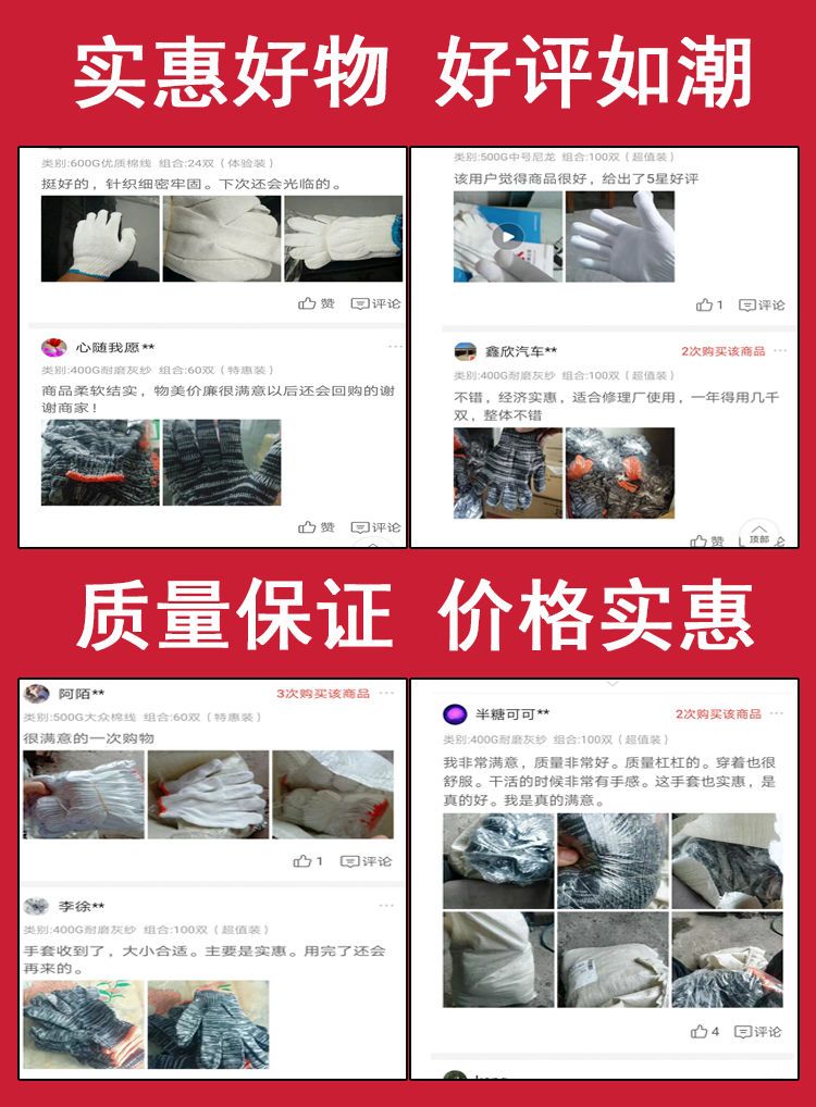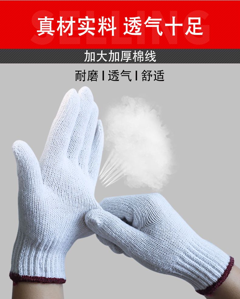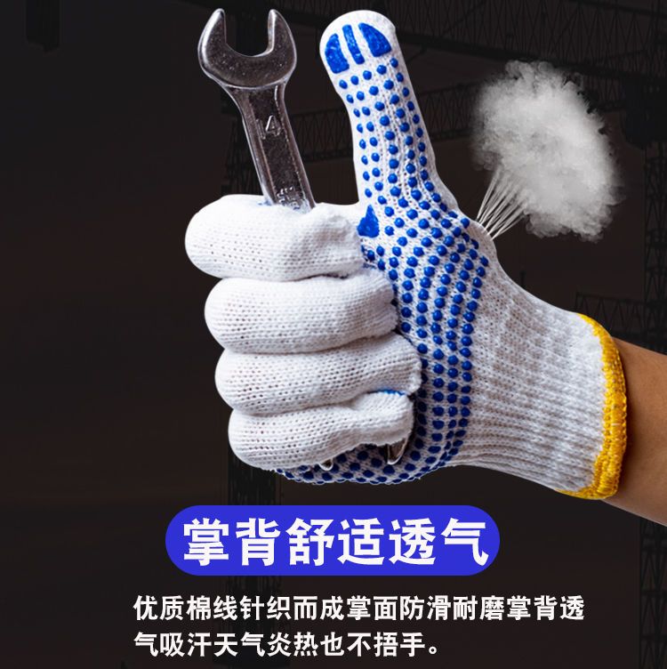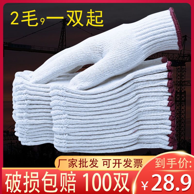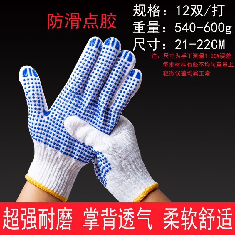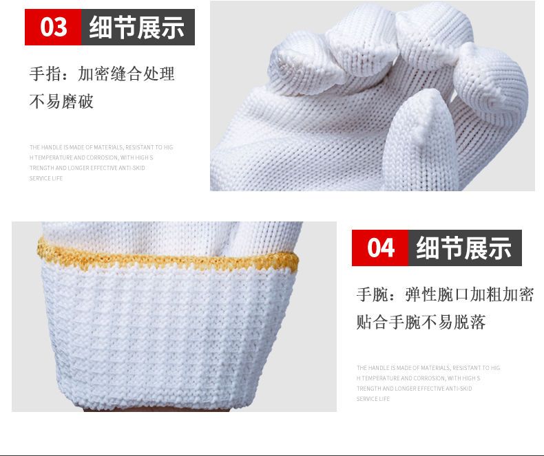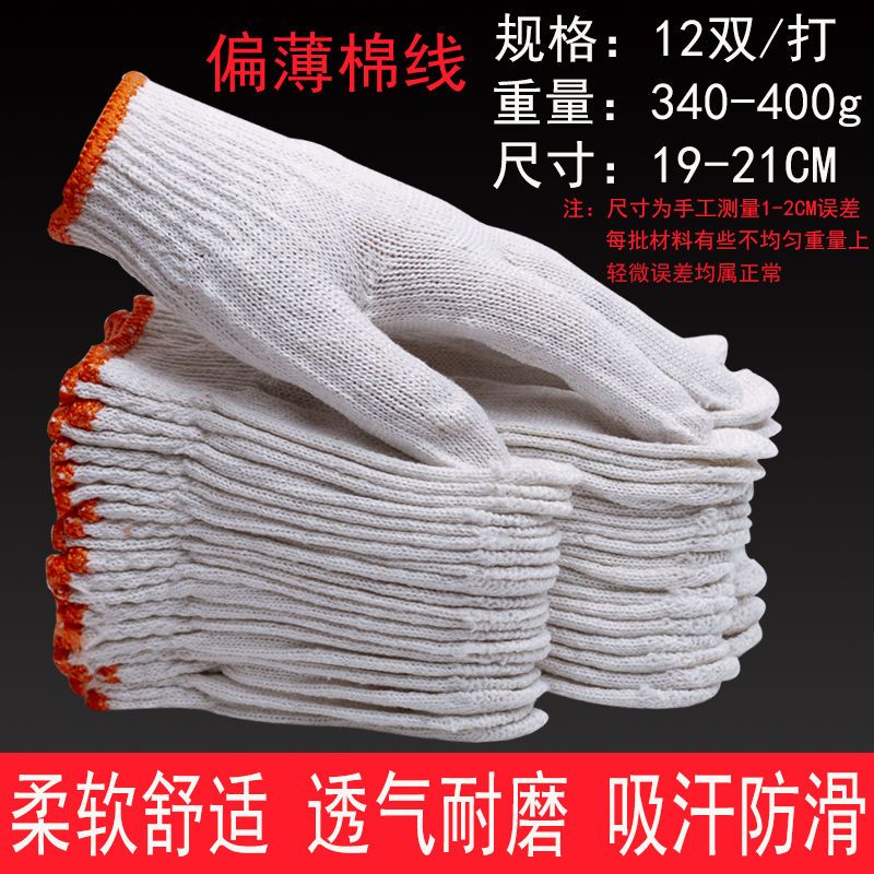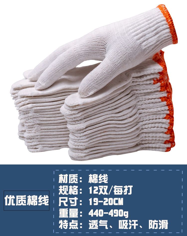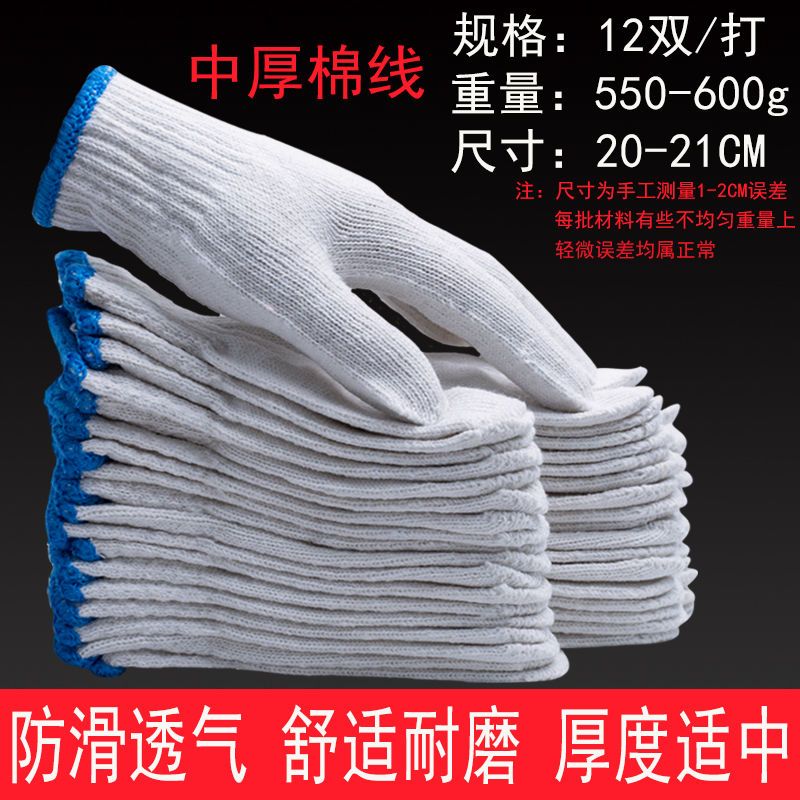棉线手套劳保耐磨纱手套批发防滑加厚工地白尼龙男女干活工作耐用