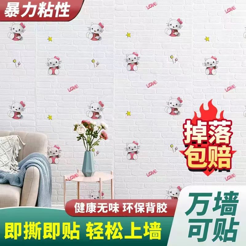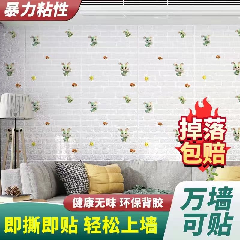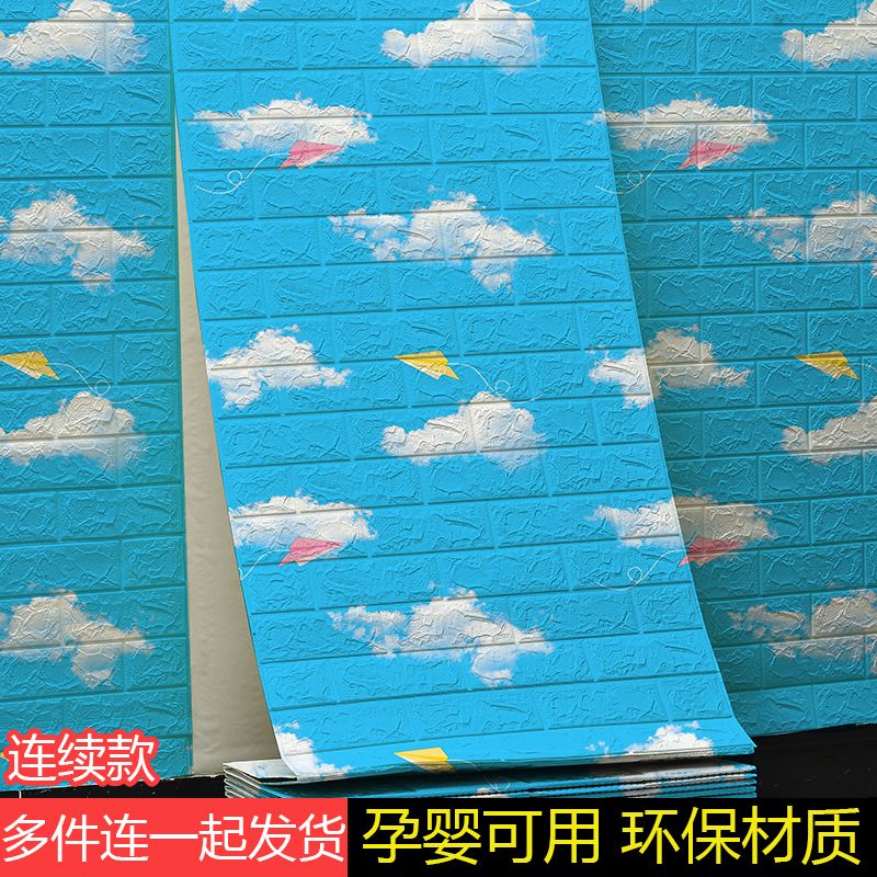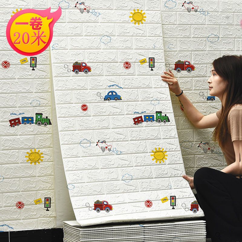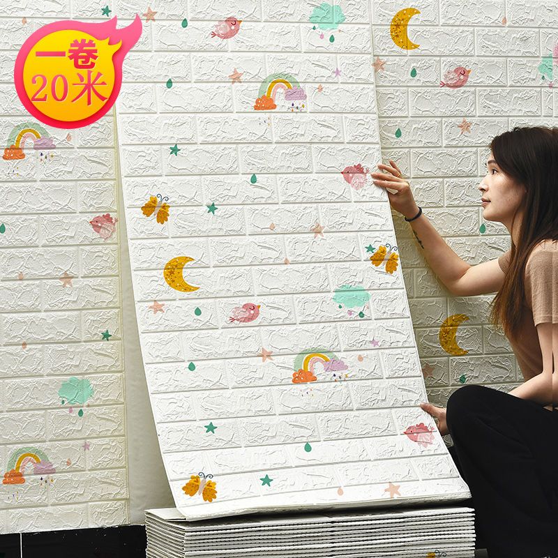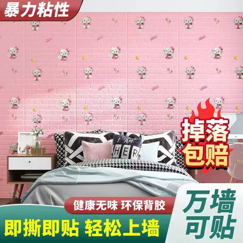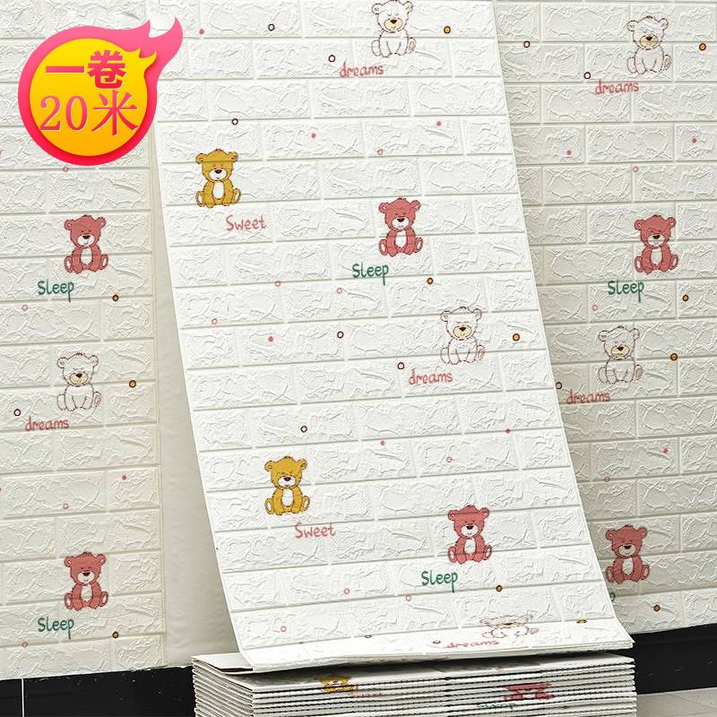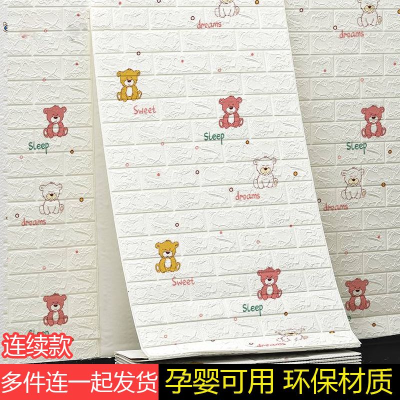 墙纸自粘卧室3d立体墙贴温馨卡通装饰儿童房防水防撞壁纸墙裙贴纸