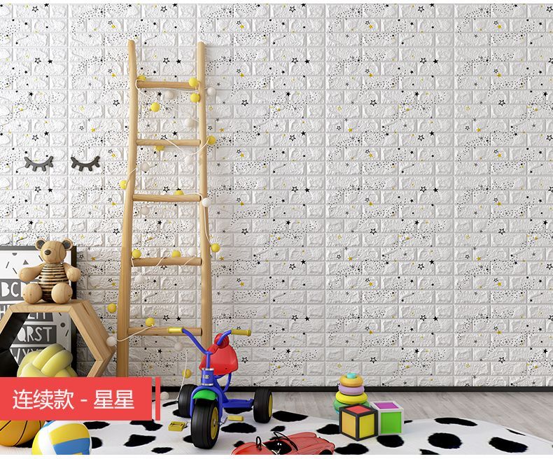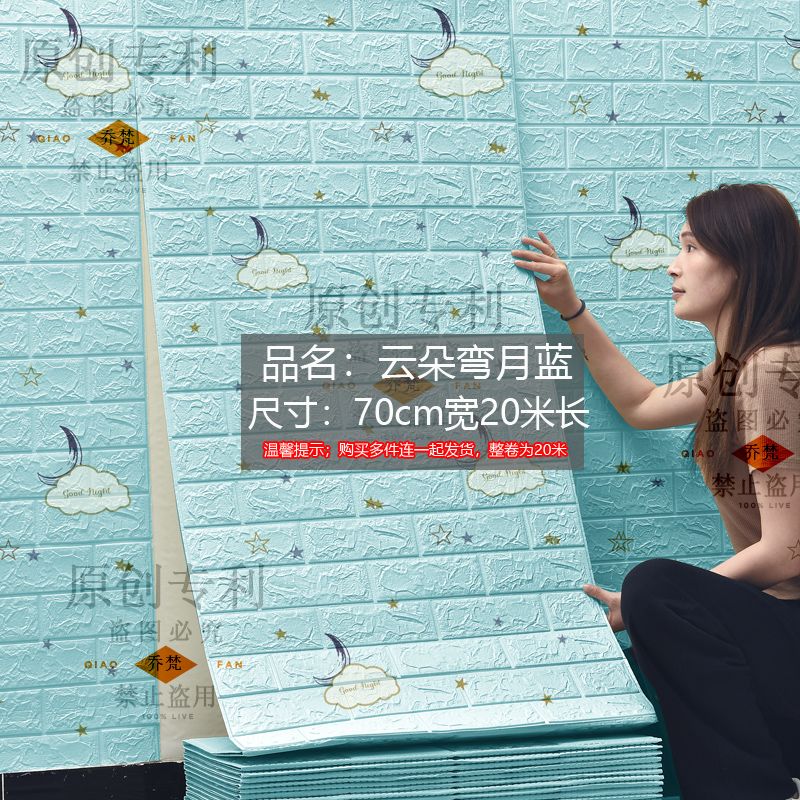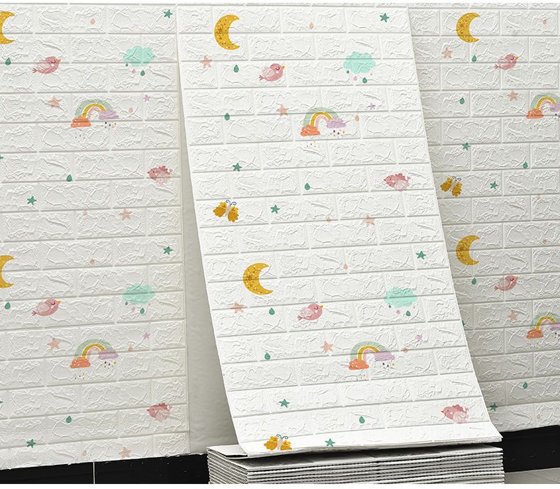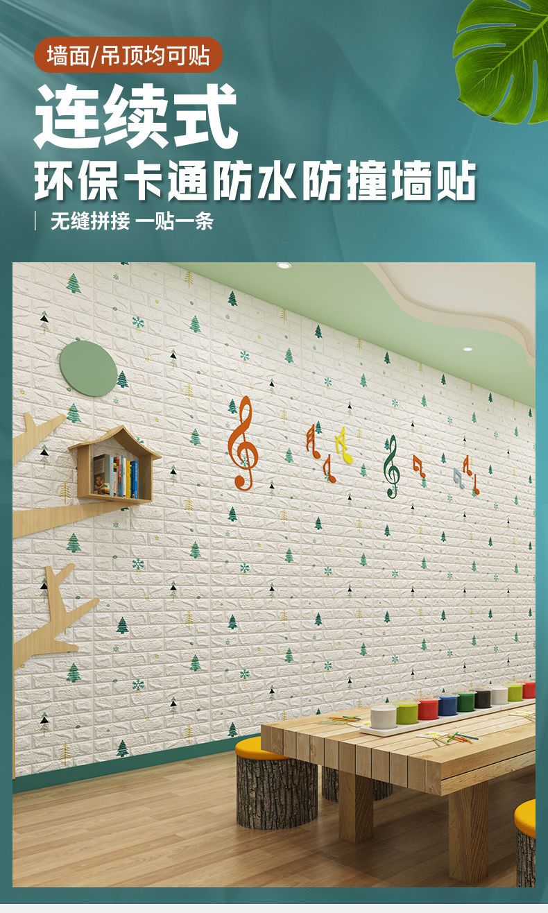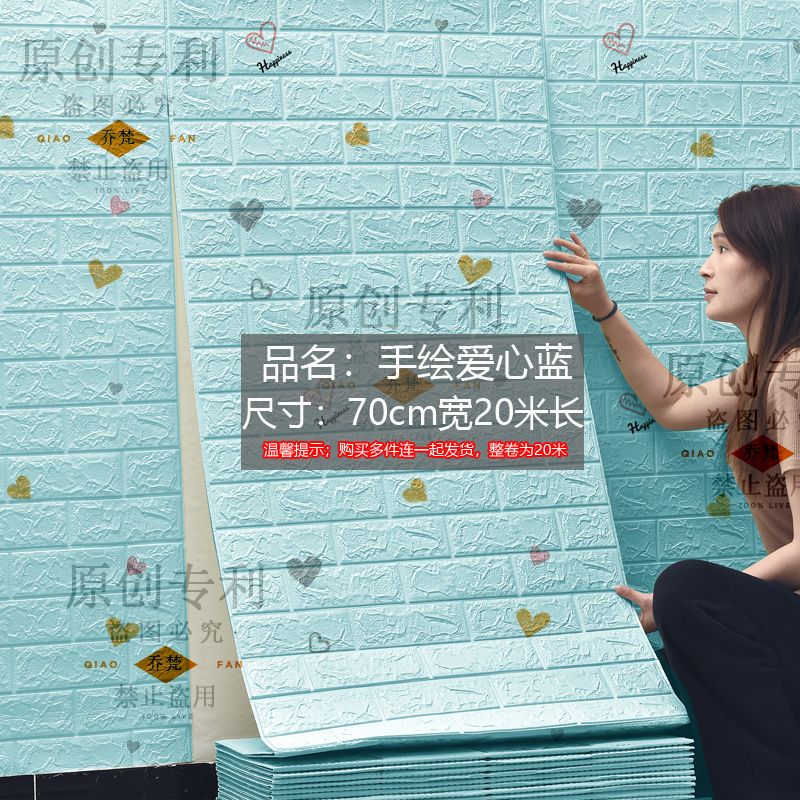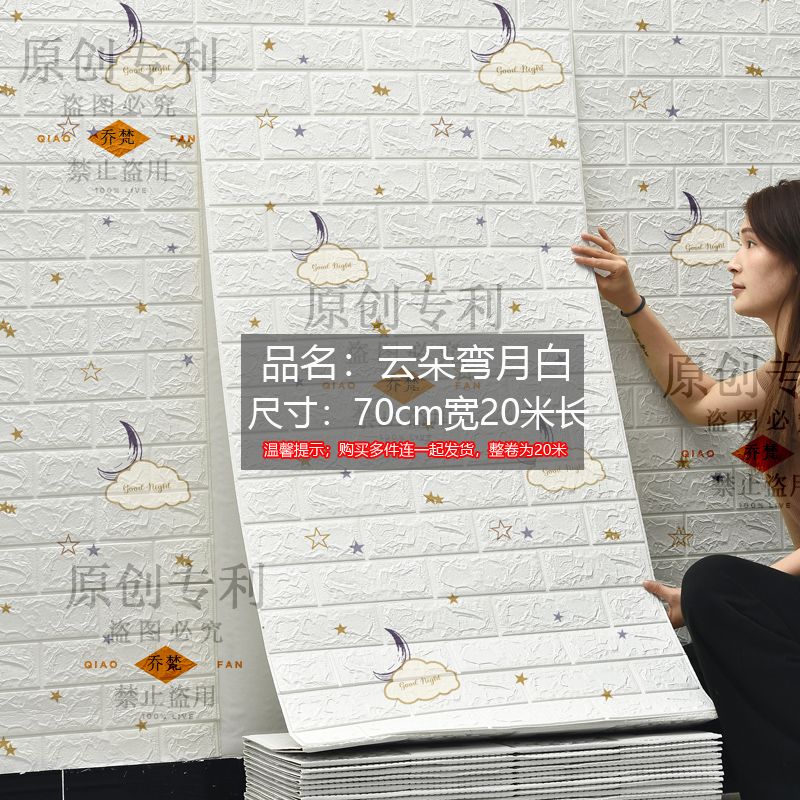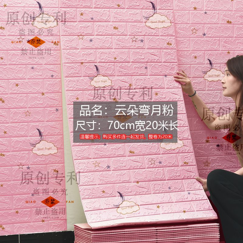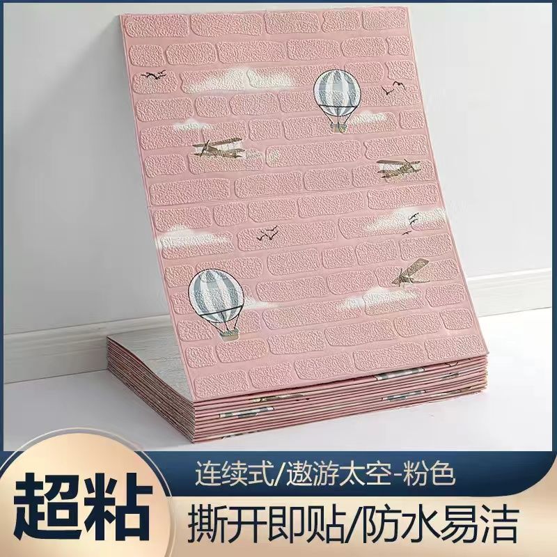 墙纸自粘卧室3d立体墙贴温馨卡通装饰儿童房防水防撞壁纸墙裙贴纸