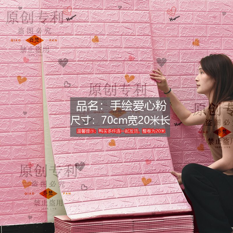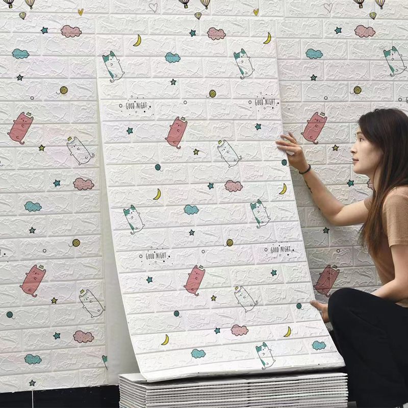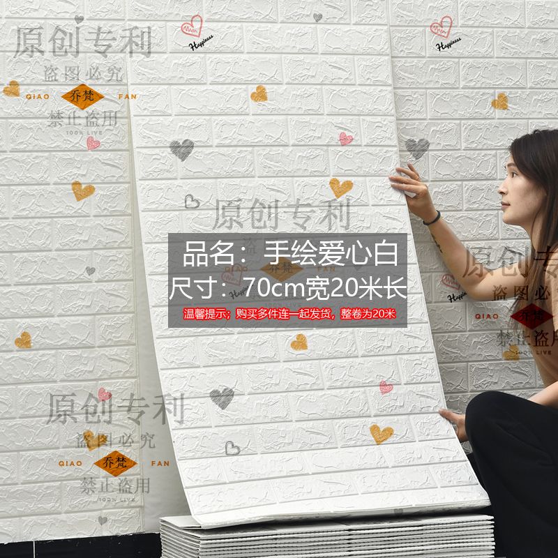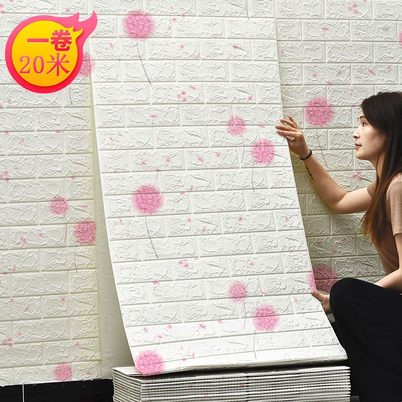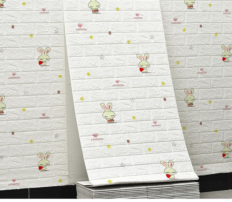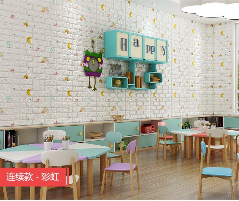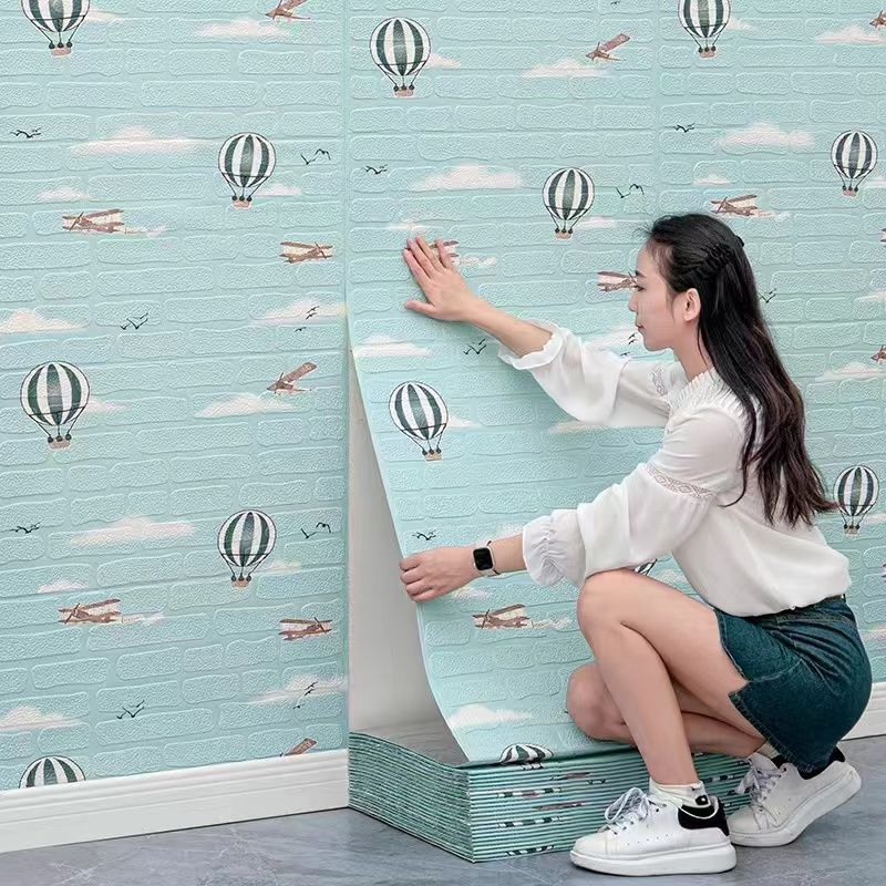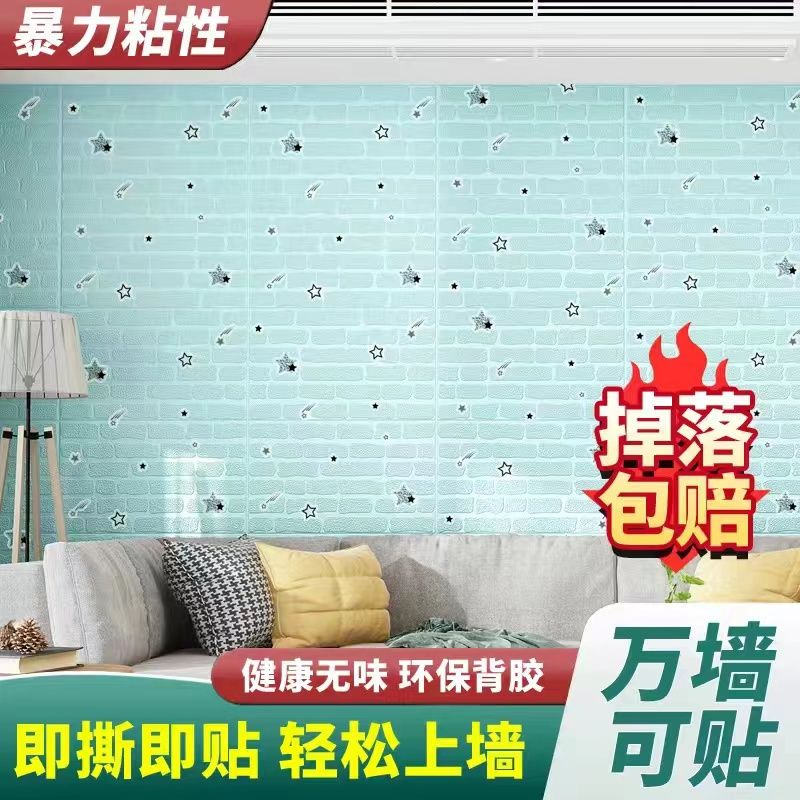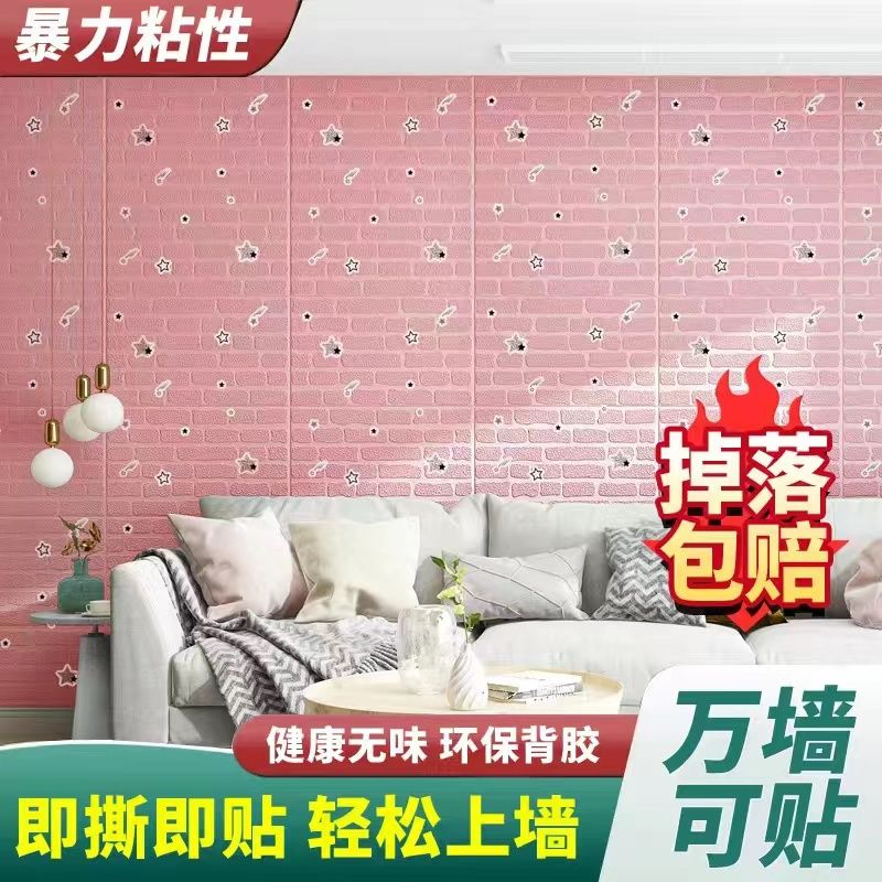 墙纸自粘卧室3d立体墙贴温馨卡通装饰儿童房防水防撞壁纸墙裙贴纸