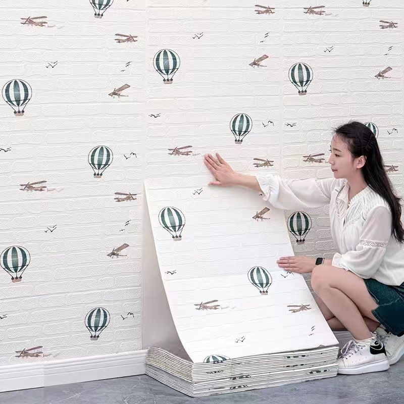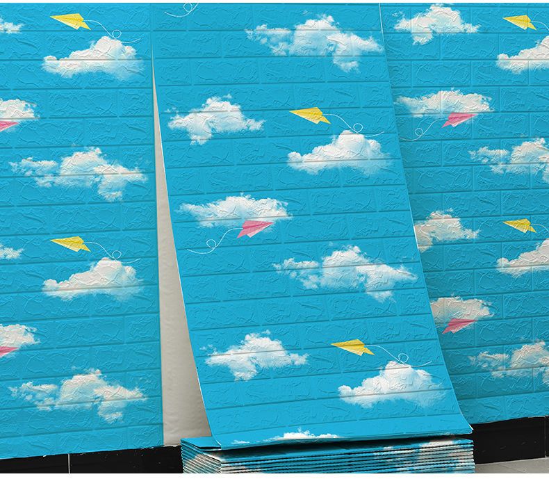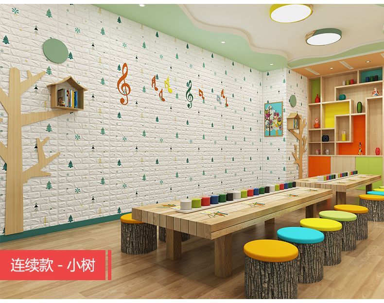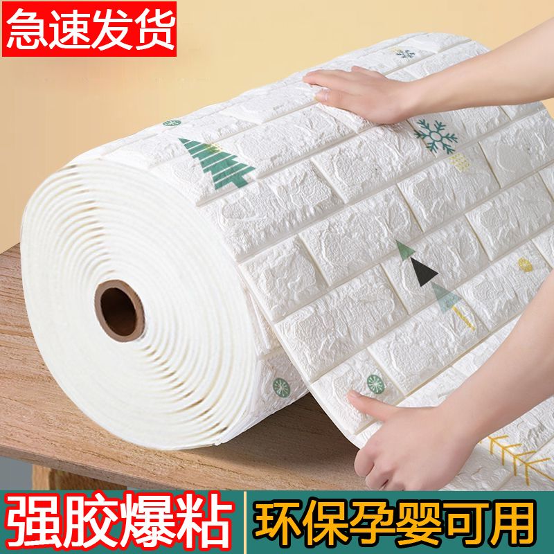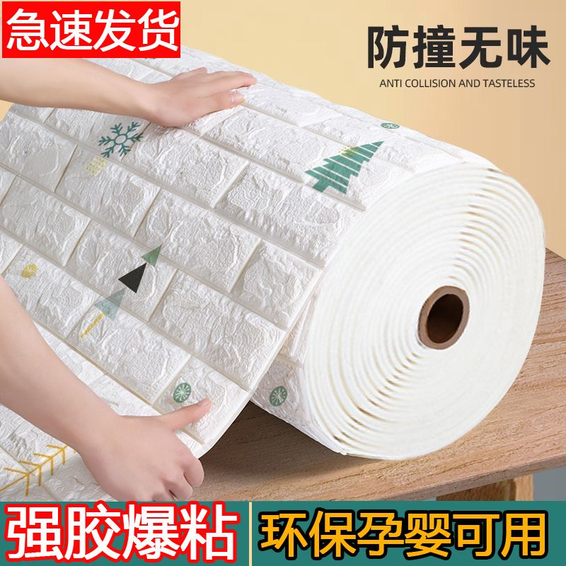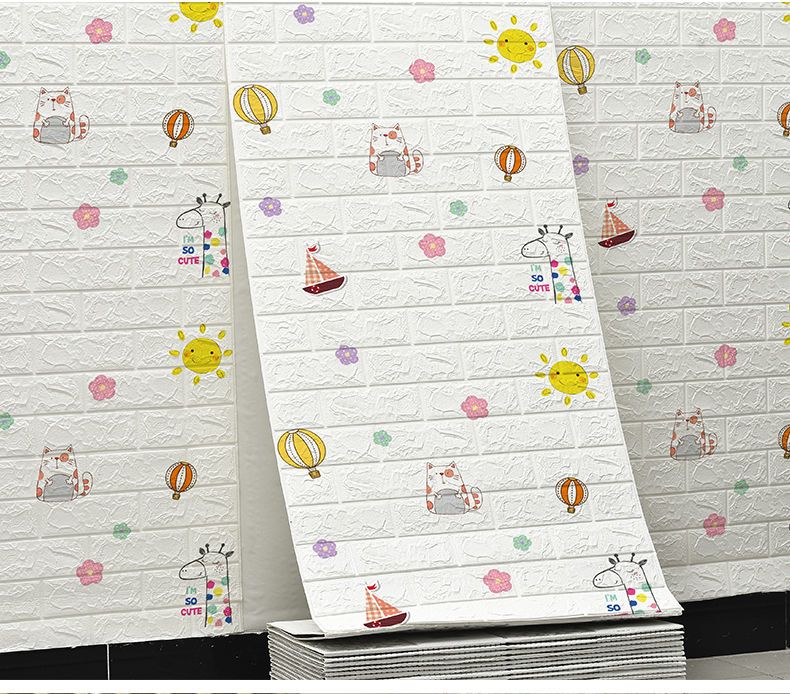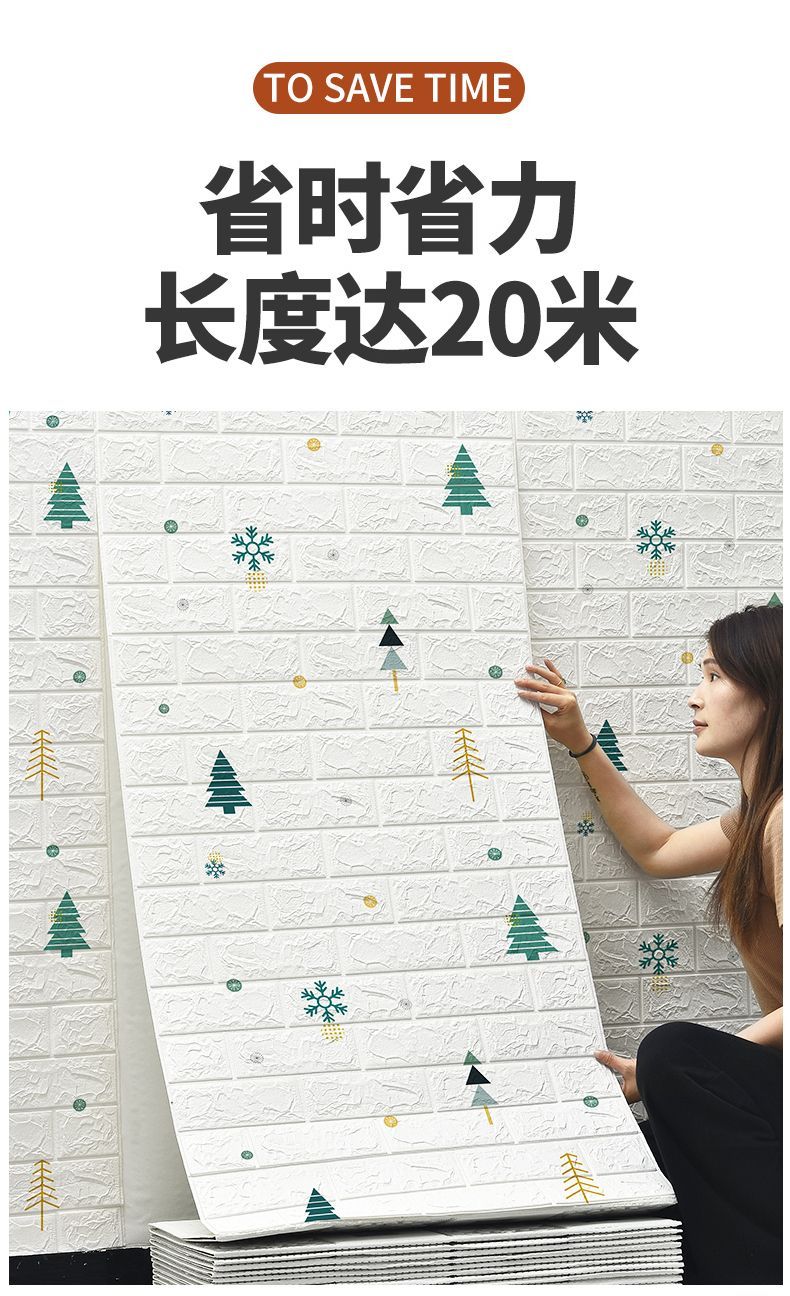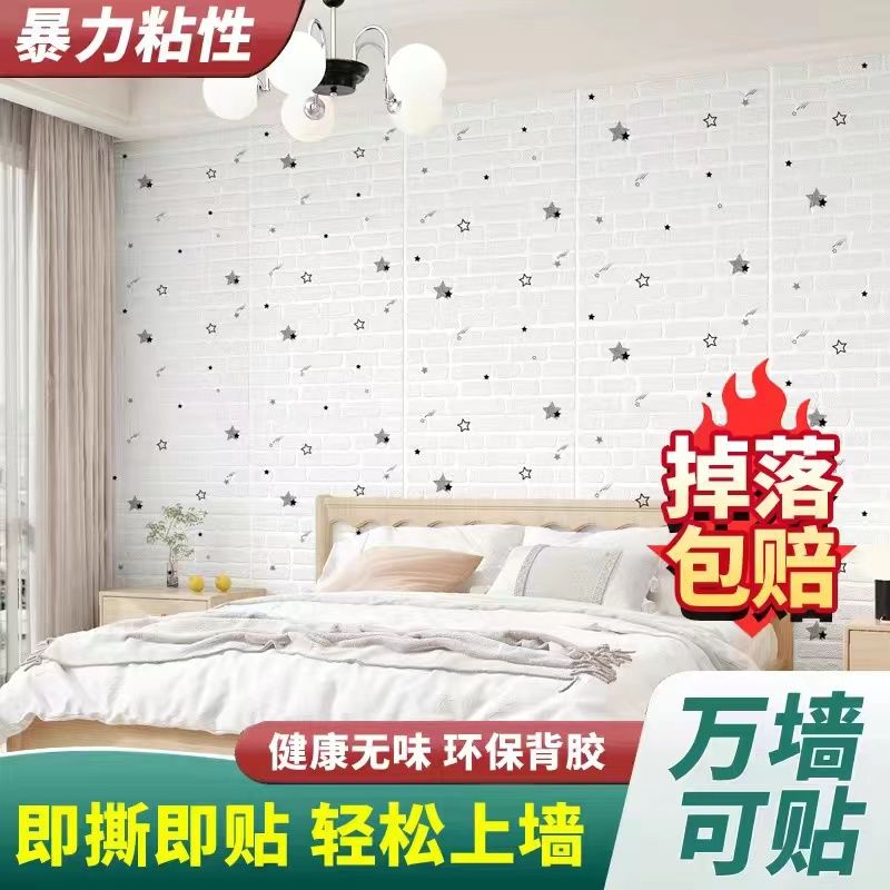 墙纸自粘卧室3d立体墙贴温馨卡通装饰儿童房防水防撞壁纸墙裙贴纸