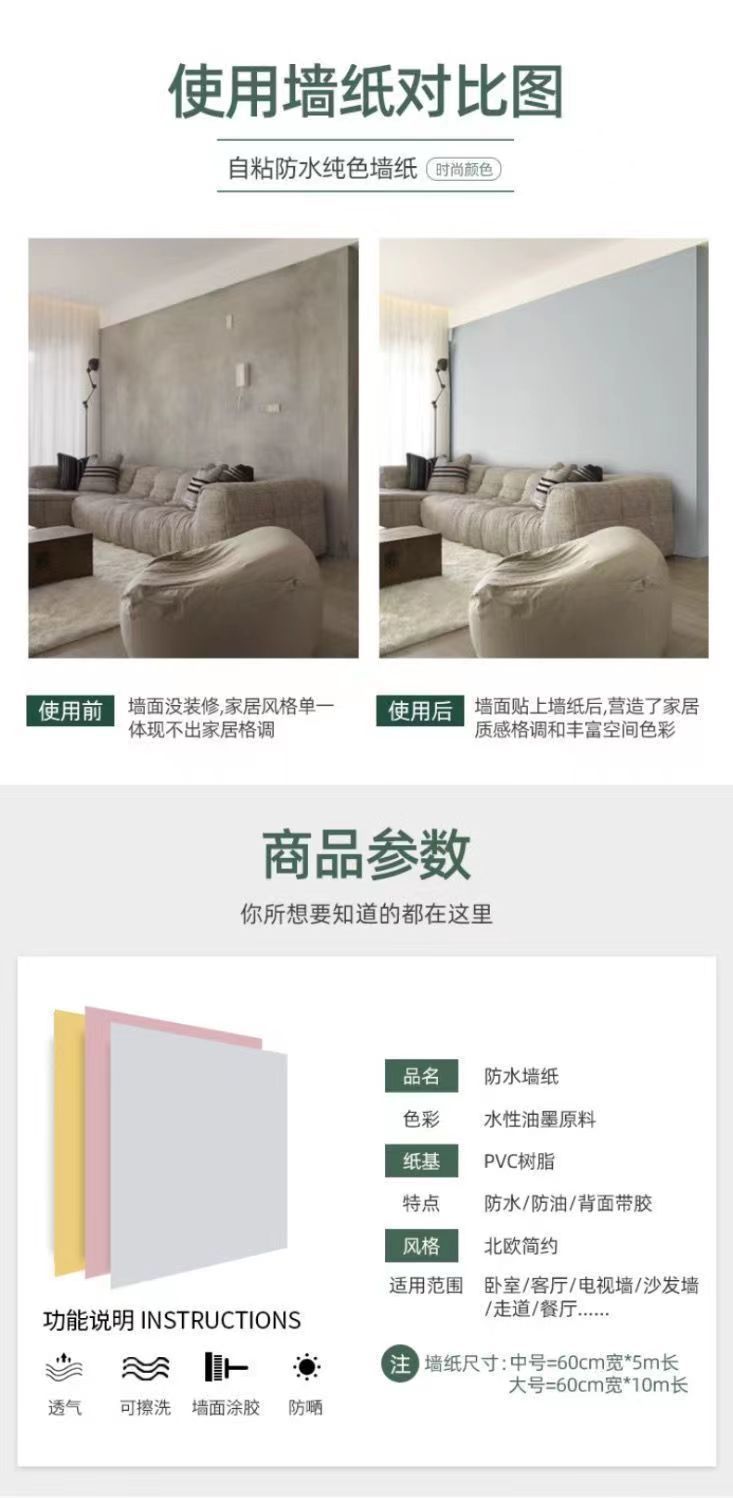 墙壁纸加厚自粘墙纸防水防潮家用墙贴纸大面积房屋客厅全新贴