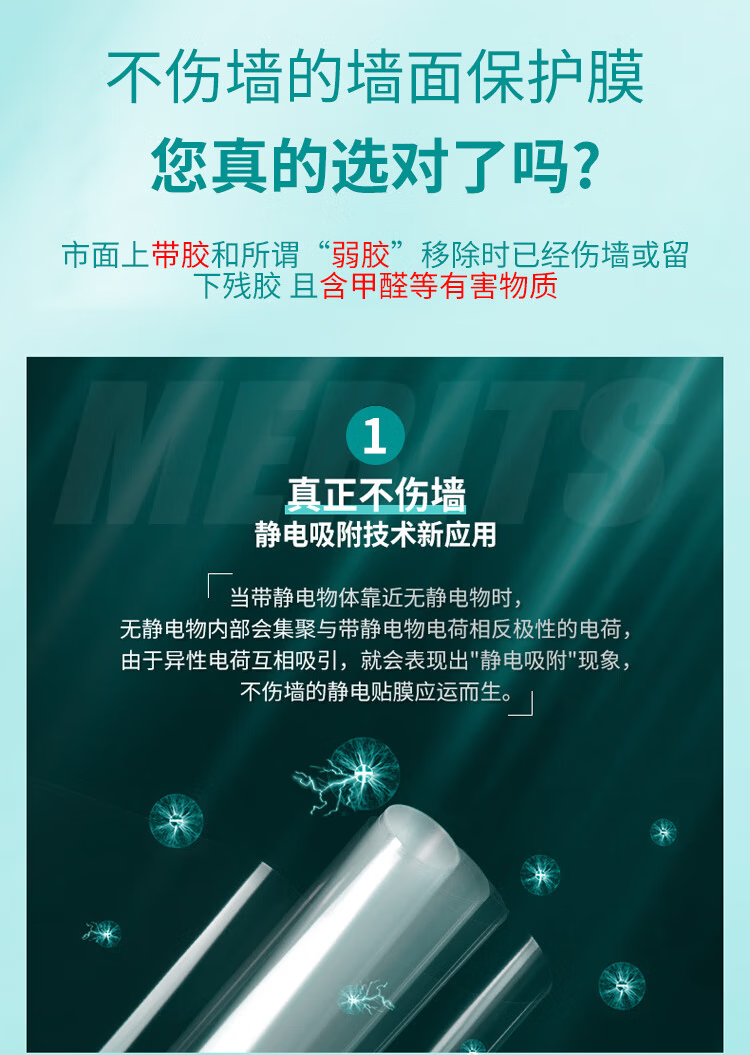 新款乳胶漆墙面静电墙贴保护膜透明无胶吸附不伤防水防脏墙防脏