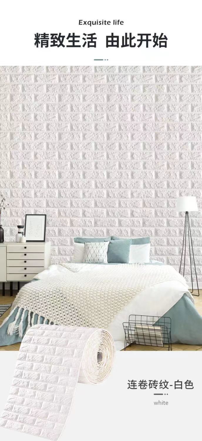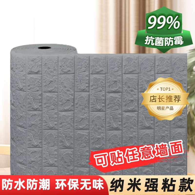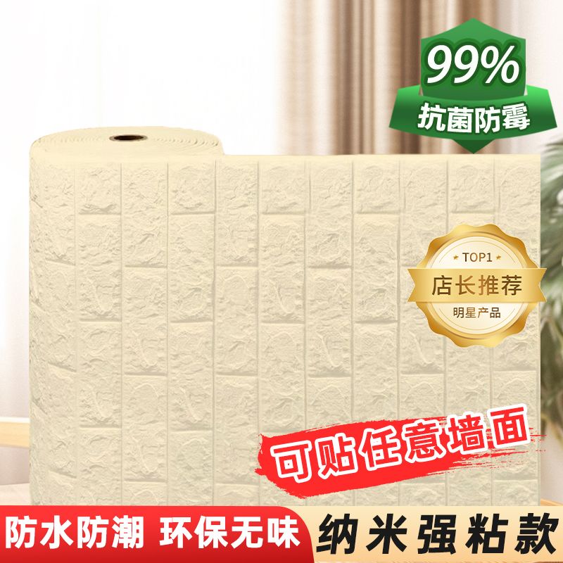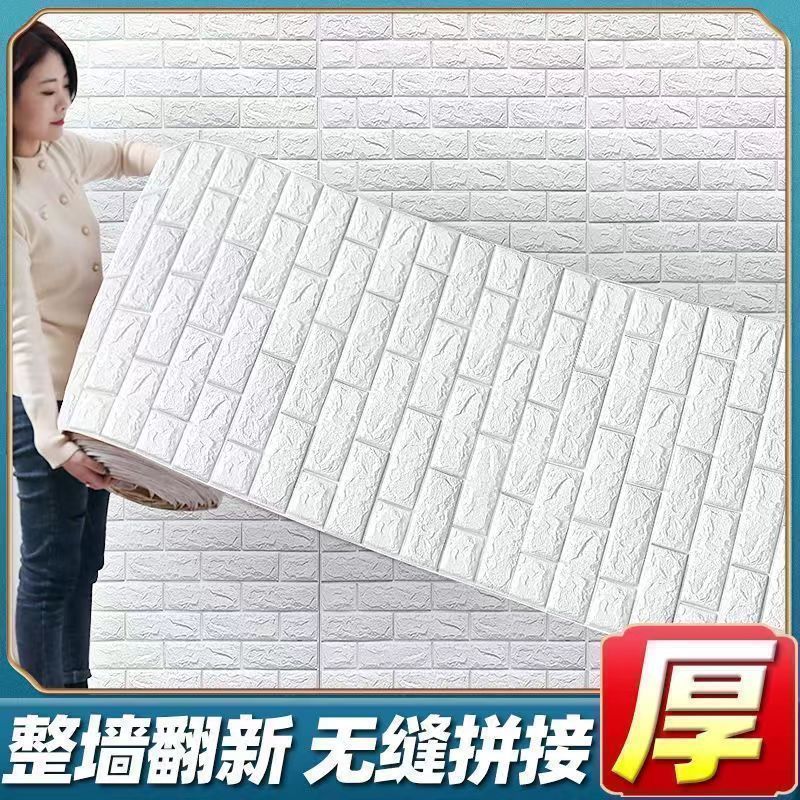 泡沫板墙纸自粘3d立体墙贴砖纹壁纸防水防潮可擦洗卧室温馨装饰贴