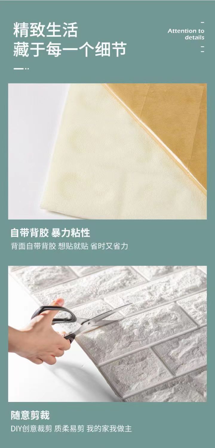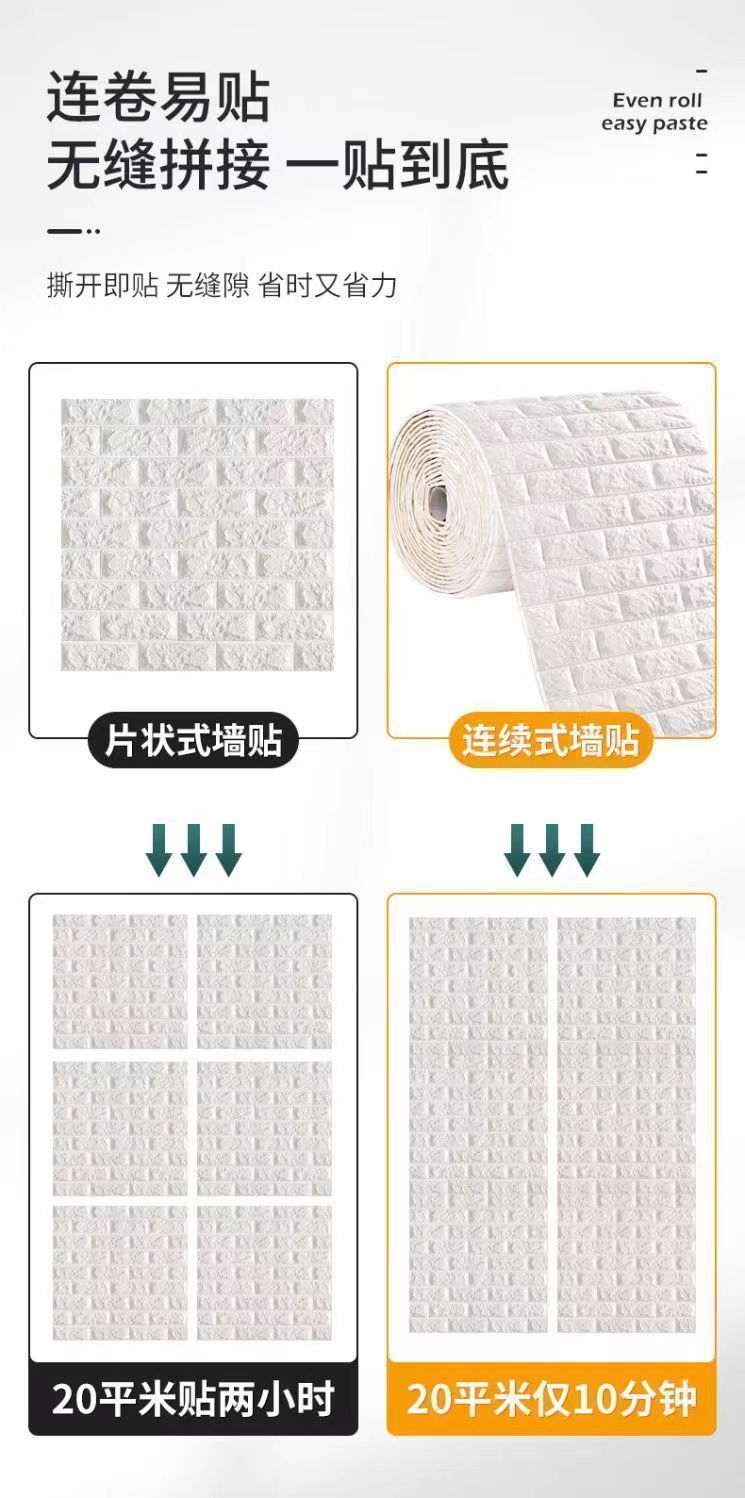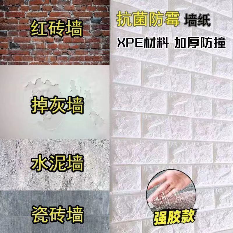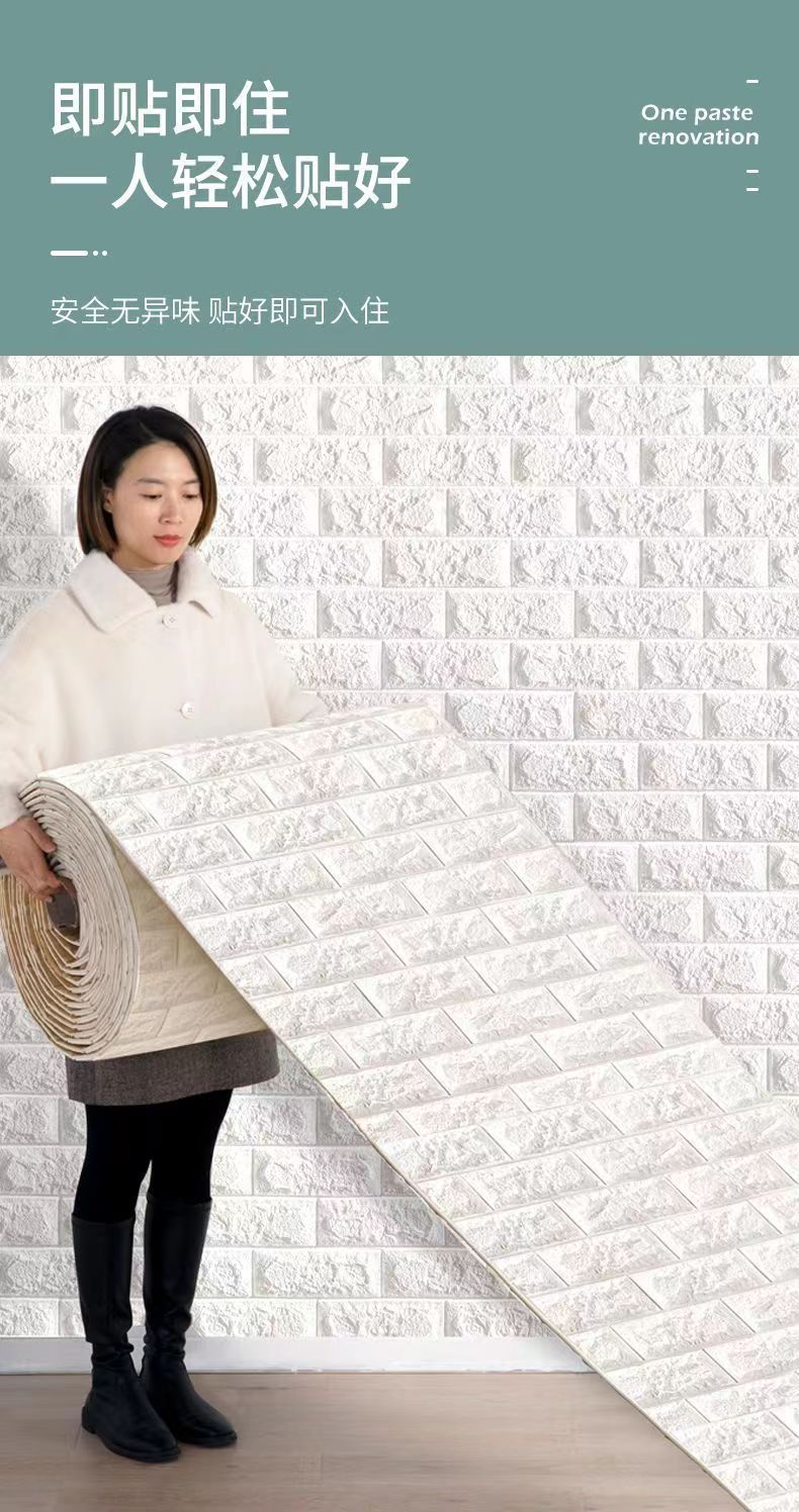 泡沫板墙纸自粘3d立体墙贴砖纹壁纸防水防潮可擦洗卧室温馨装饰贴