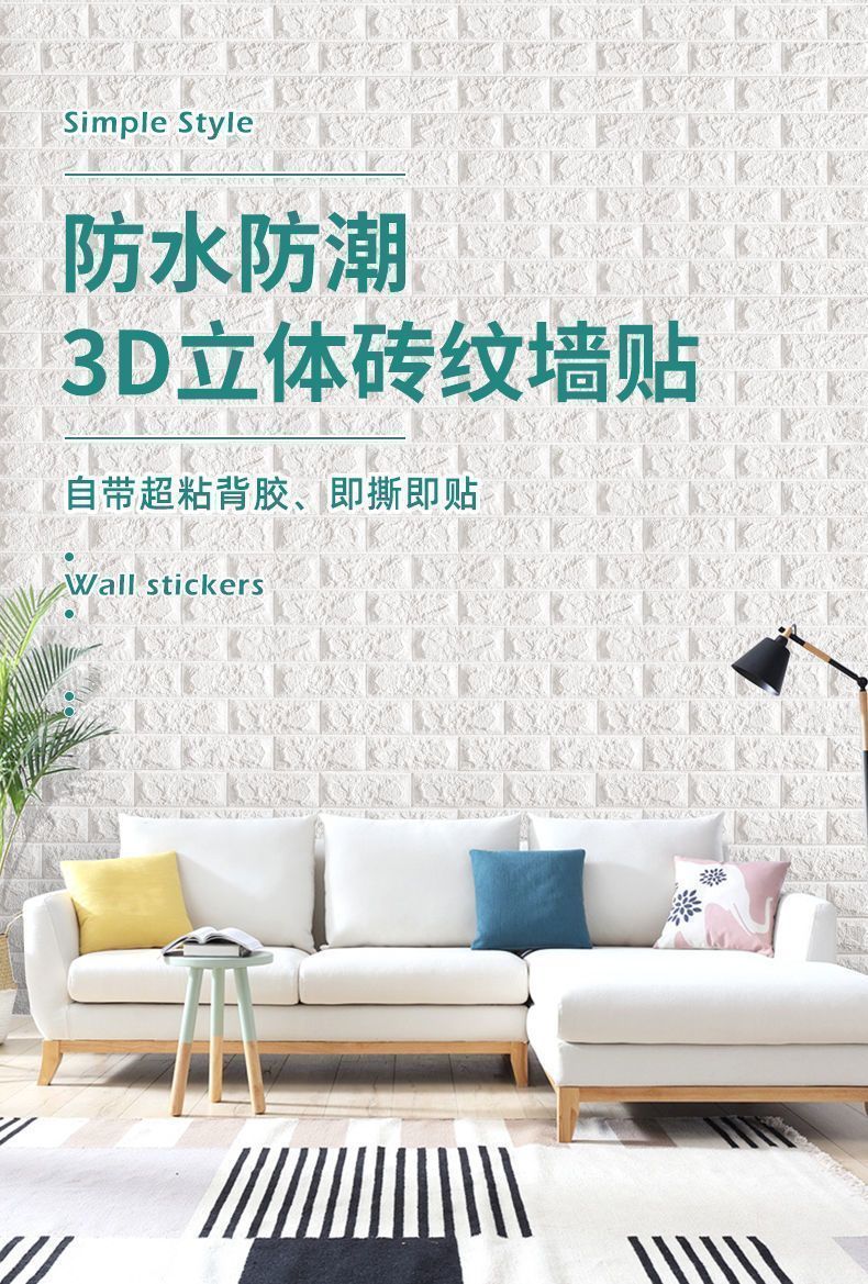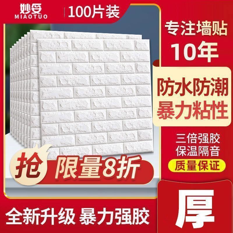 墙纸自粘3d立体墙贴装饰墙上房间卧室背景防水防潮防霉墙墙壁贴纸