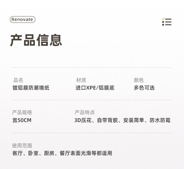| 100 m long * 50cm wide [about 50 square meters]](长100米*50厘米宽【约可贴50平方】) | USD $50.21 | 999999 piece available |