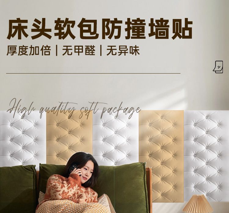墙贴家用加厚床头软包自粘卧室榻榻米3d立体墙贴防水防撞