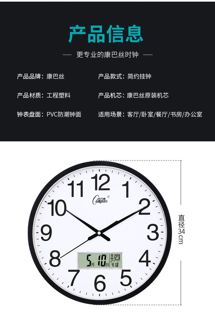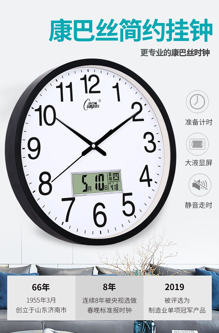 康巴丝挂钟客厅钟表创意时尚个性挂表家用静音时钟简约现代石英钟