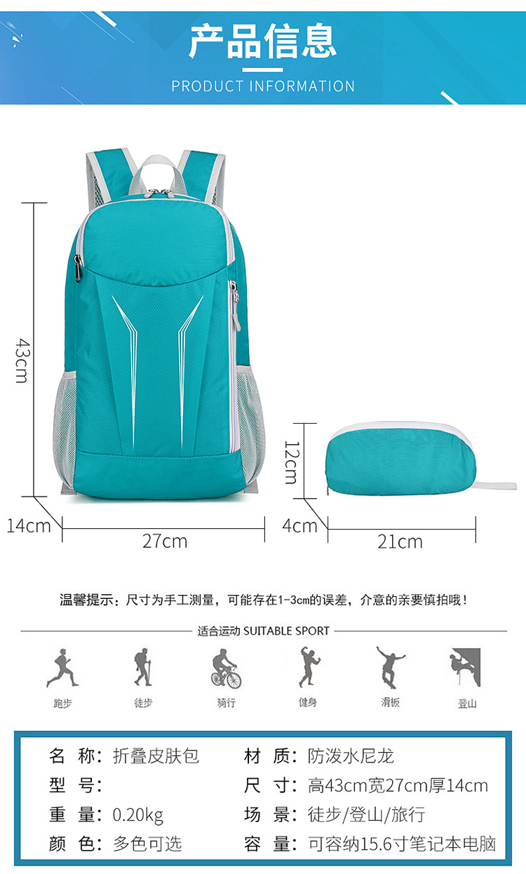 新款户外双肩包 跨境风潮折叠徒步旅行包 防泼水轻便骑行包防水包