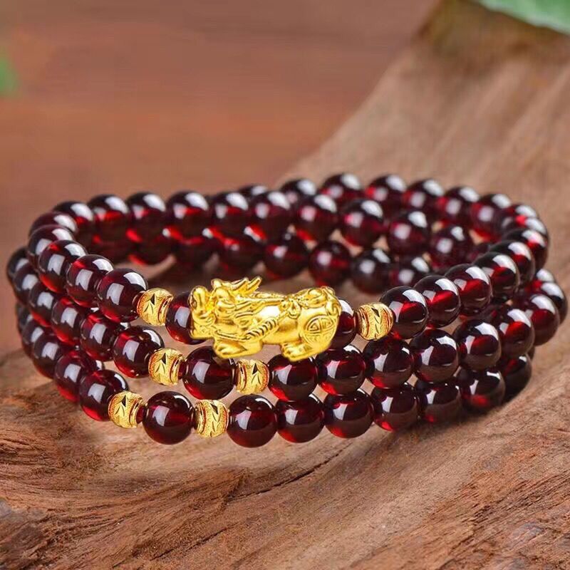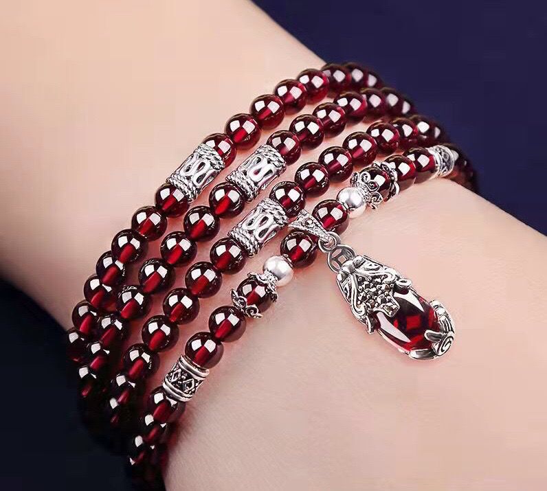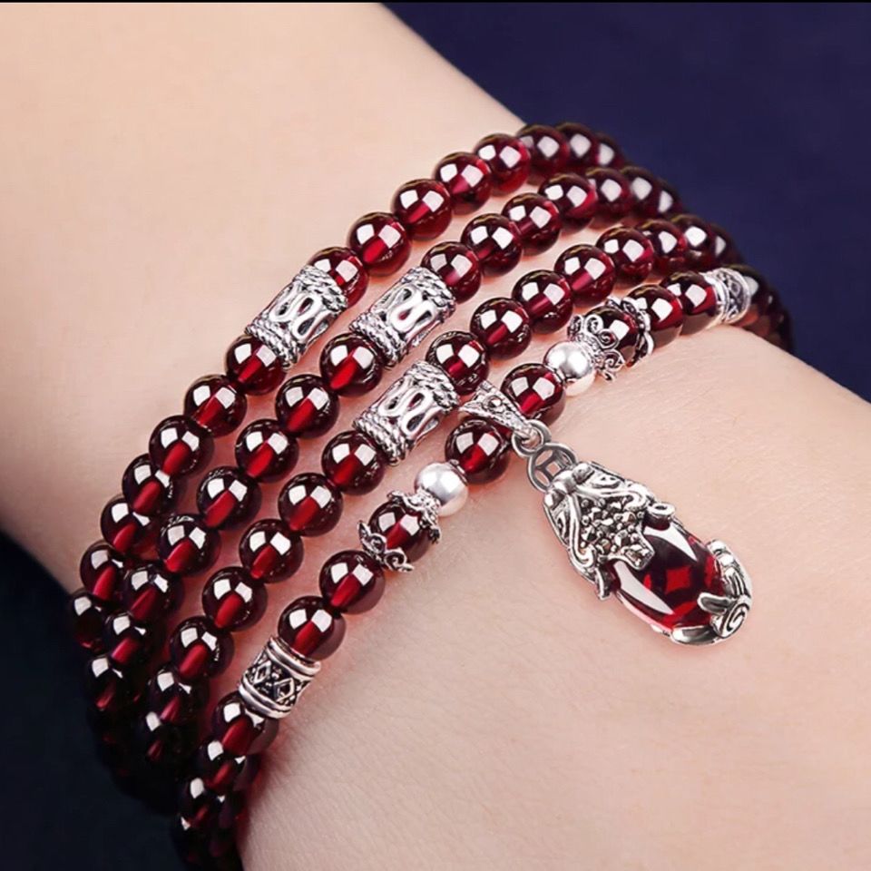 天然收藏级红石榴石正品单圈多圈手链女人石情侣闺蜜礼物假一赔十